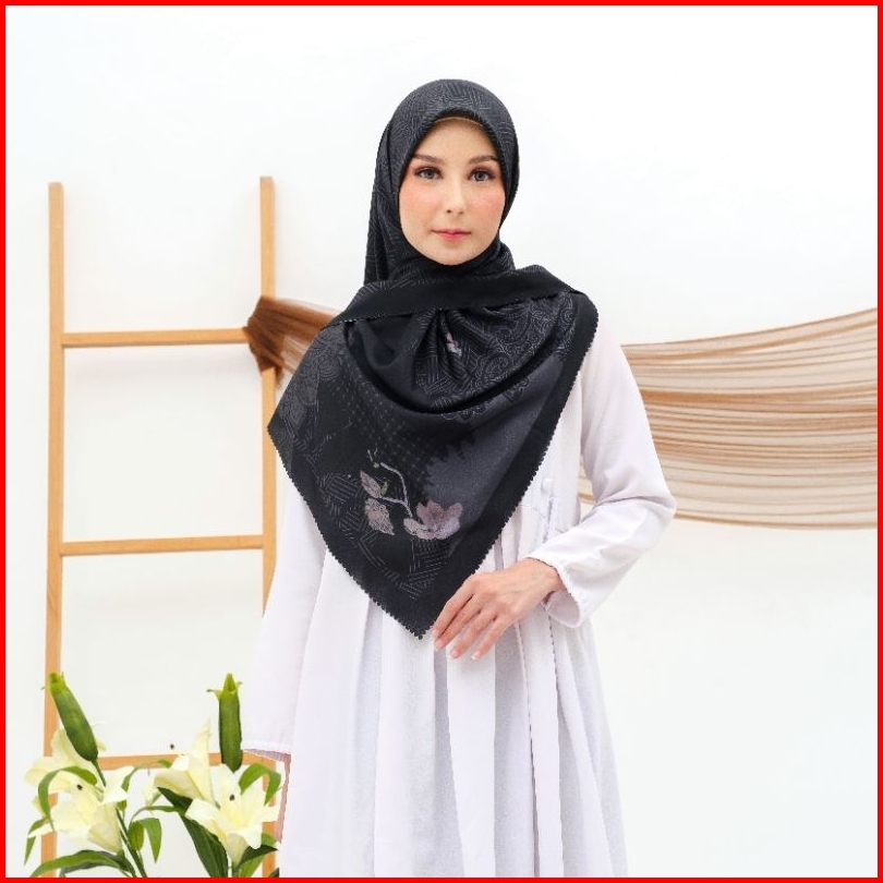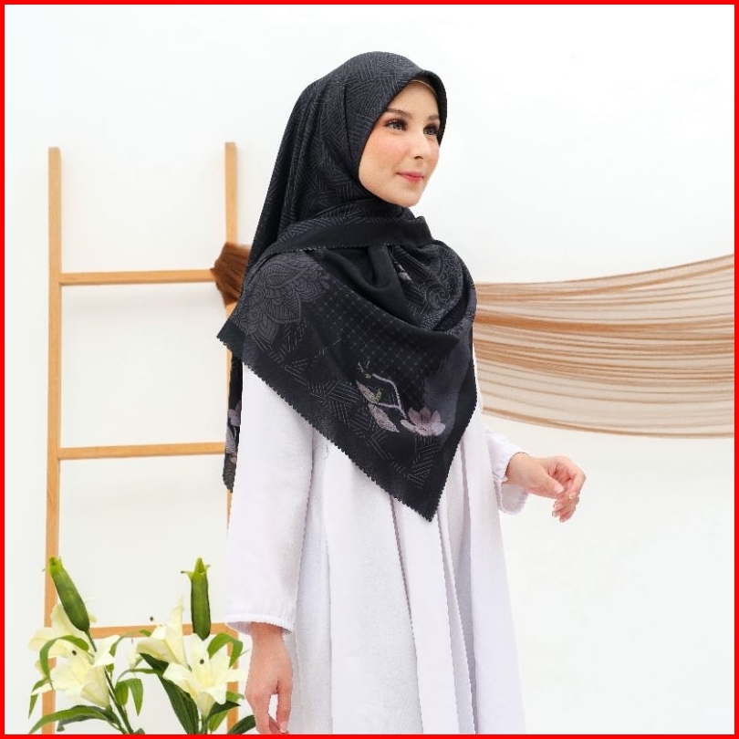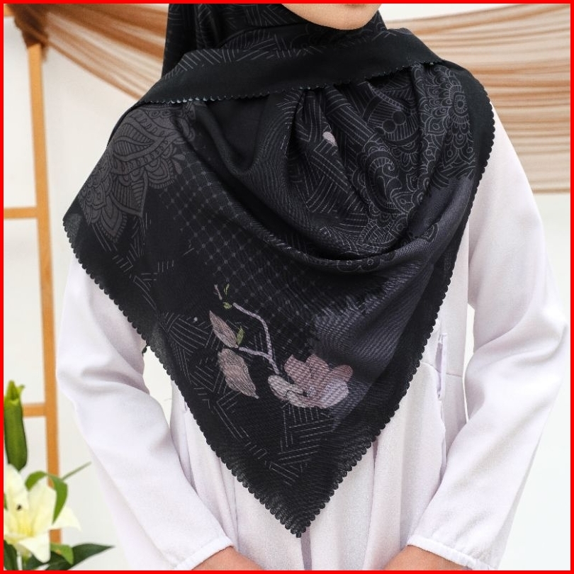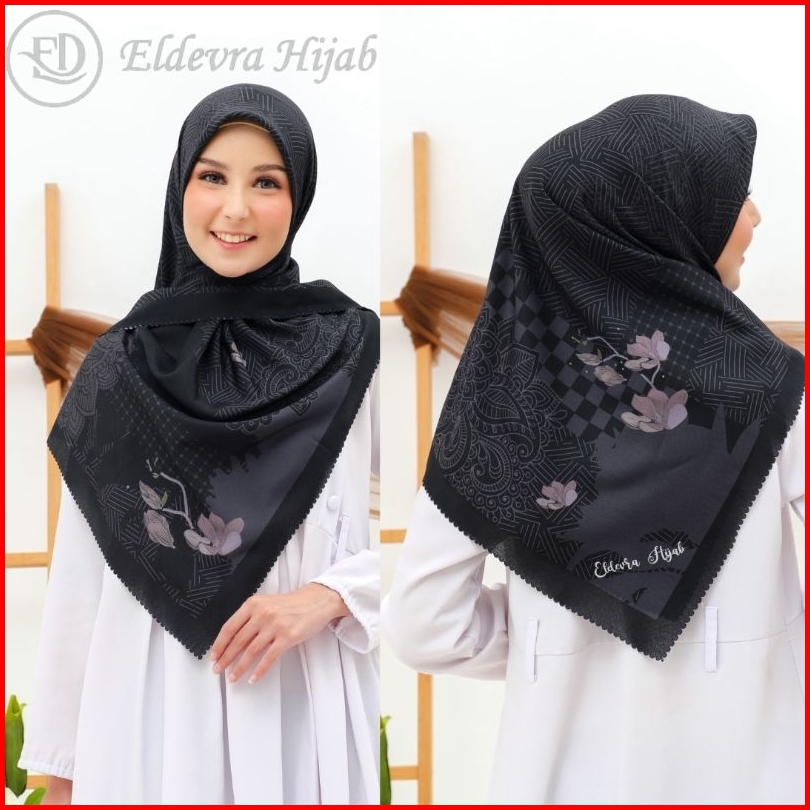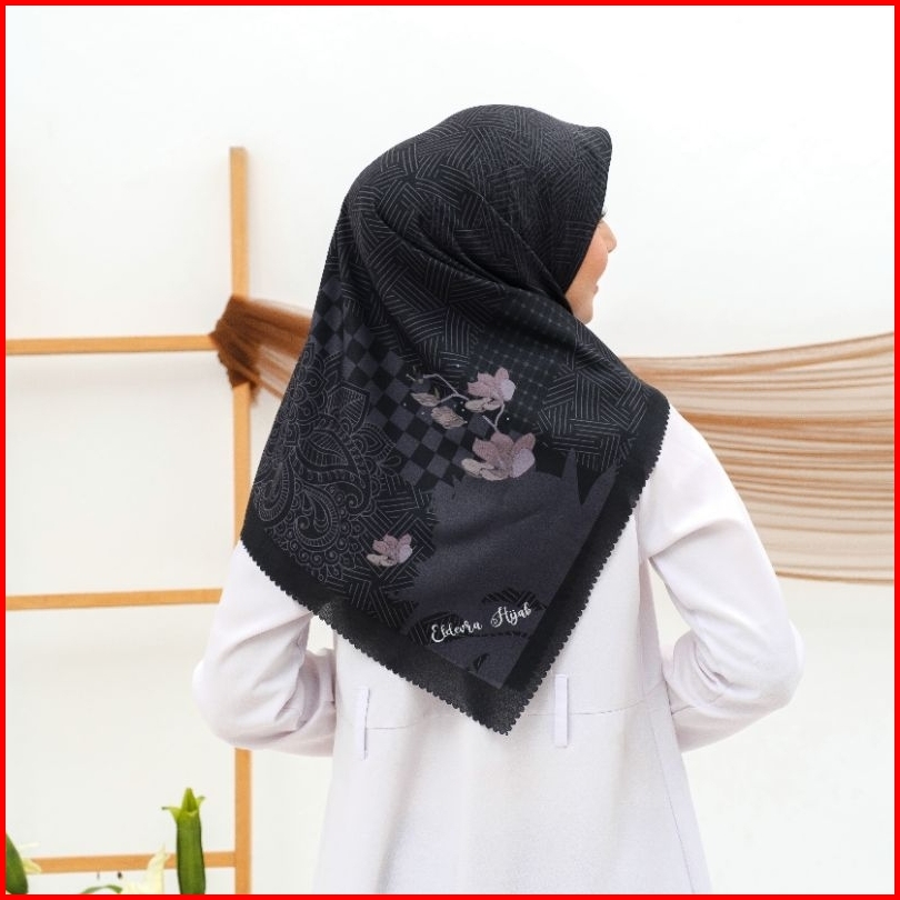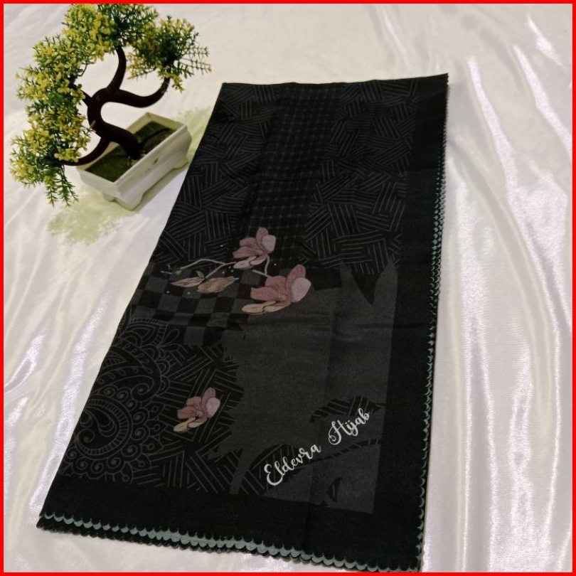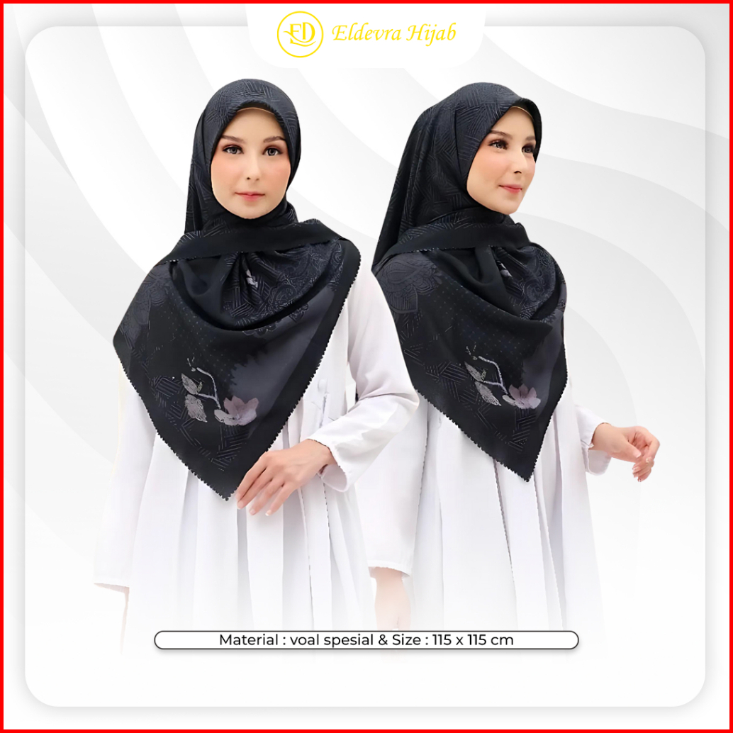 Eldevra Hijab - Voal Printing Segiempat Motif Naima Hitam 115x115 Cm
