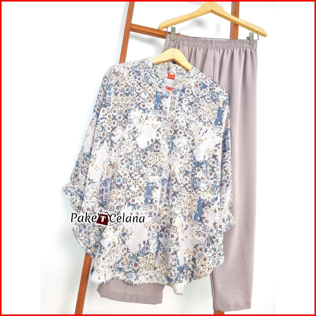 Setelan Wanita Kekinian 2024 Baju Oneset Jumbo Crinkle Airflow Motif Terbaru Bahan Adem Ukuran Jumbo