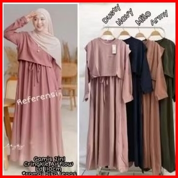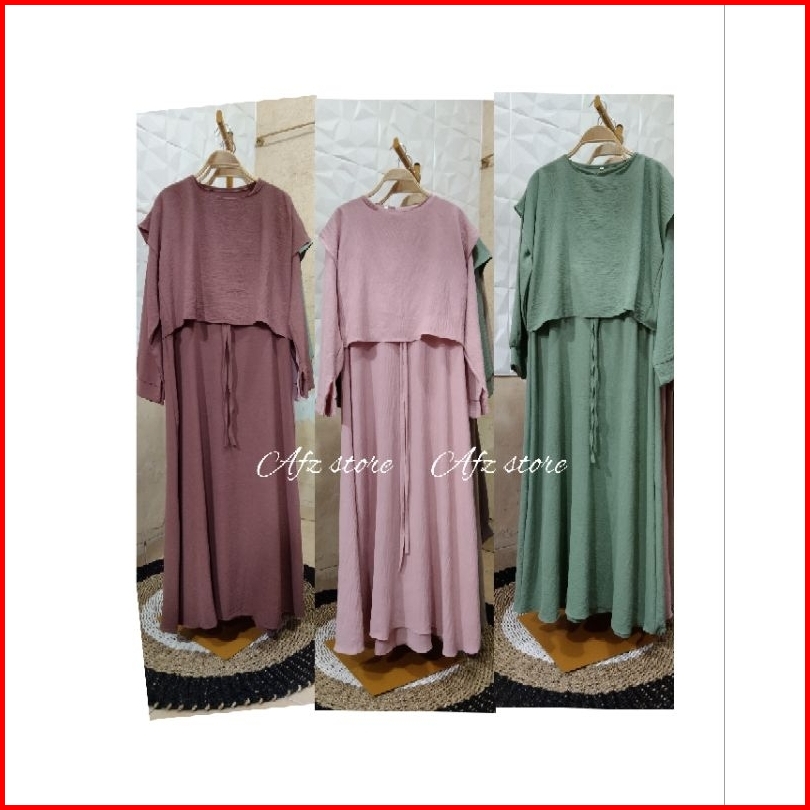 Midi Dress Crinkel Air Flow Rompi Dress Remaja Gamis Busui