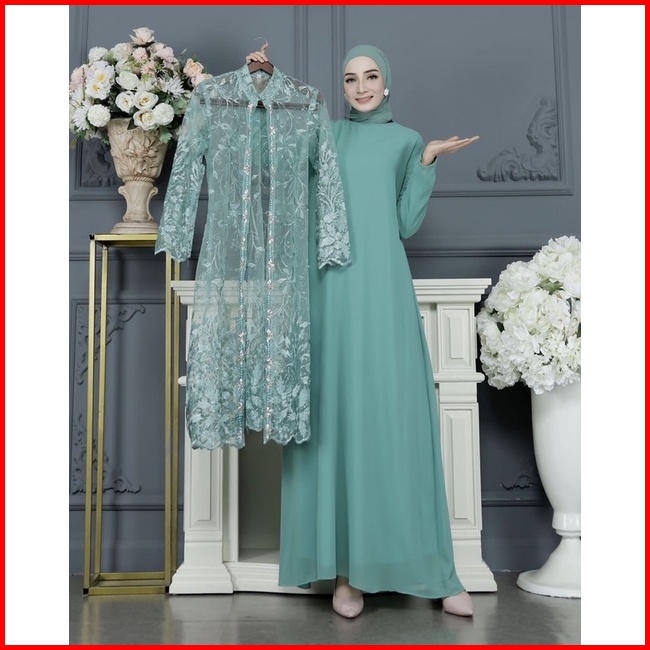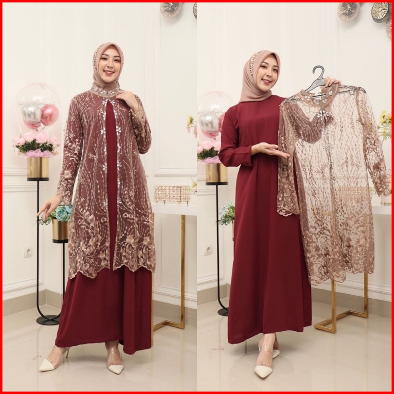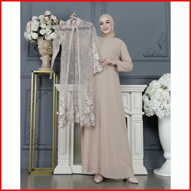 Gamis Rompi Outher Terpisah Gamis Pesta Modern Gamis Tulle Non Gliter Gamis Kondangan Mewah Dres Kekinian Gamis Premium
