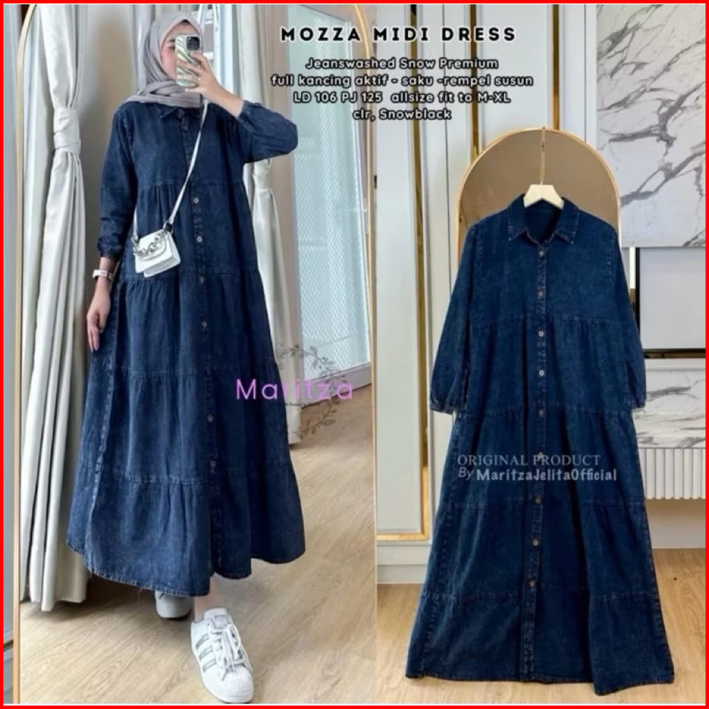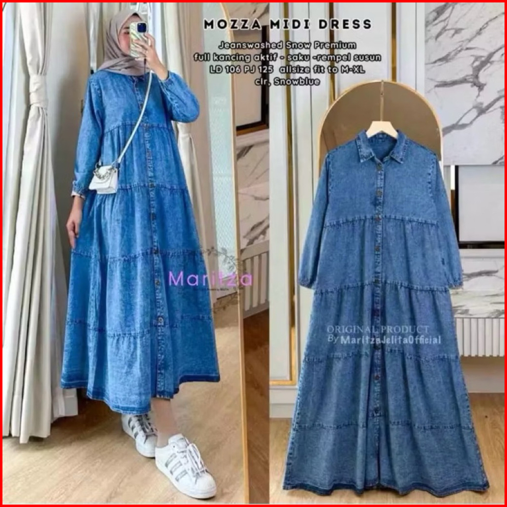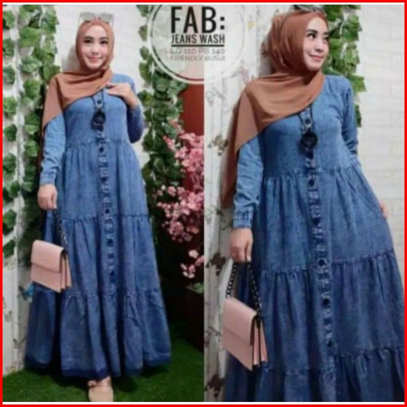 Amara Maxy Gamis Lepis Jeans Wanita Terbaru Jumbo Ada 3 Size Ld 100 110 120 Gamis Jeans Susun
