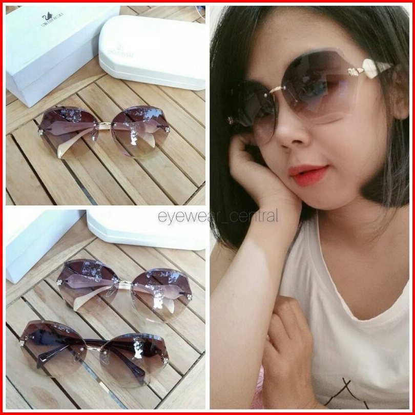 Kacamata Sunglases Swarovski 28066 Fashion Wanita Super Premium - Bonus Cairan Pembersih Kacamata Lap Kacamata