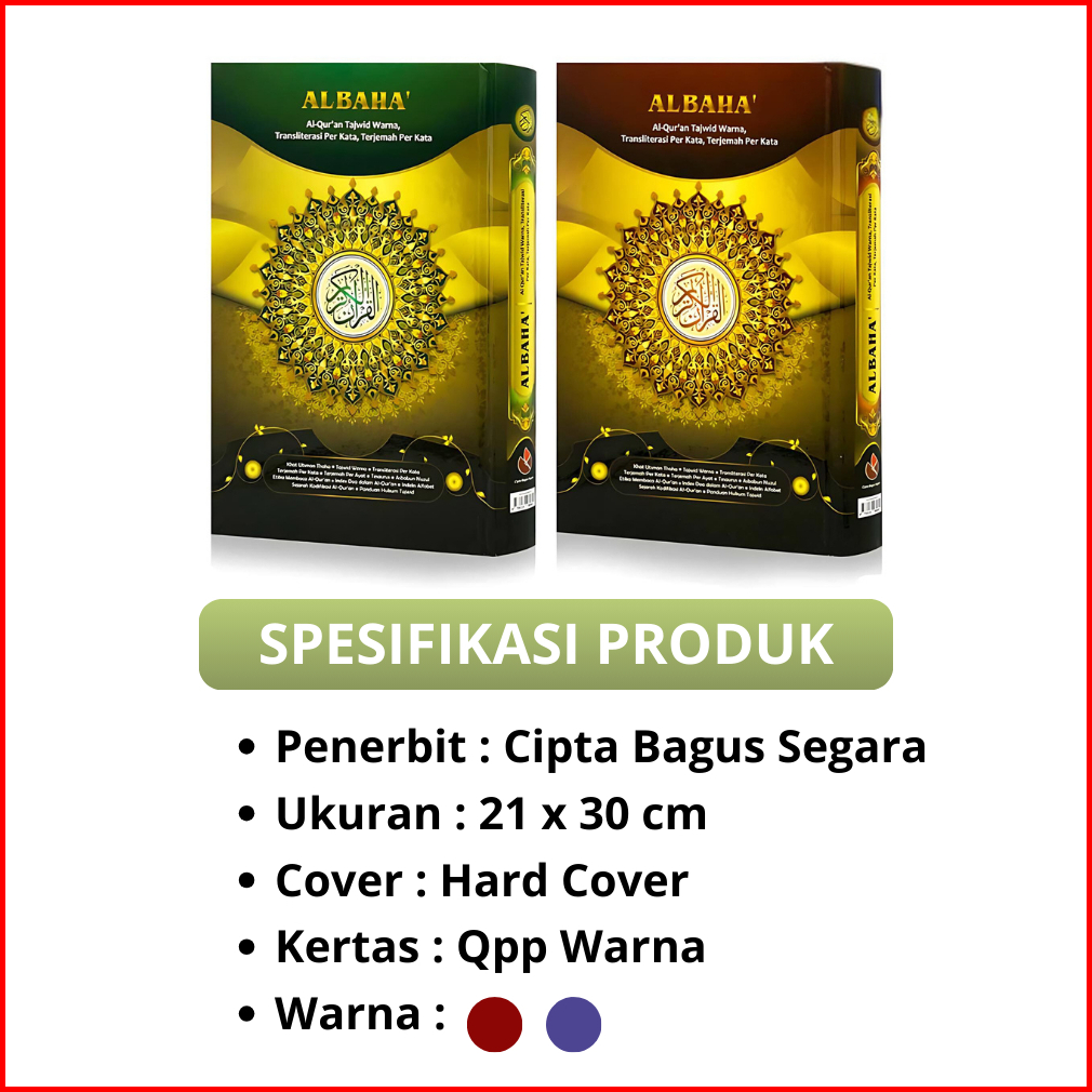 Al Quran Al Baha A4 Hc Terjemah Per Kata Tajwid Warna Transliterasi Alquran Terjemah Tajwid Besar