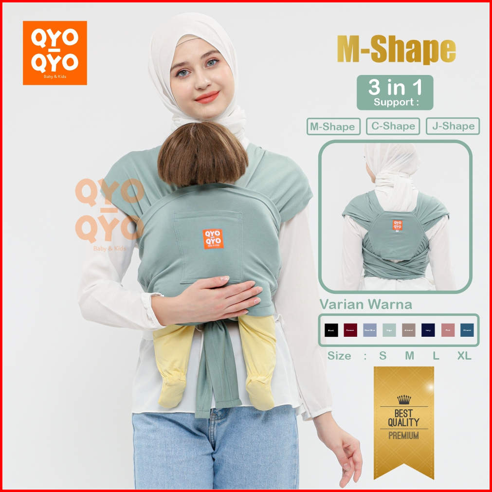 Gendongan Bayi Depan M Shape Baby Wrap 3in1 Geos Premium With Sash Belt Qyo-qyo
