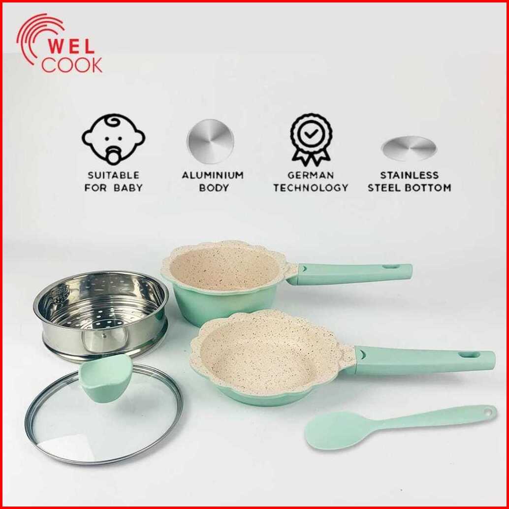 Welcook Panci Set Mpasi Bayi 5pcs Free Sutil Bayi - Green