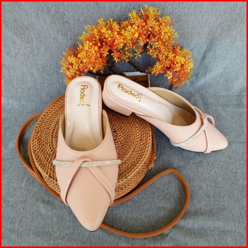 Sandal Wanita Kekinian Fladeo Mules Heels 3cm
