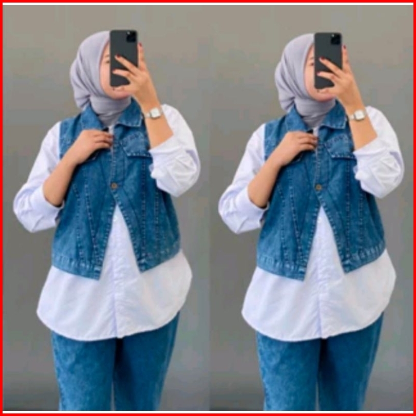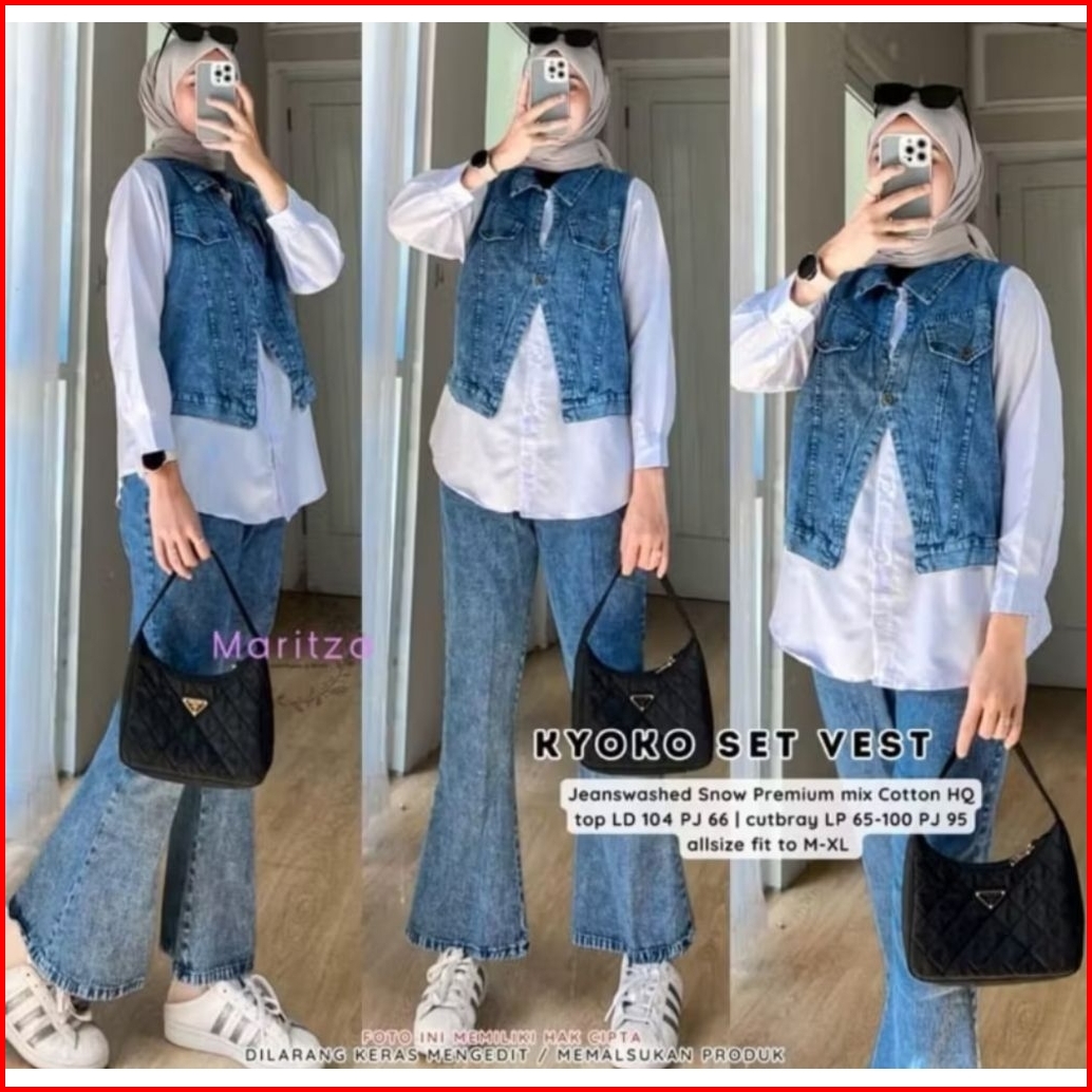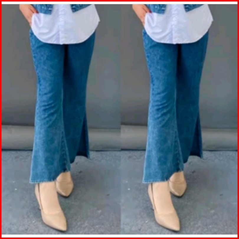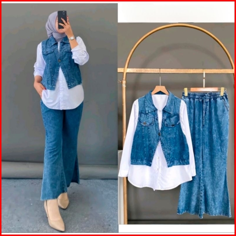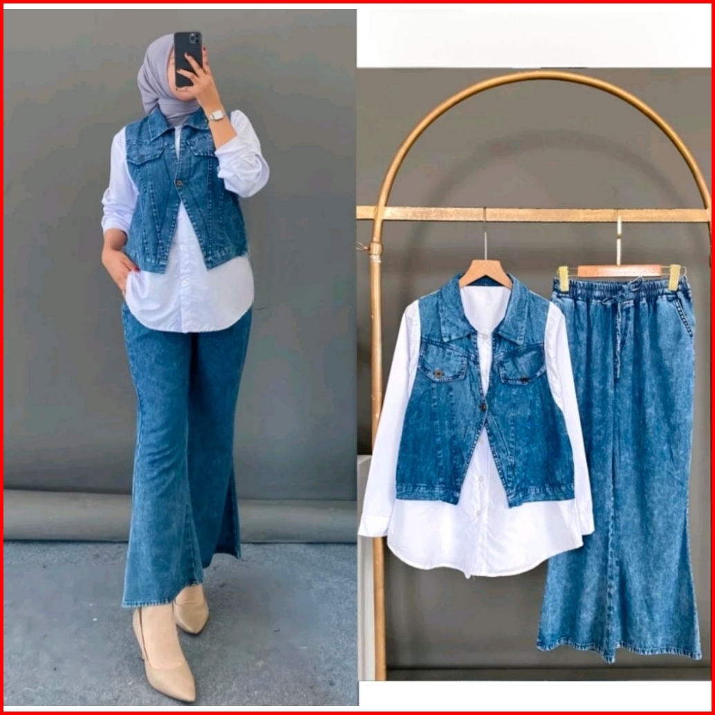 Alexa Soraya Sasya Setelan Celana Cutbray Wanita Jeans Wash Kombinasi Katun Best Seller