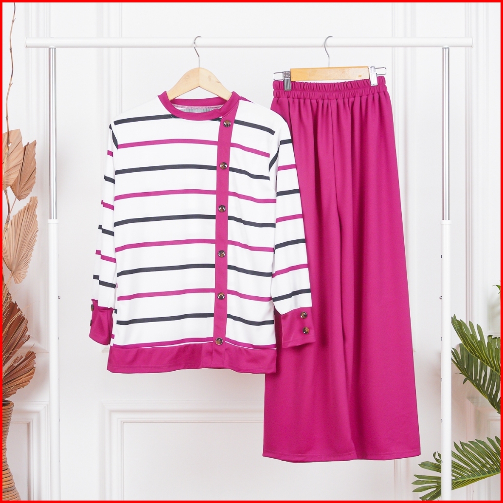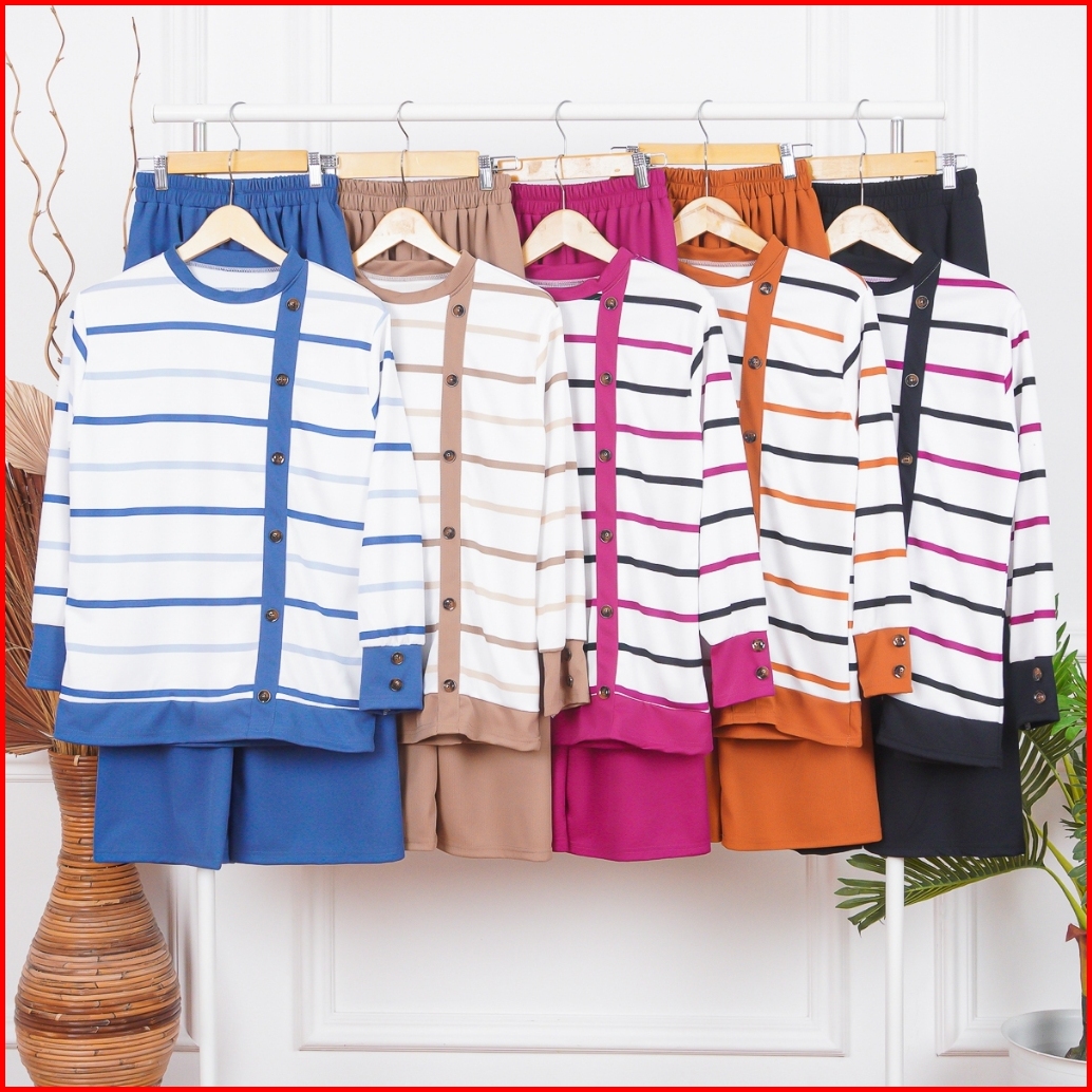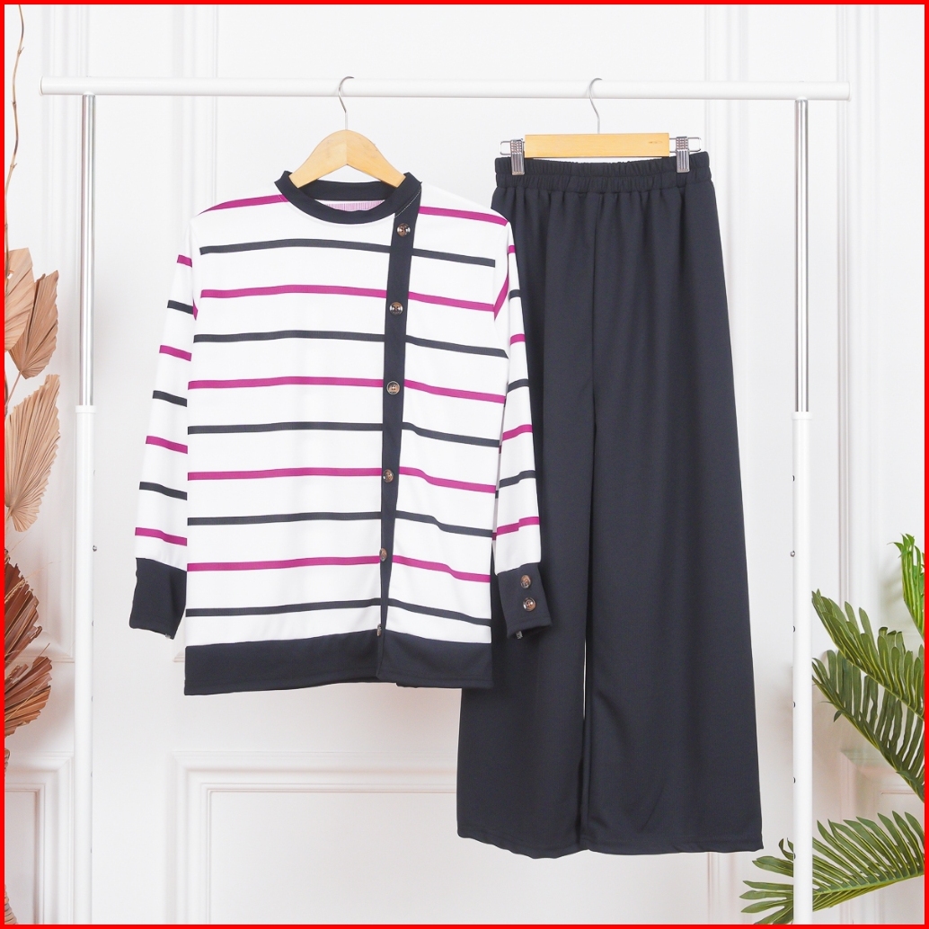 Najwa - Setelan Wanita Stripe Kancing Boston Rib Setelan Lengan Panjang