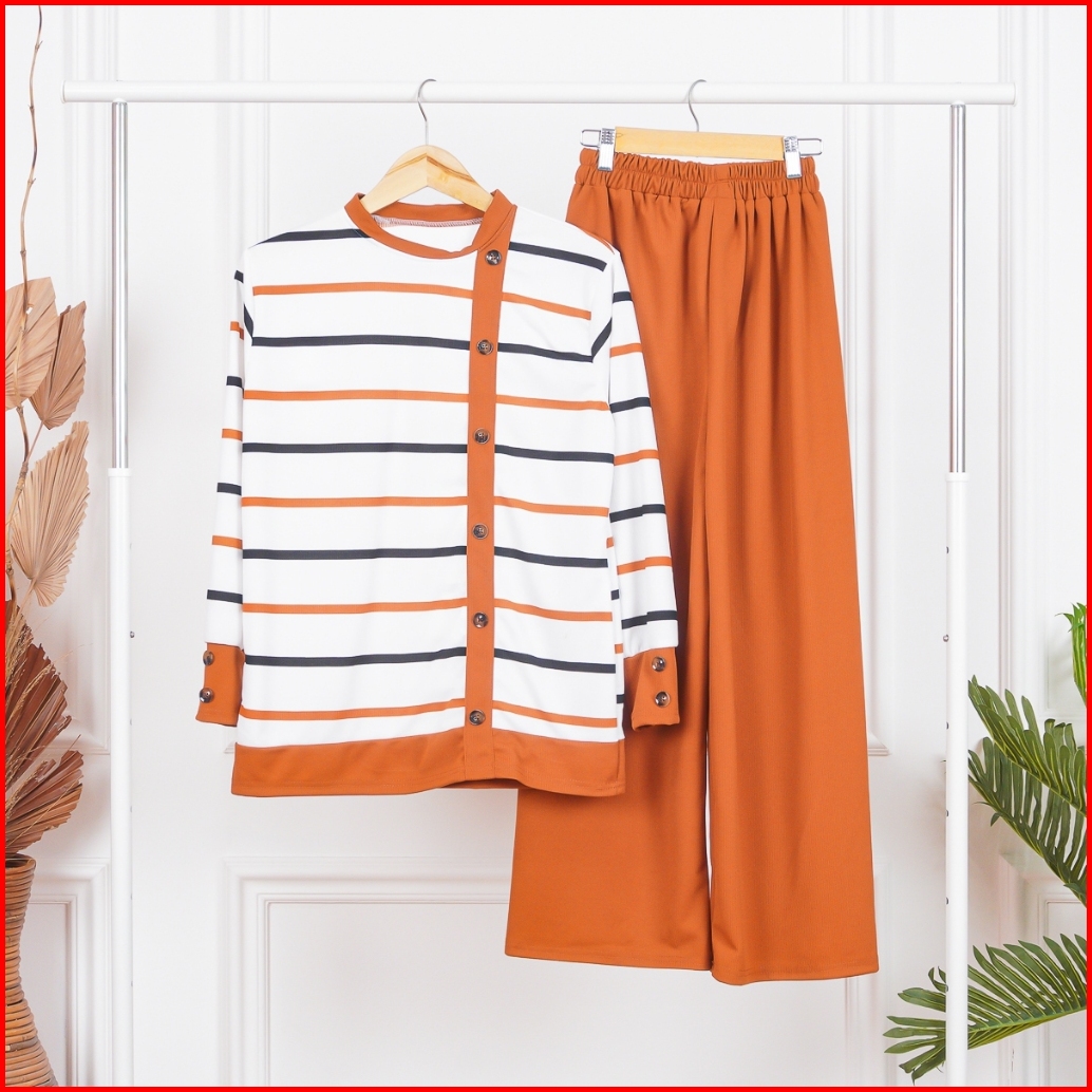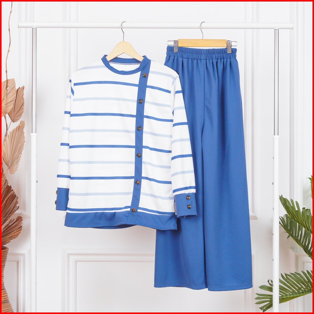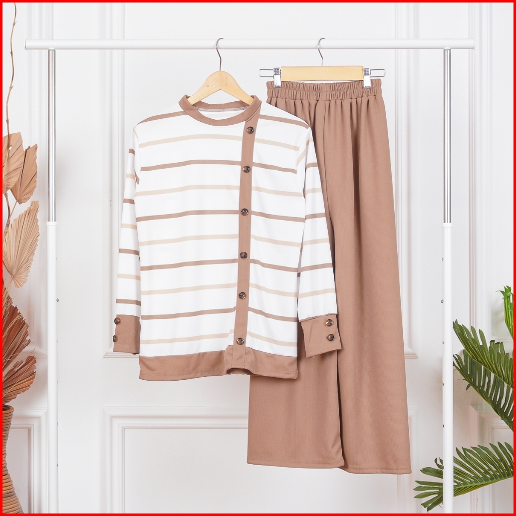 Najwa - Setelan Wanita Stripe Kancing Boston Rib Setelan Lengan Panjang