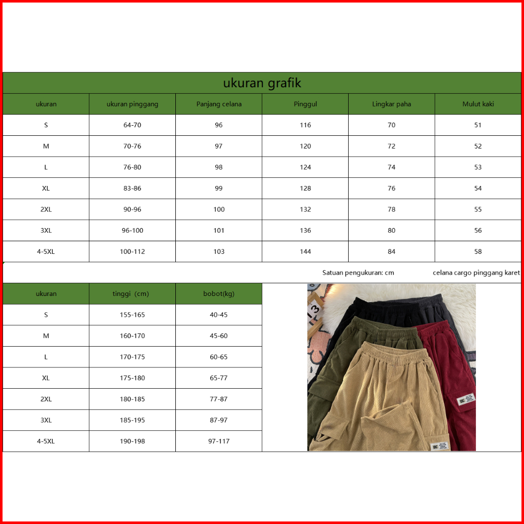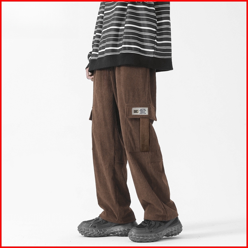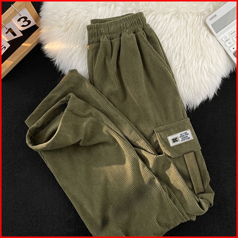 Celana Cargo Corduroy Loose Stretch Cargo Pants Korean Style Celana Hitam Oversize Jumbo Original Cowok Kekinian Celana
