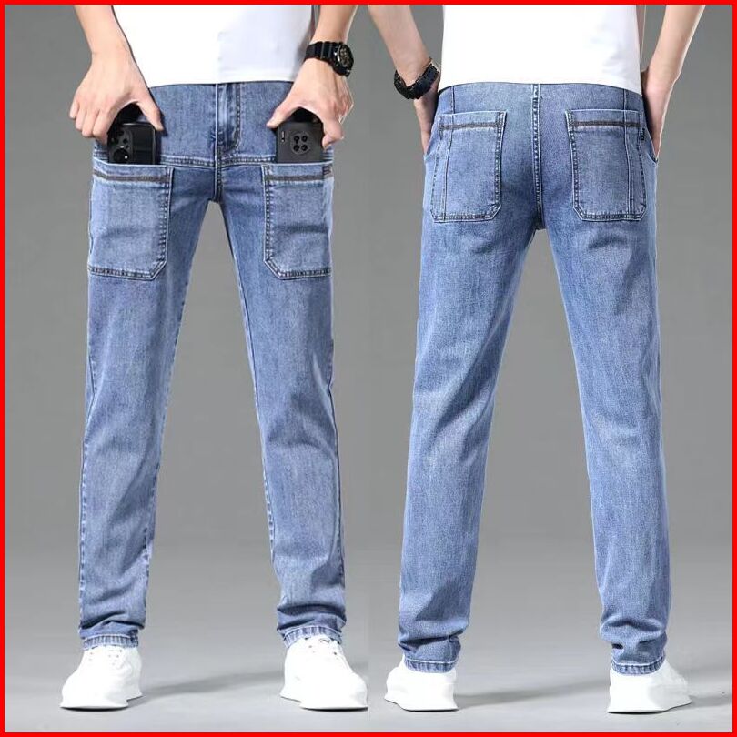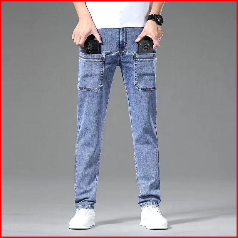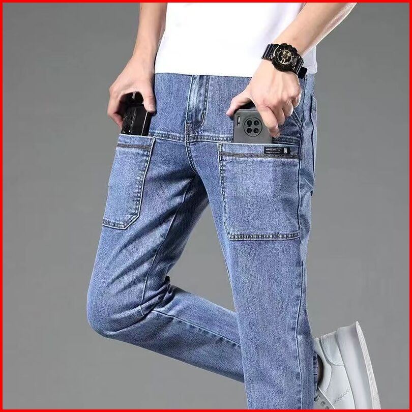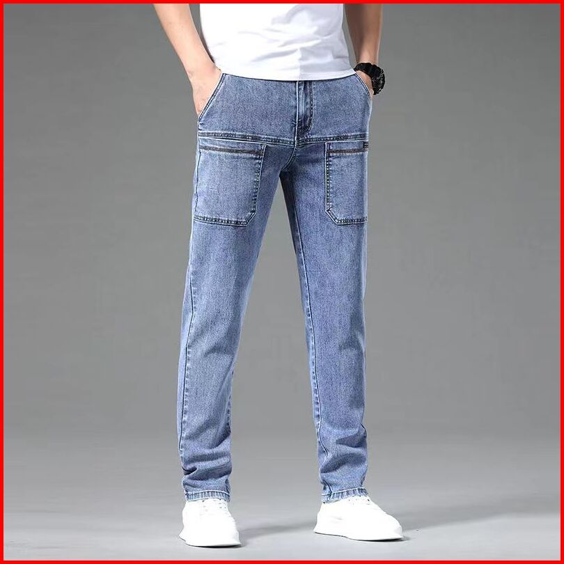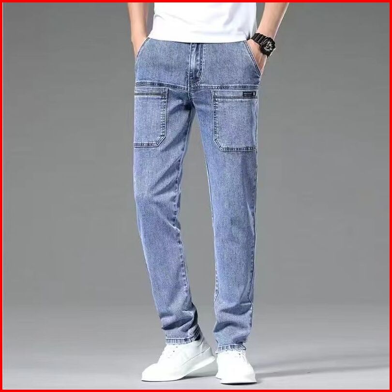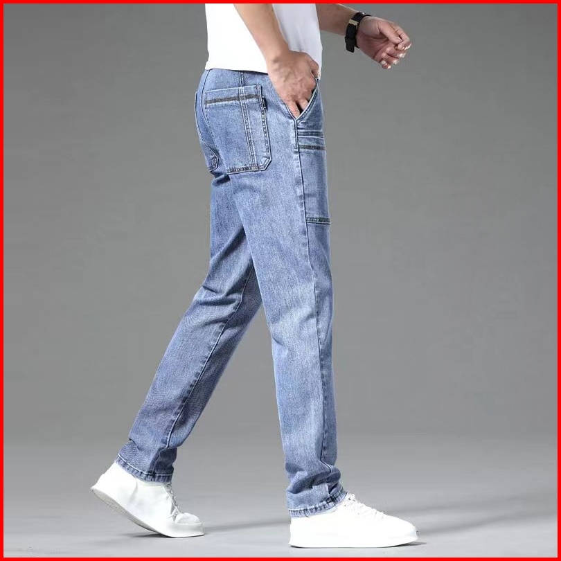 Celana Cargo Panjang Pria Biru Muda Jeans Cowok Celana Denim Dewasa Laki Laki Kargo Casual Korean Style