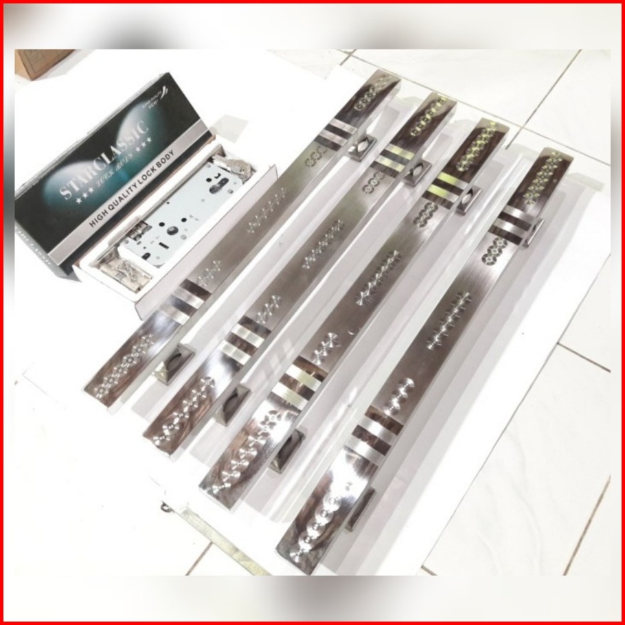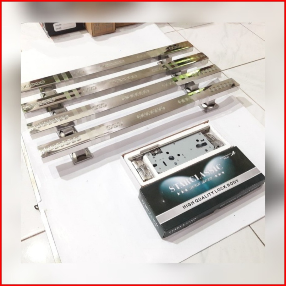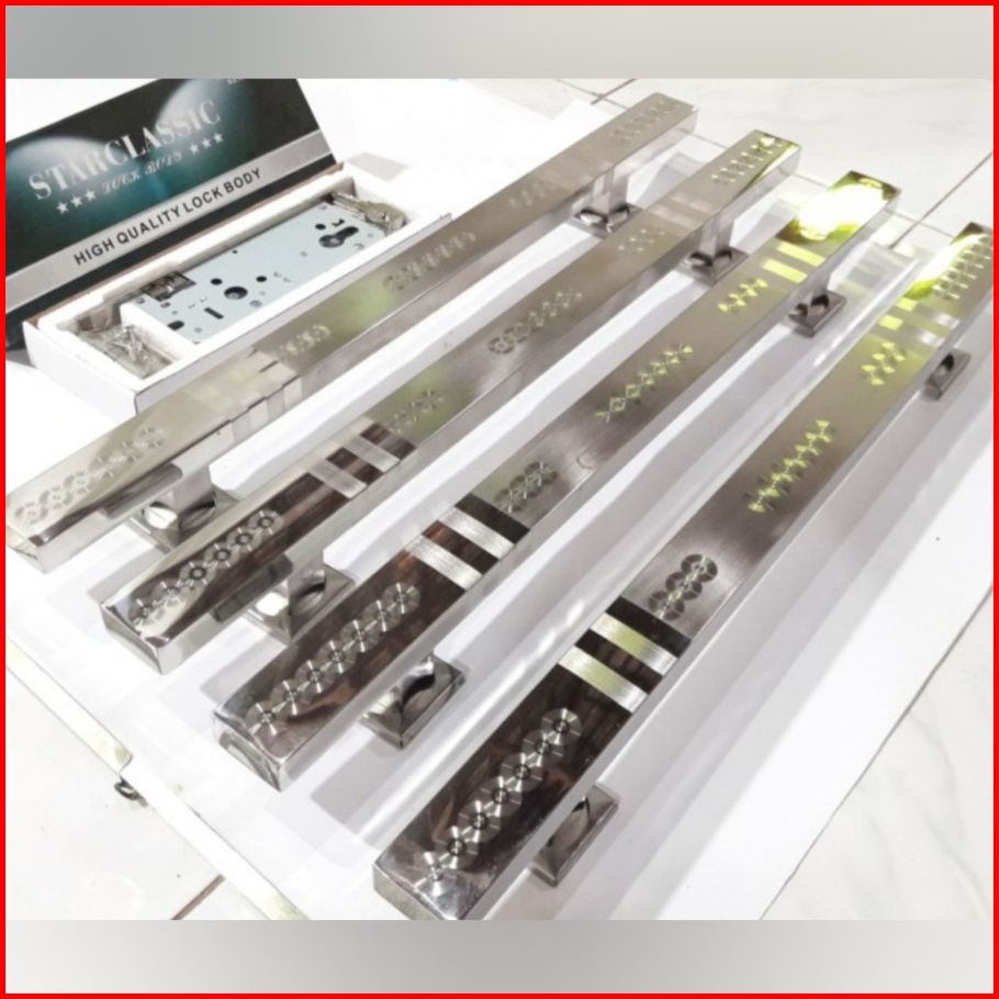 Handle Pintu Sepaket Kunci Stainless 33cm 45cm 60cm Gagang Pintu Rumah Kuputarung Tarikan Pintu