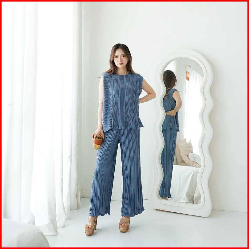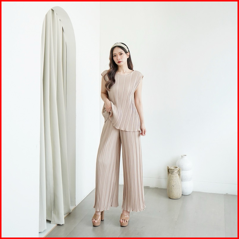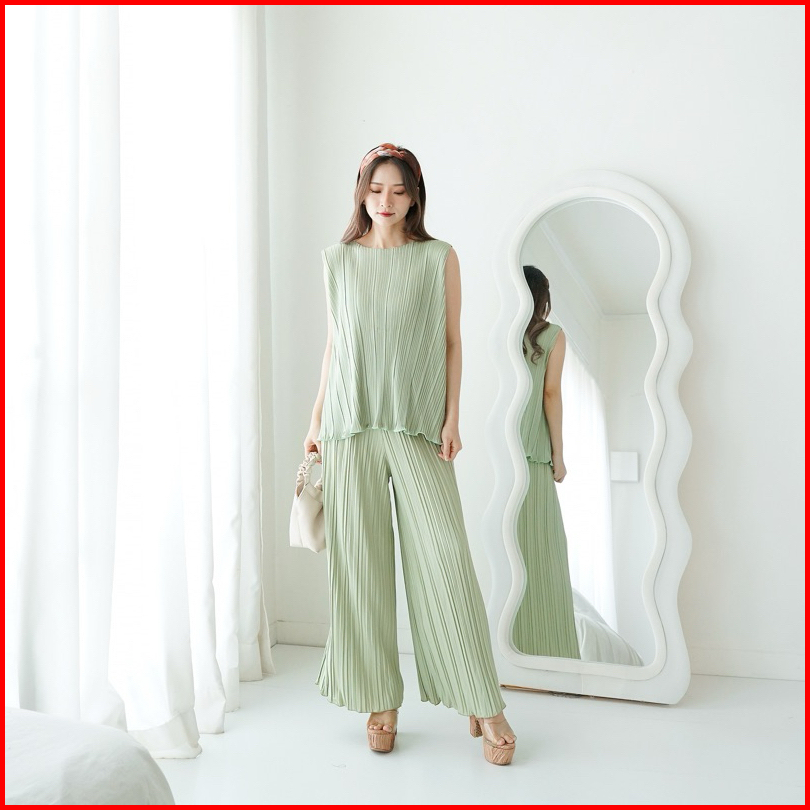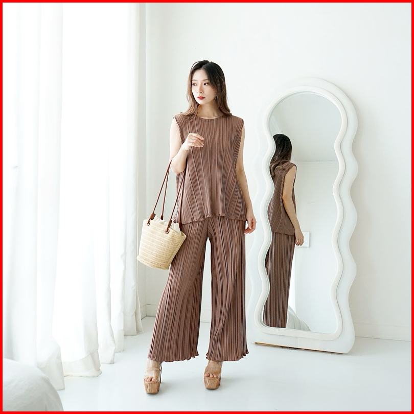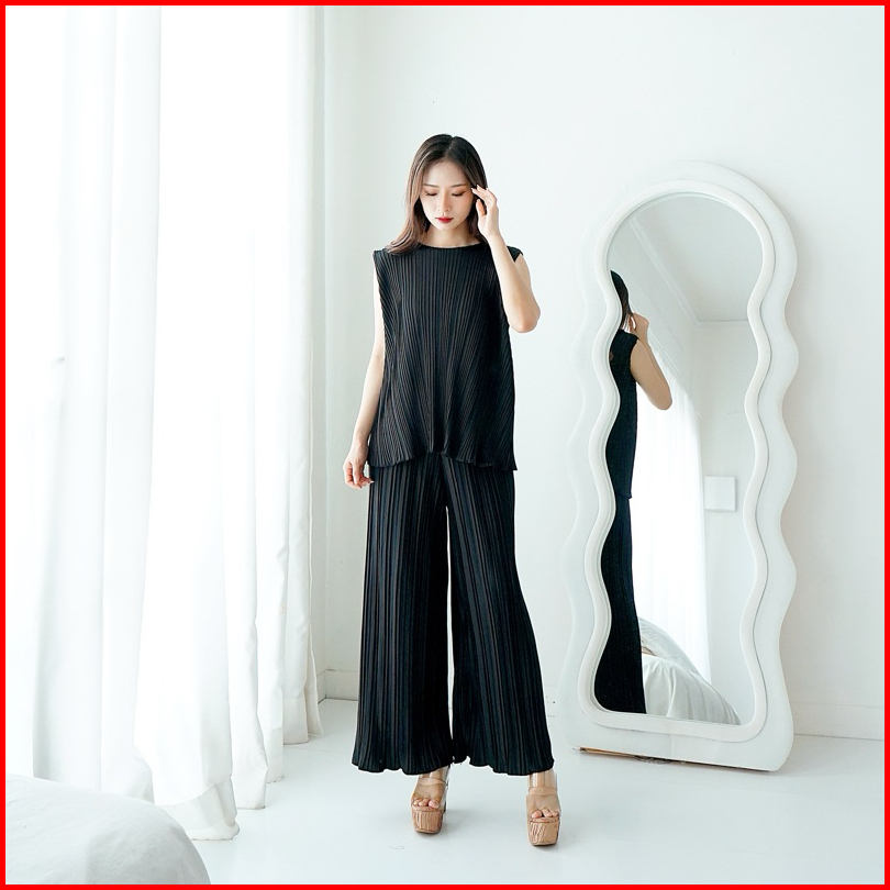 One Set Plisket Setelan Plisket Oneset Tanktop Kulot Plisket Atasan Plisket Kulot Plisket