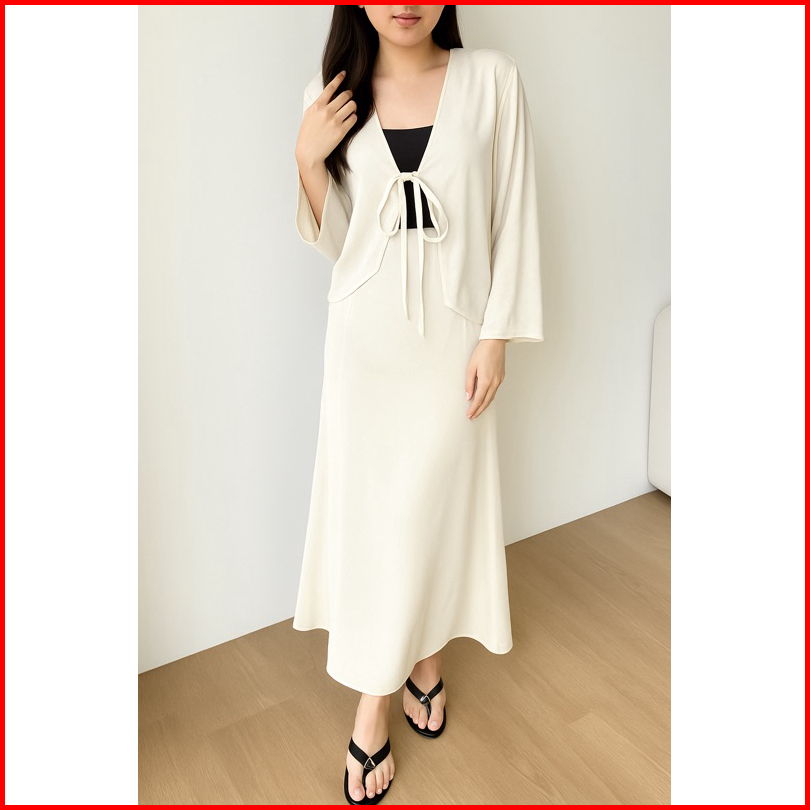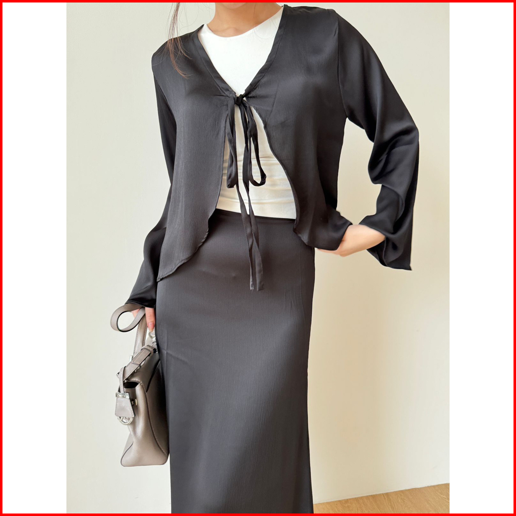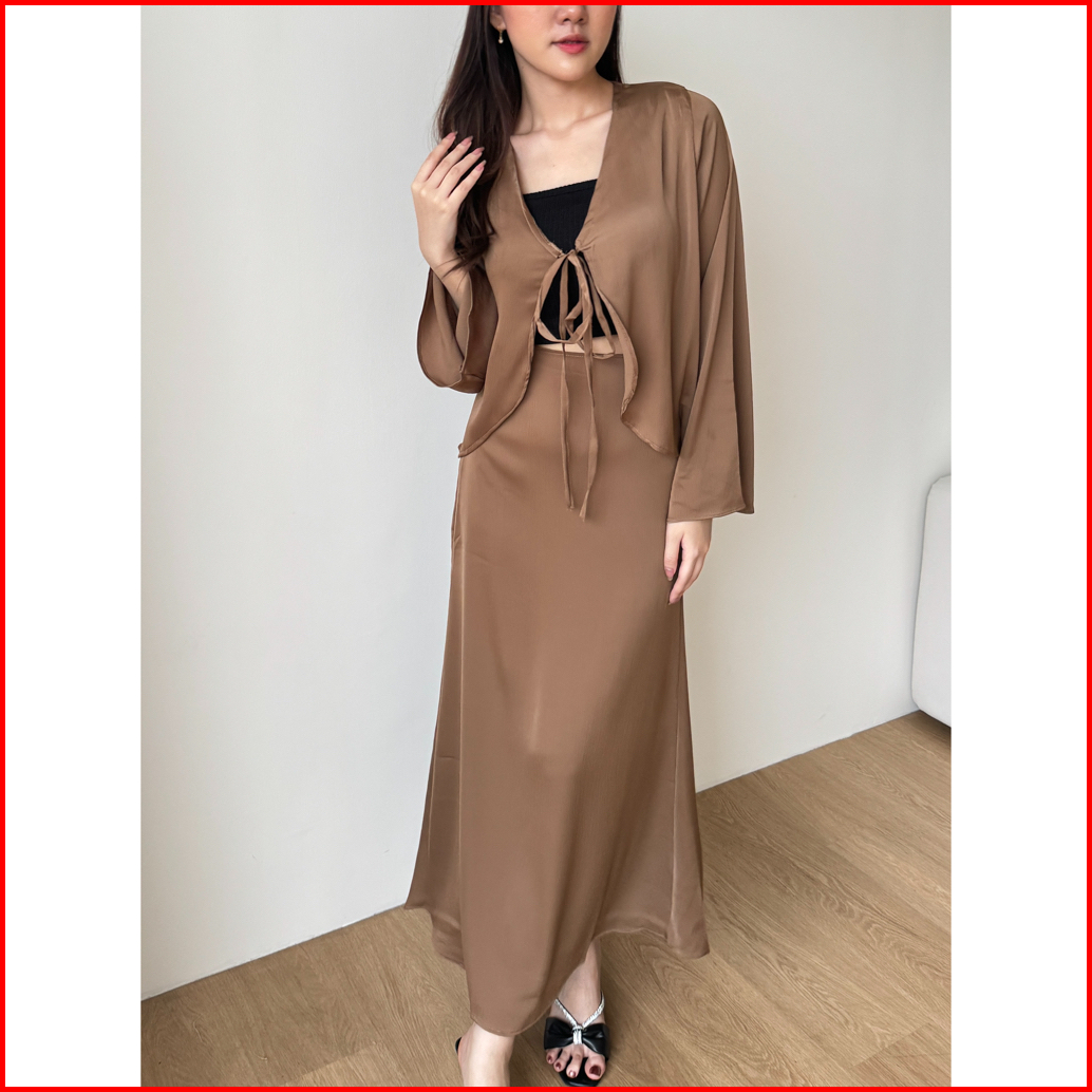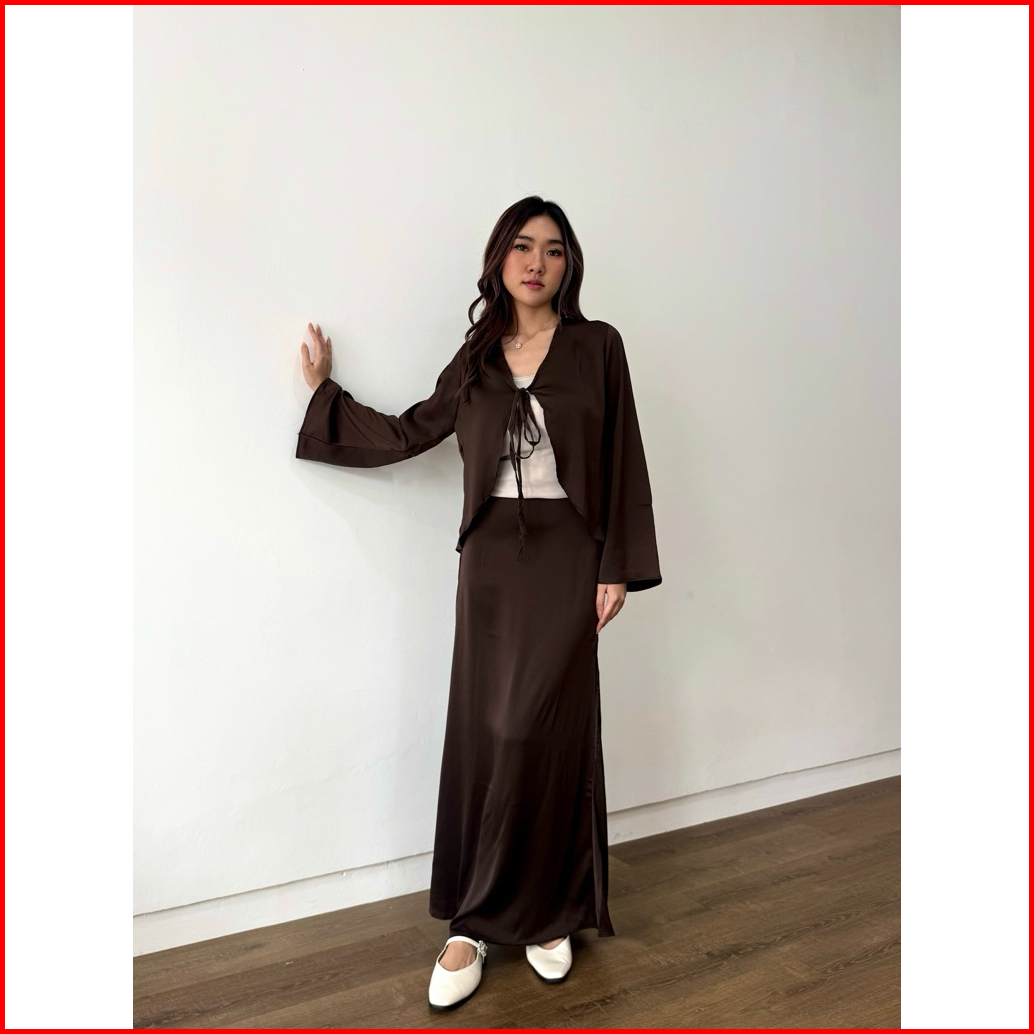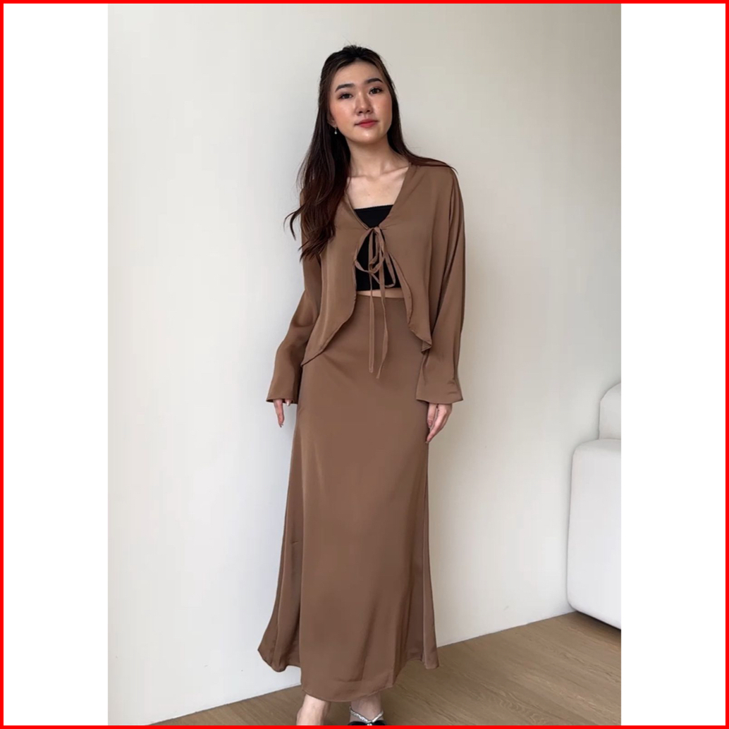 Mouiselle Herra One Set Satin Set Wanita - Set Outer With Mermaid Skirt Cardigan Outer Wanita
