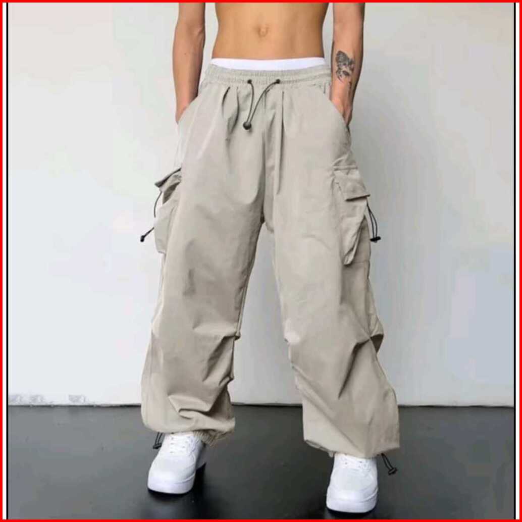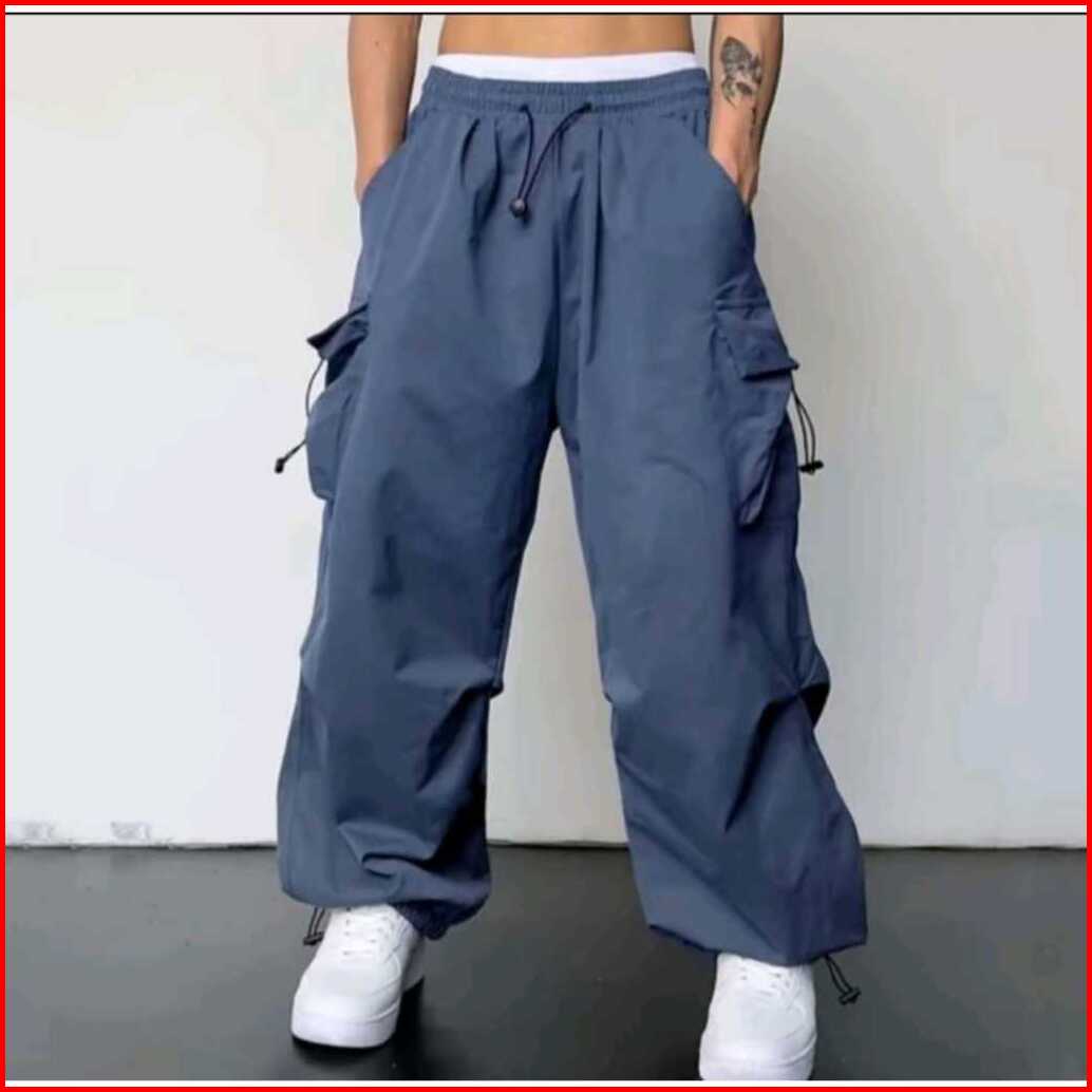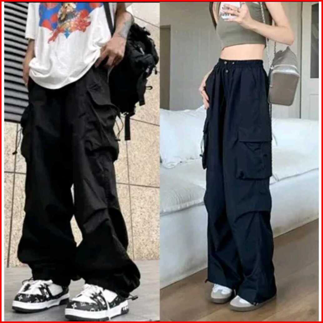 Cargo Pants Unisex High Waist Culottes Celana Kargo Panjang Kulot Pingggang Tinggi