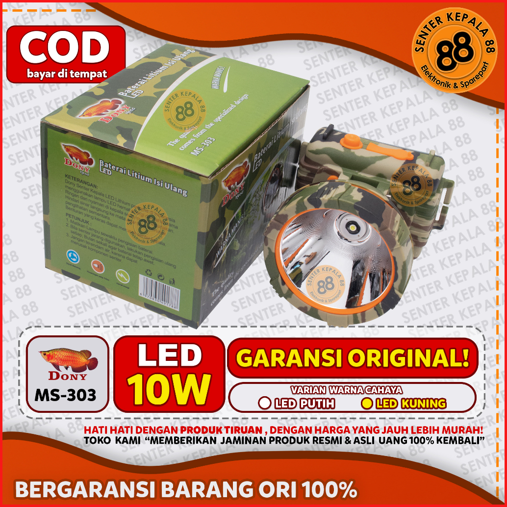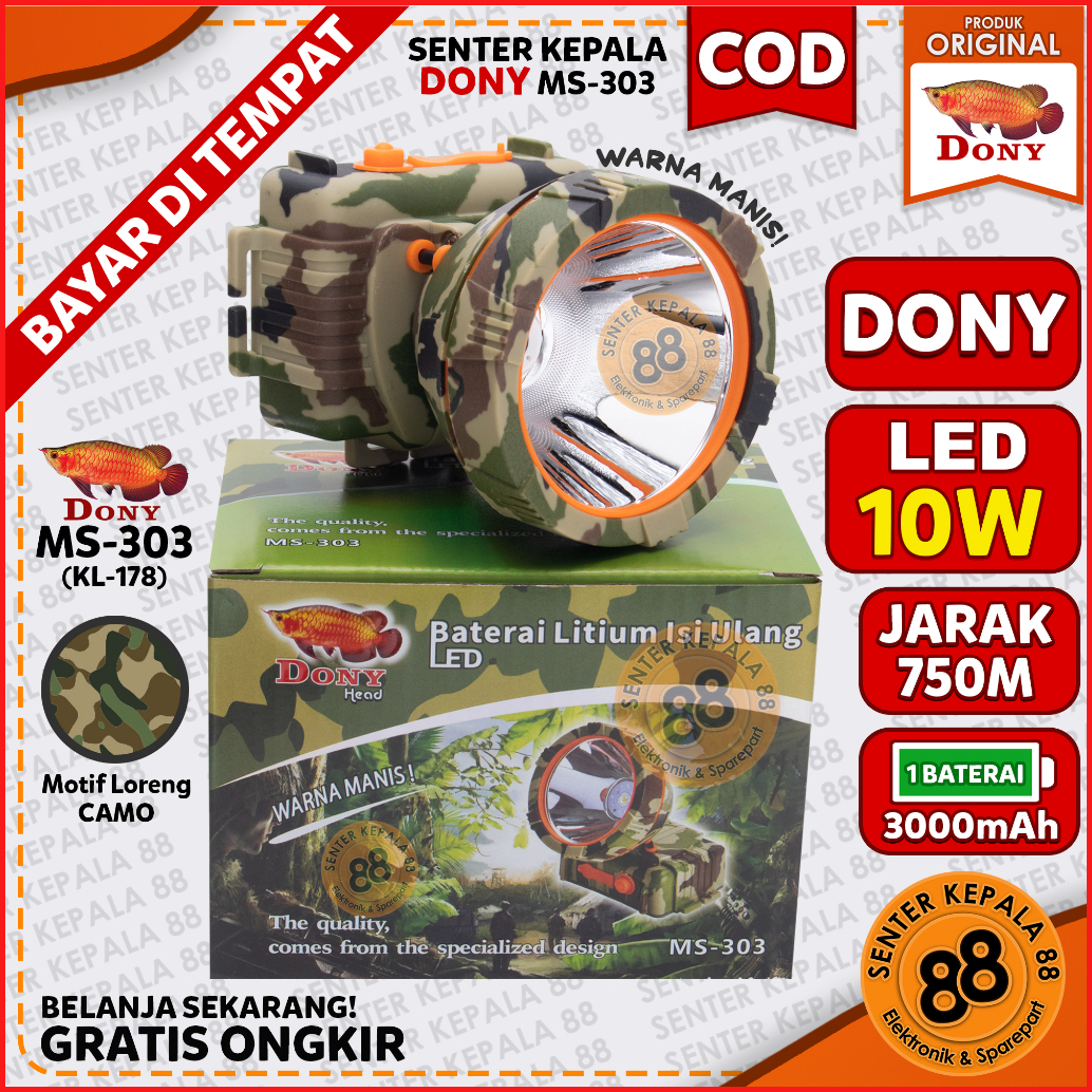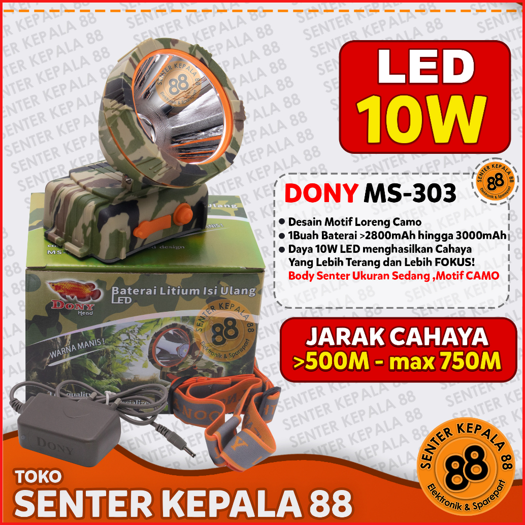Dony Senter Kepala Dony Ms 303 Ms 178 Kl 178 Cas Led Terang Jarak Jauh Gunung 10 Watt 10w Loreng