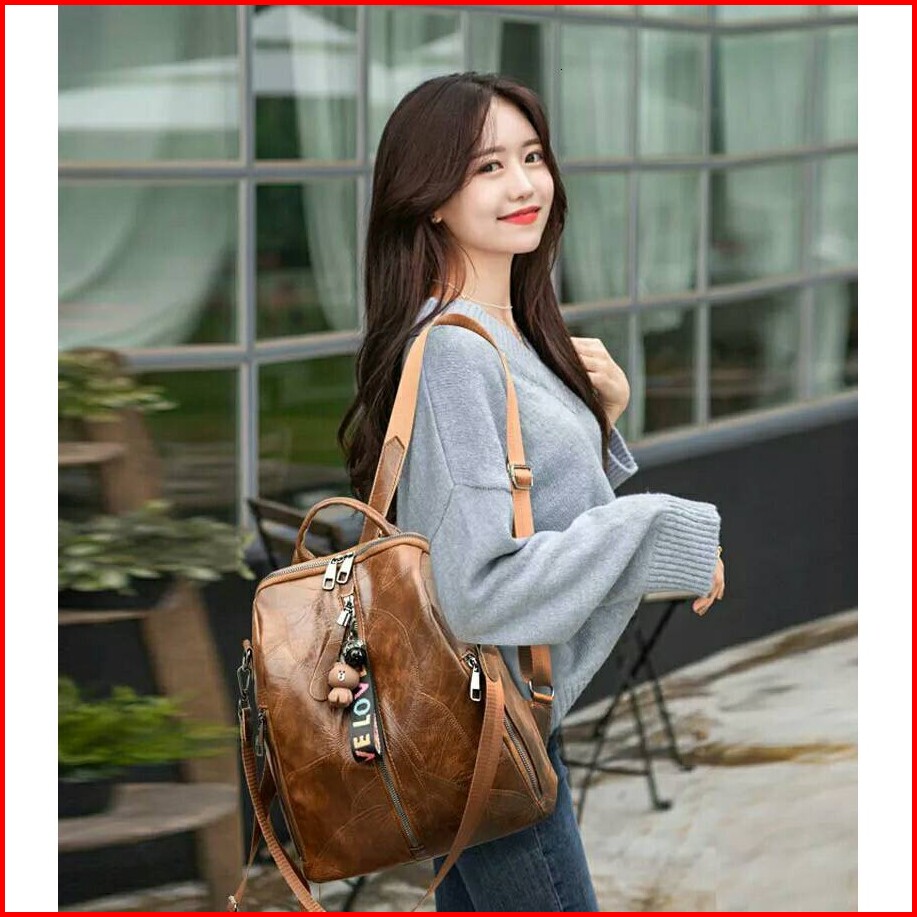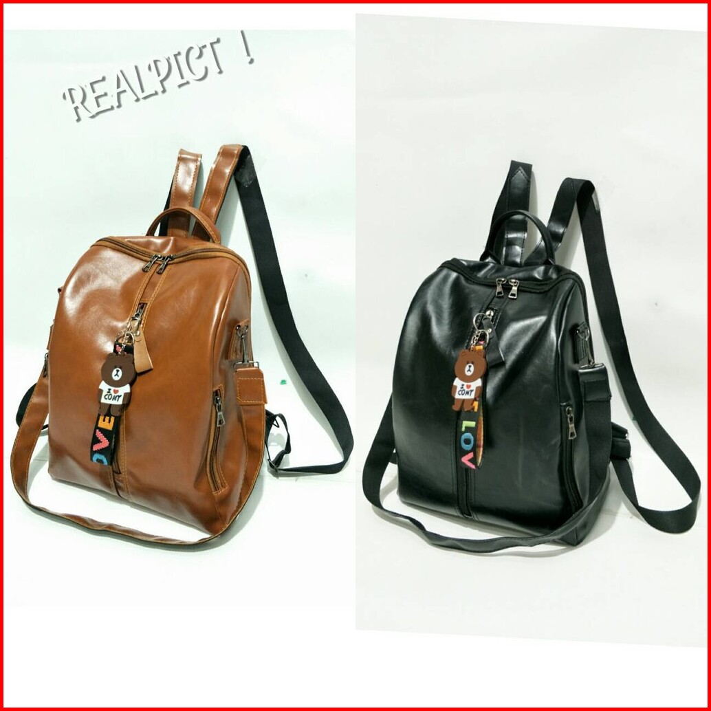 Tas Ransel Wanita Sintetis Center Zipper Multifungsi