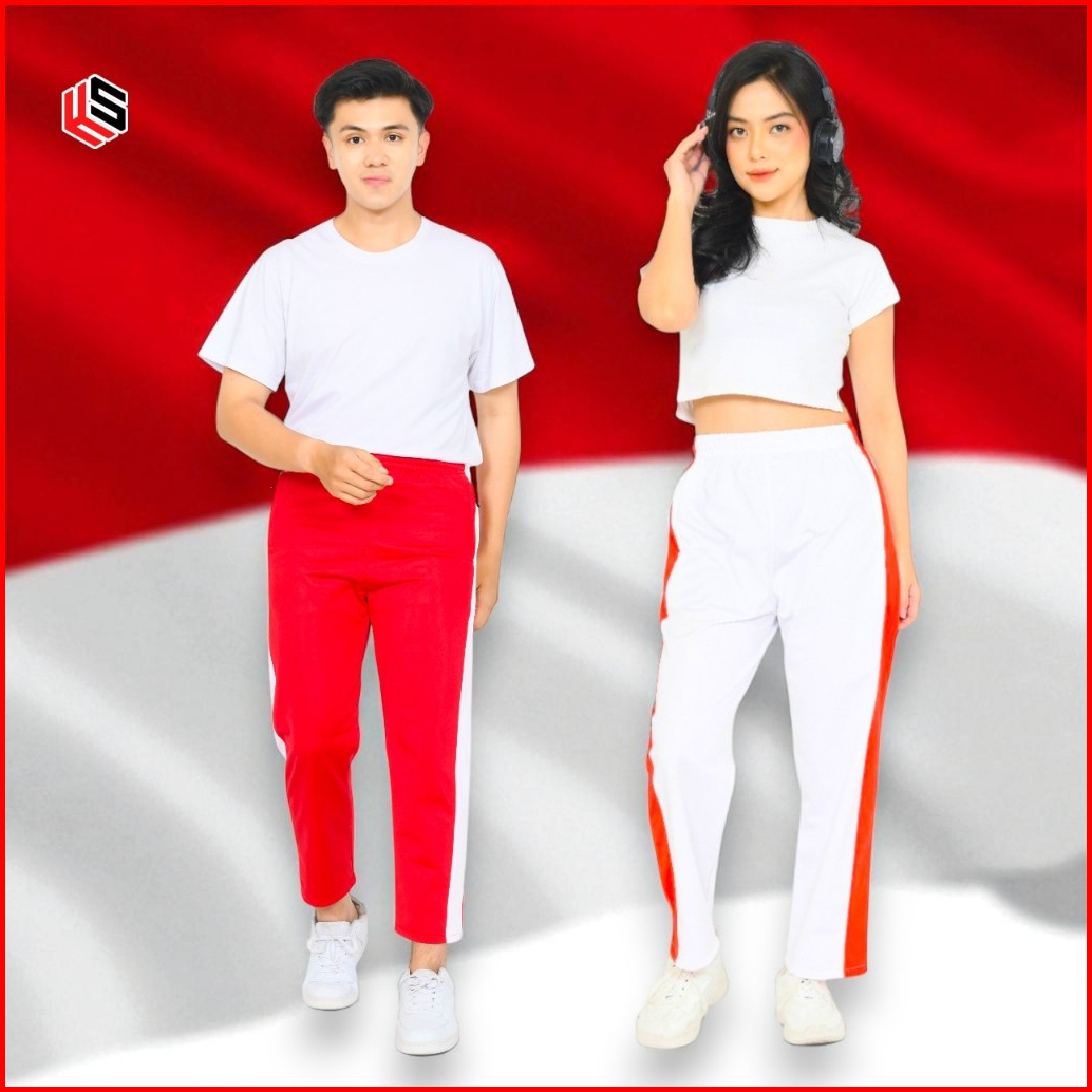 Celana Training Pria Wanita Warna Merah Putih Bahan Diadora Premium