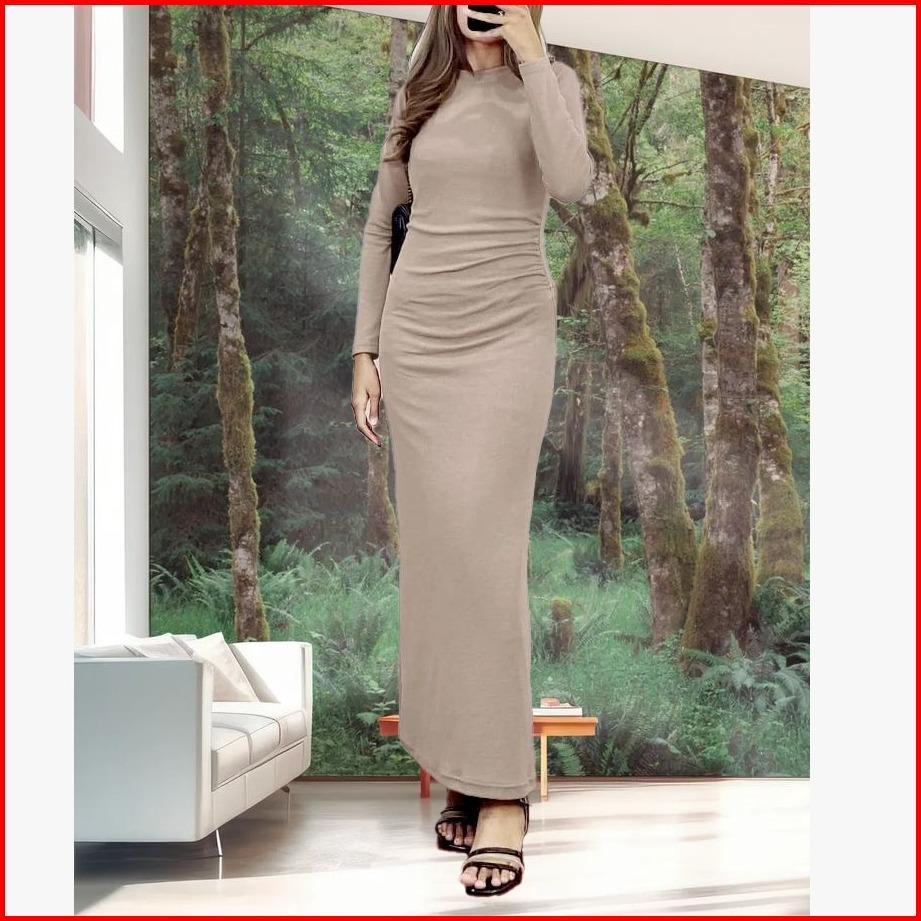 Orina Long Dress Knit Wanita Korean Style