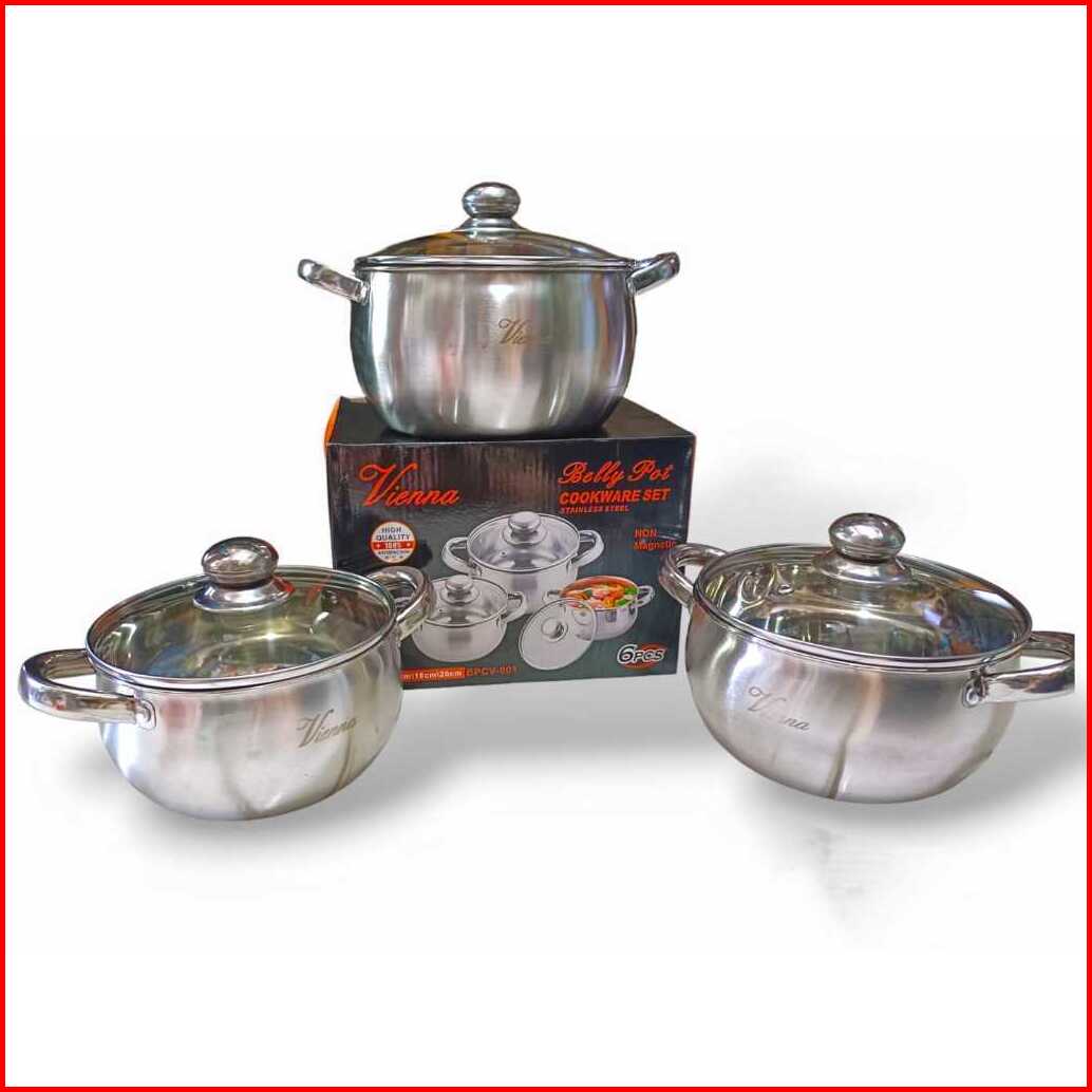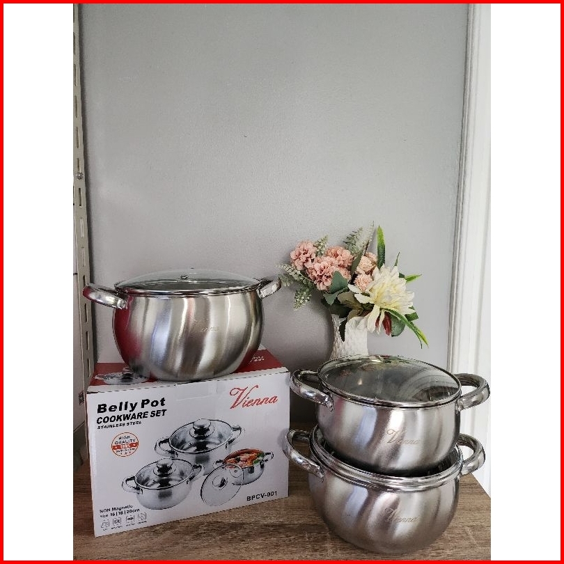 Panci Labu Premium Stainlees Set Isi 3 Pcs Panci Soup Tutup Kaca