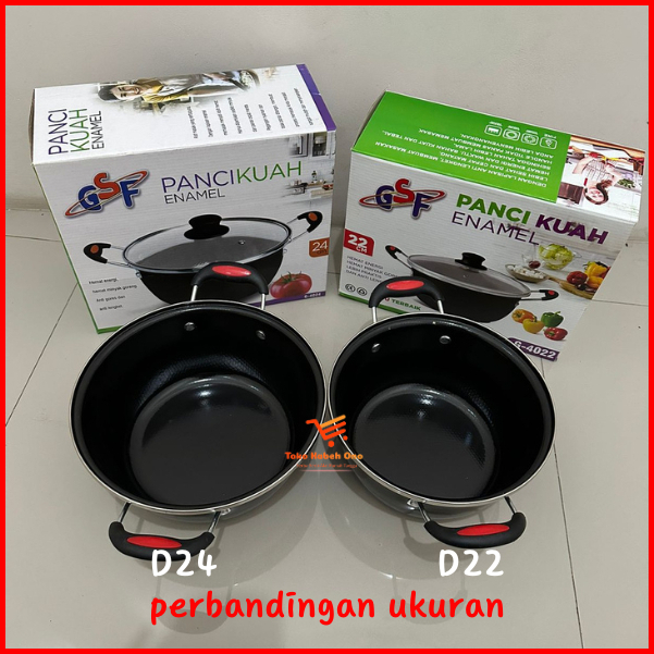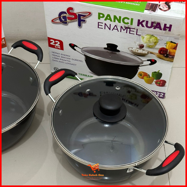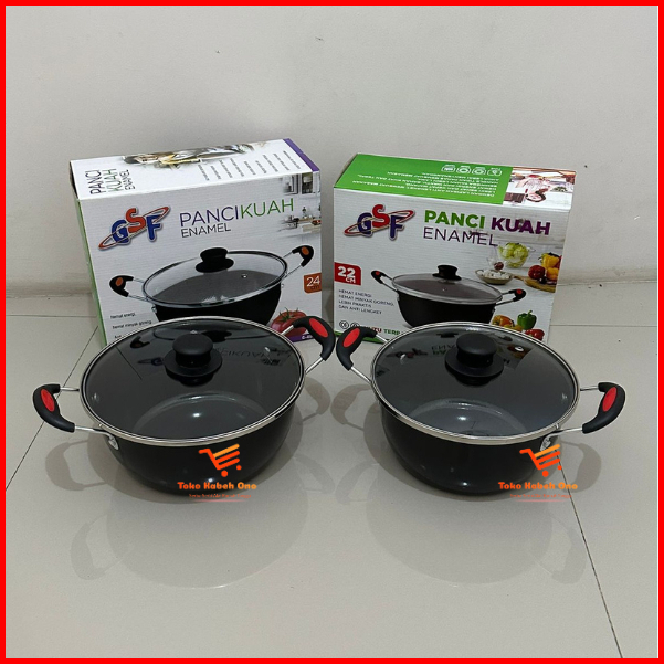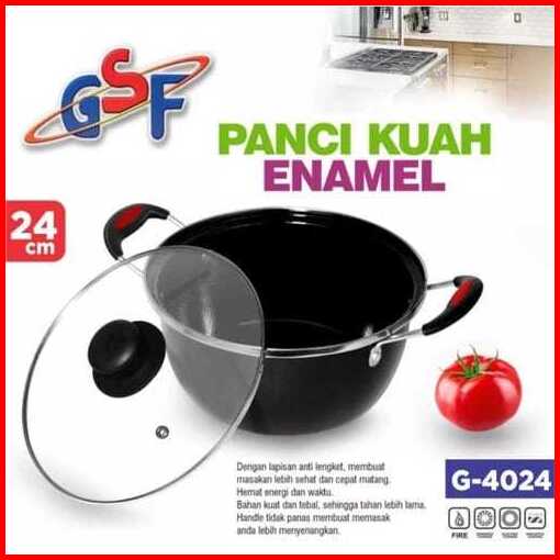 Panci Kuah Enamel Gsf Hitam Anti Lengket Sauce Pan Panci Saus Soup Sup Tutup Kaca Panci Kuping G-4022 G-4024