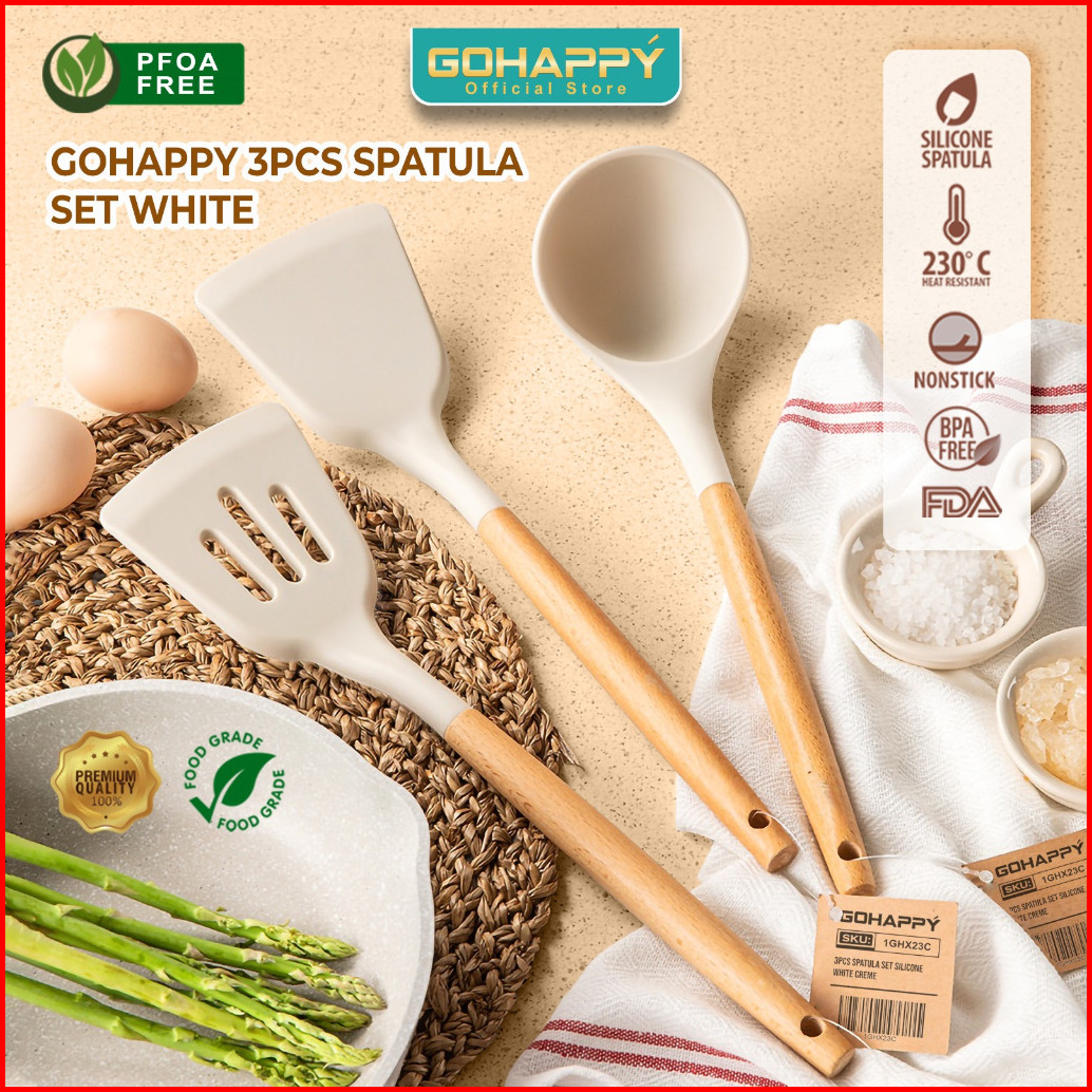 Sendok Masak Spatula Set Silikon Gohappy Isi 3 Pcs White Shovel Sendok Sutil Tahan Panas Anti Lengket Food Grade