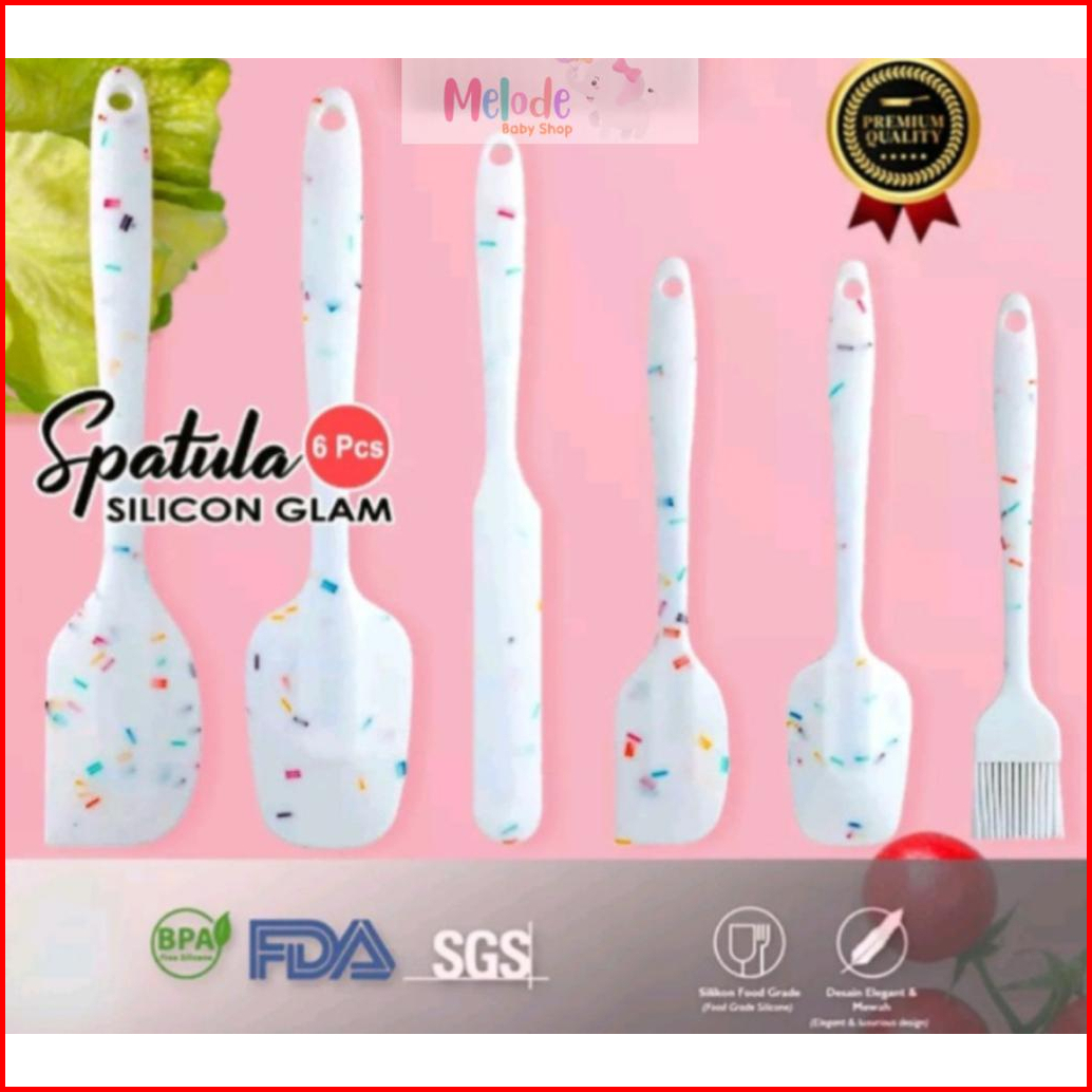 Spatula Glam Set 6 Pcs Silicone Premium - Sendok Masak Dapur Sutil Silikon Grill Pan Baking