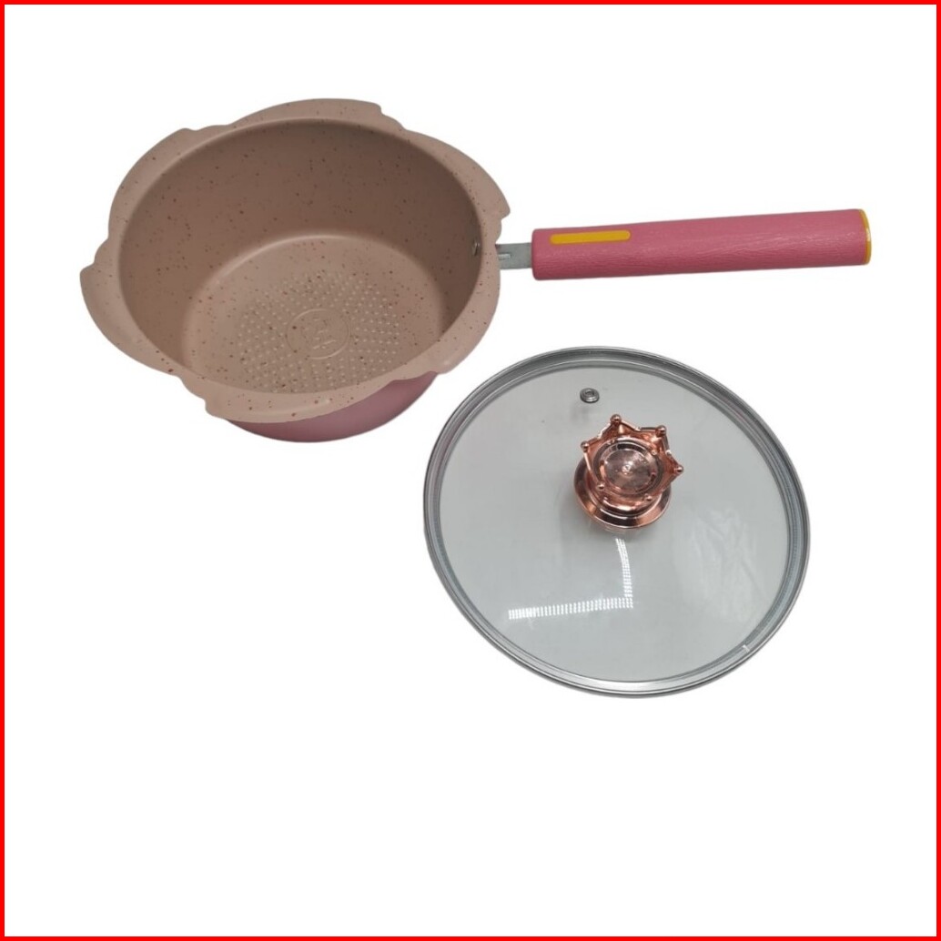 Panci Sakura Mpasi Aluminium Coating Granite Marbel-peralatan Panci Bayi Warna Pink Kuat Anti Lengket Balita Wajan Food