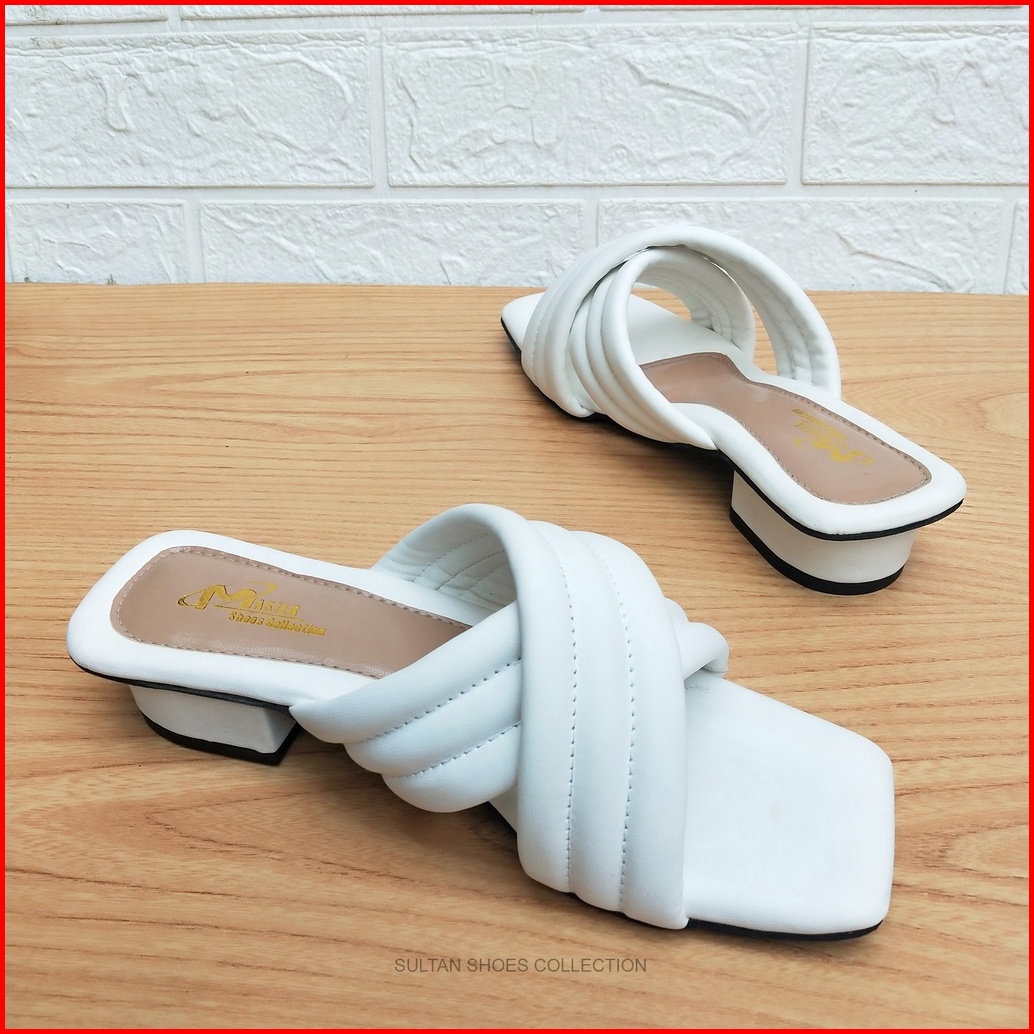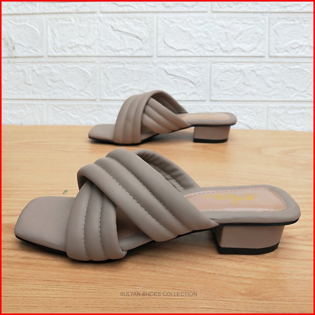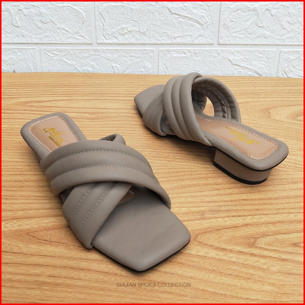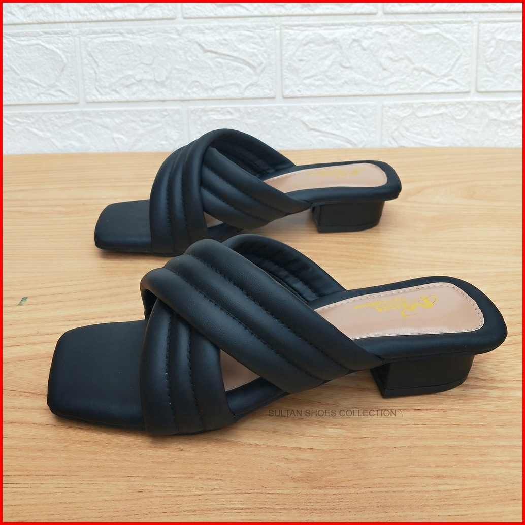 Sandal Sendal High Heels Hak Tinggi 3cm Strap Selop Puffy Silang Busa Wanita Terbaru Kekinian Sandal Hak Tinggi 3 Cm Fla