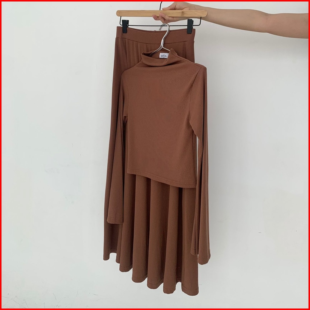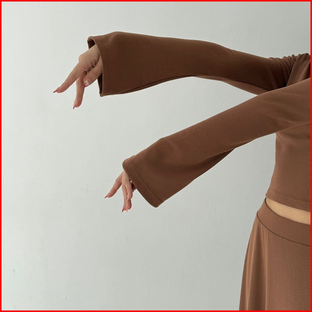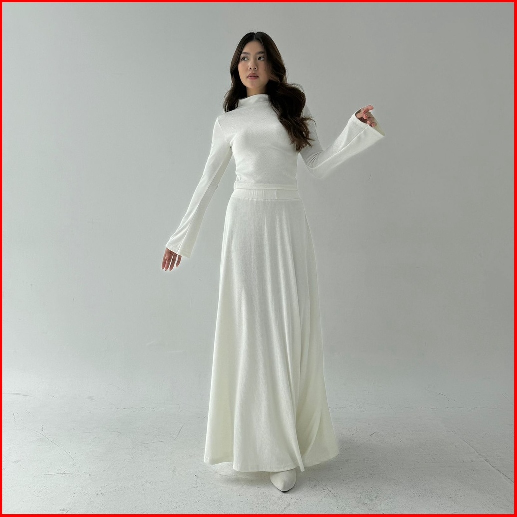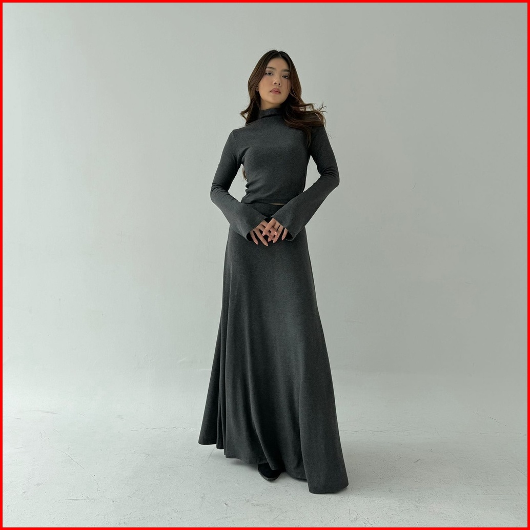 Sagittarius Set Setelan Wanita Long Sleeve Rok Panjang Ribbed Knit Set Crop Top Maxi Skirt Korean Long Skirt Long Sleeve