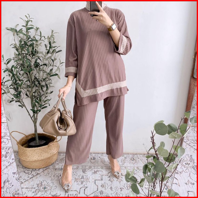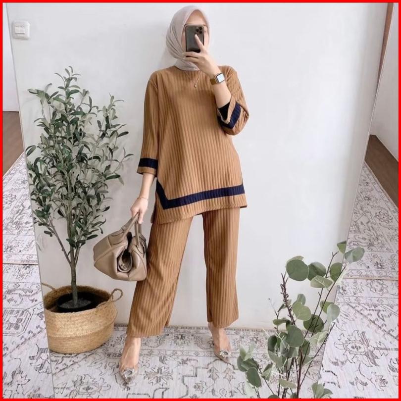 Setelan One Set Knit Hornet Wanita Premium Terbaru Viral Kekinian - Amira Set