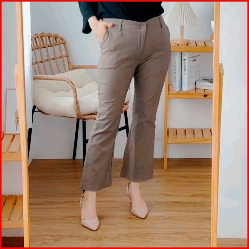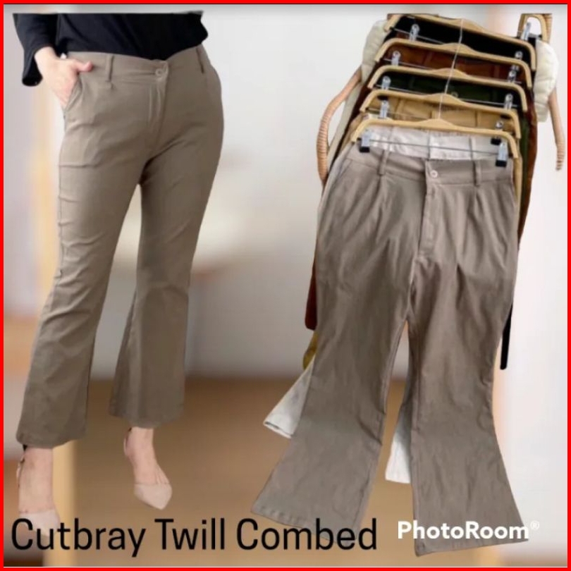 Celana Basic Cutbray Pants Sleting Wanita Katun Premium