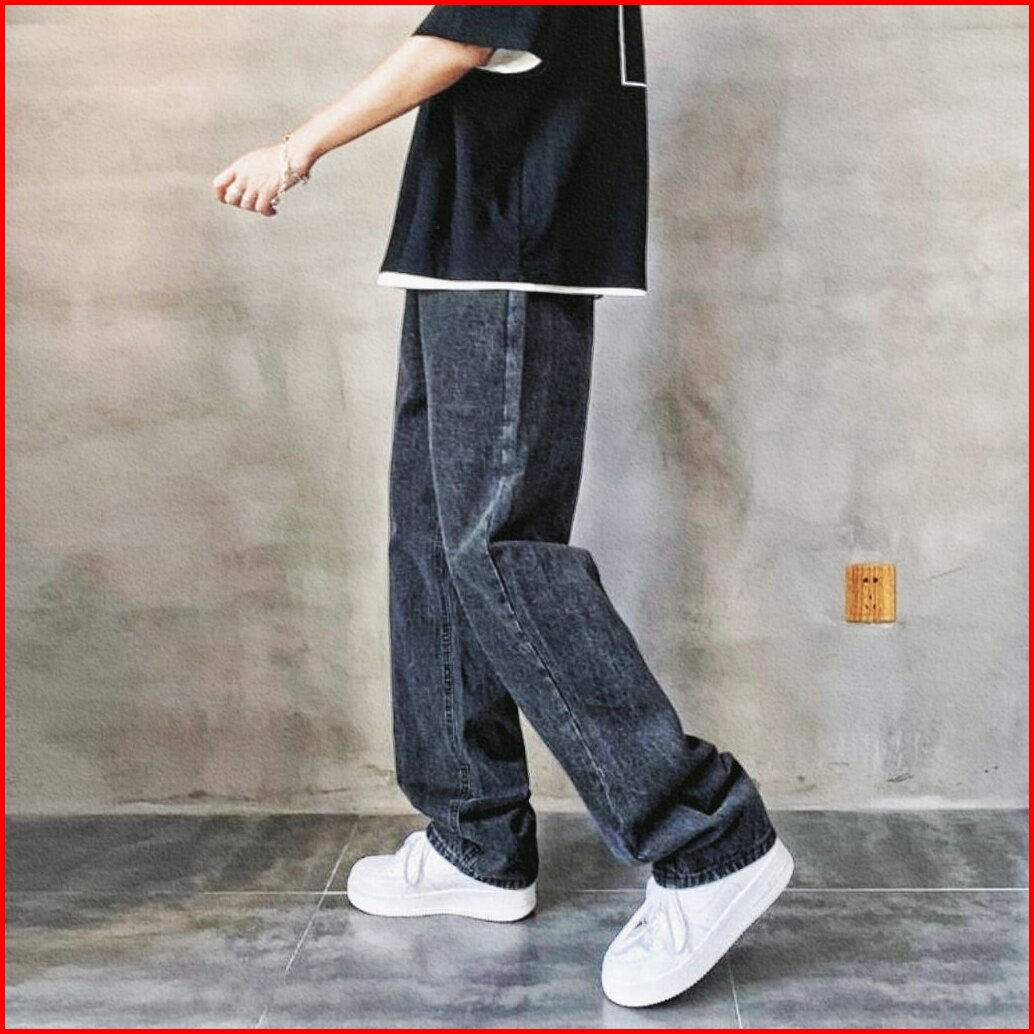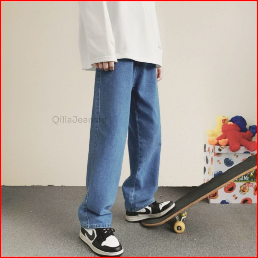 Celana Jeans Pria Baggy Pants Korean Style Oversize Loose Blue Jeans Straight Kulot Boyfriend