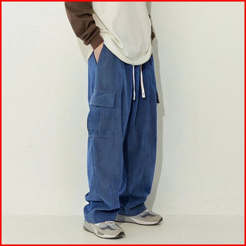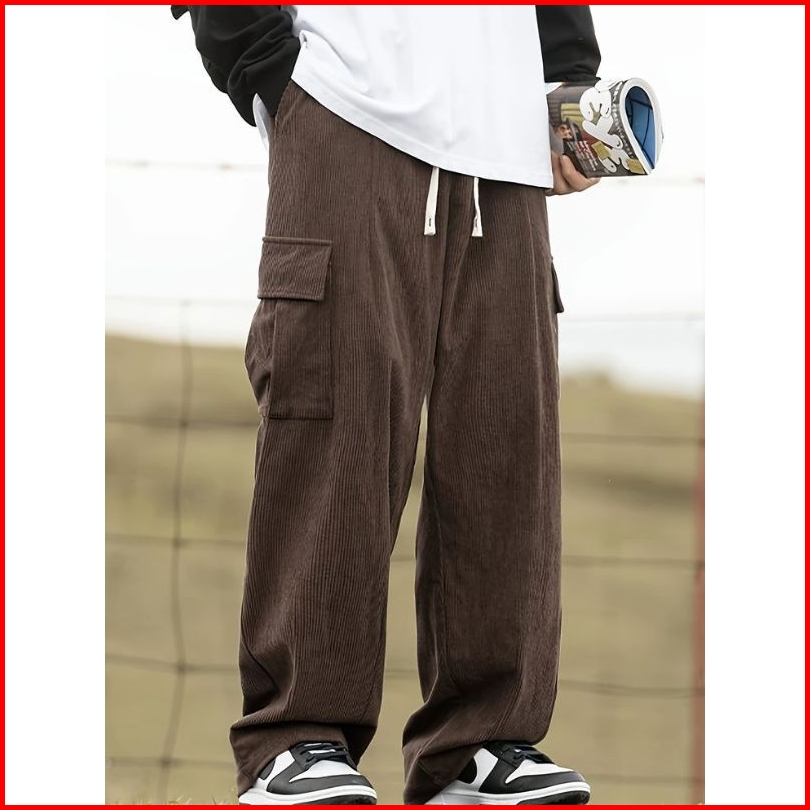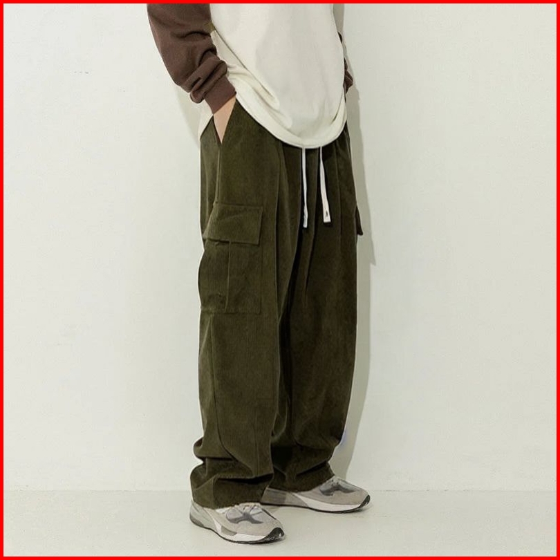 Celana Carga Corduroy Panjang Loose Fit Celana Panjang Cargo Corduroy Reguler