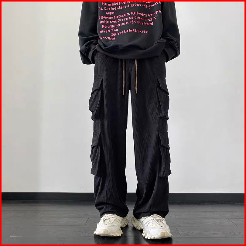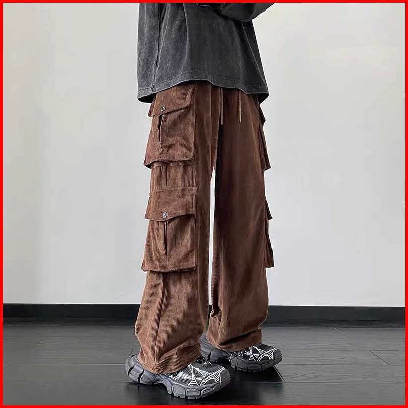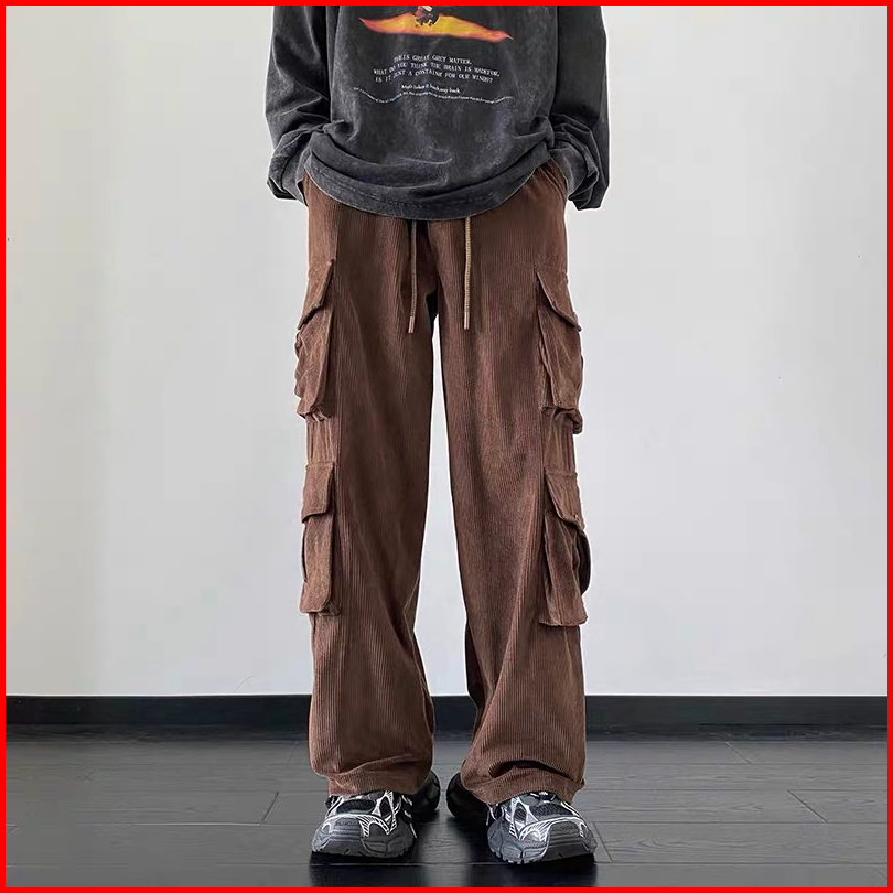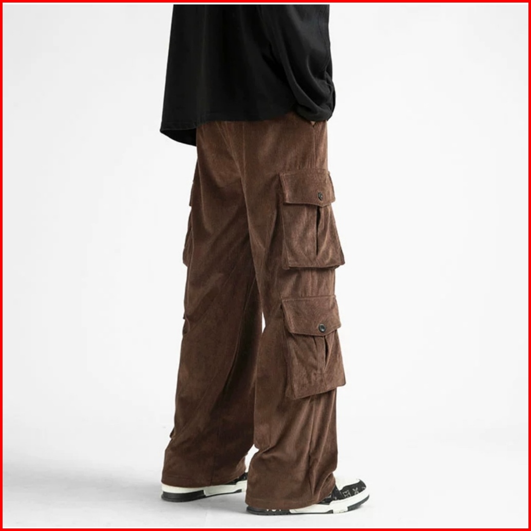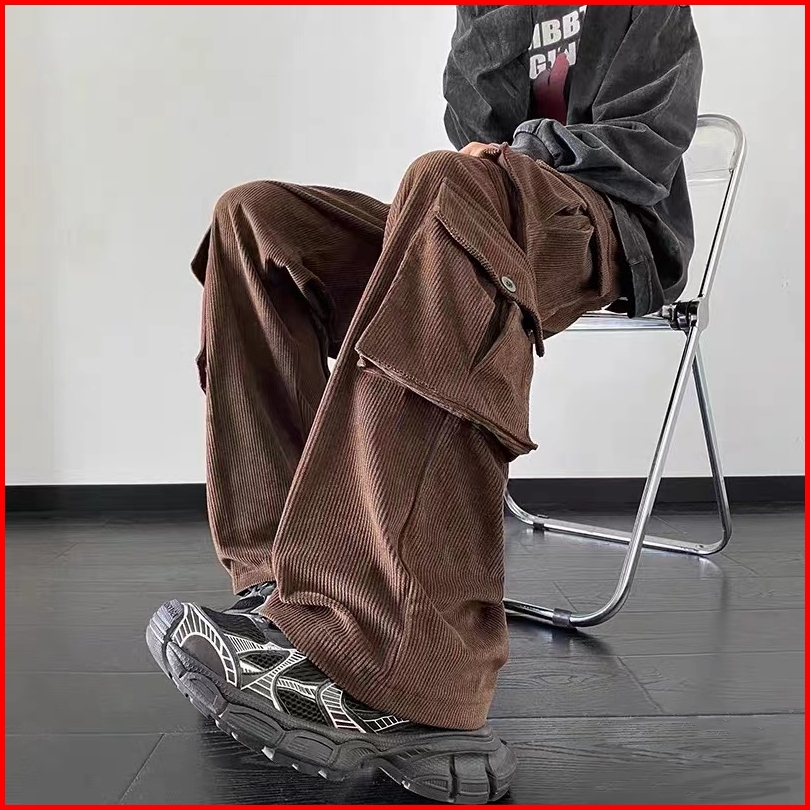 Celana Cargo Panjang Pria Celana Outdoor Pria Retro Baggy Celana Kargo Corduroy Longgar Casual Big Size Kulot America St