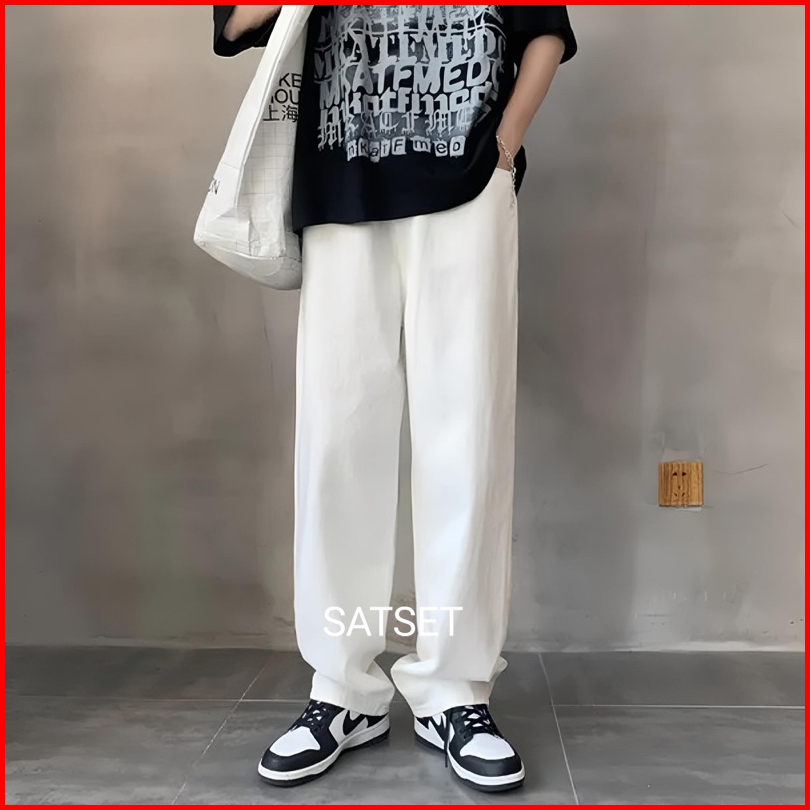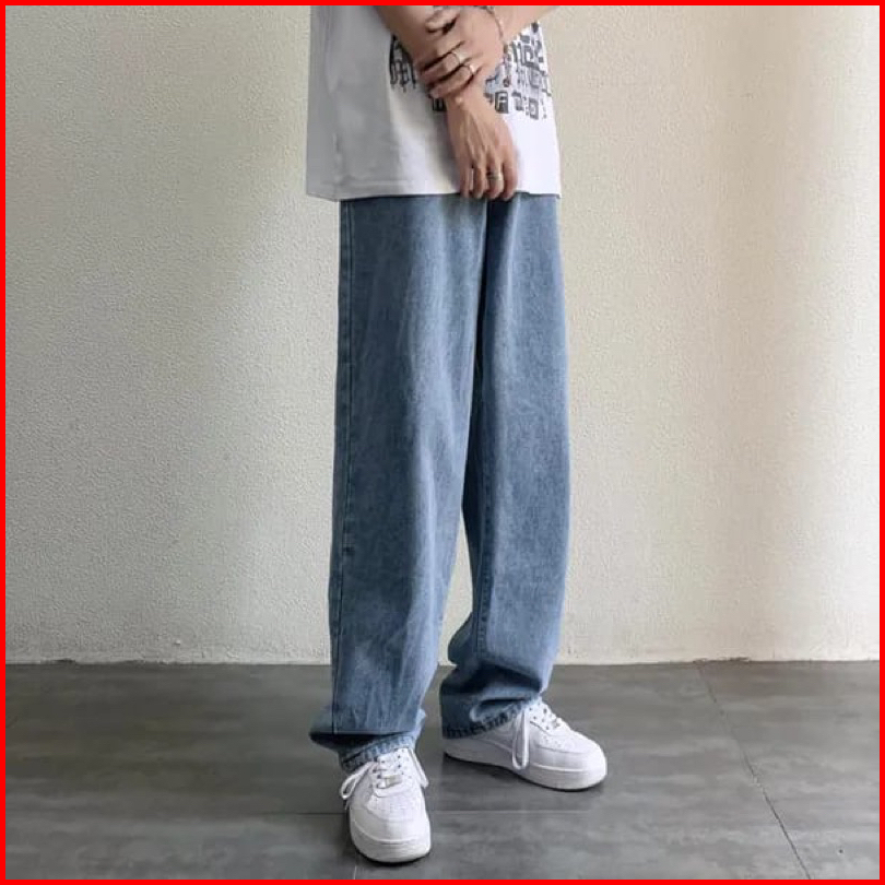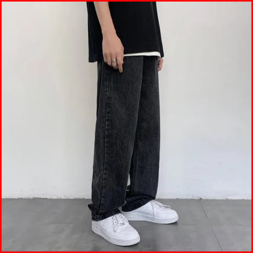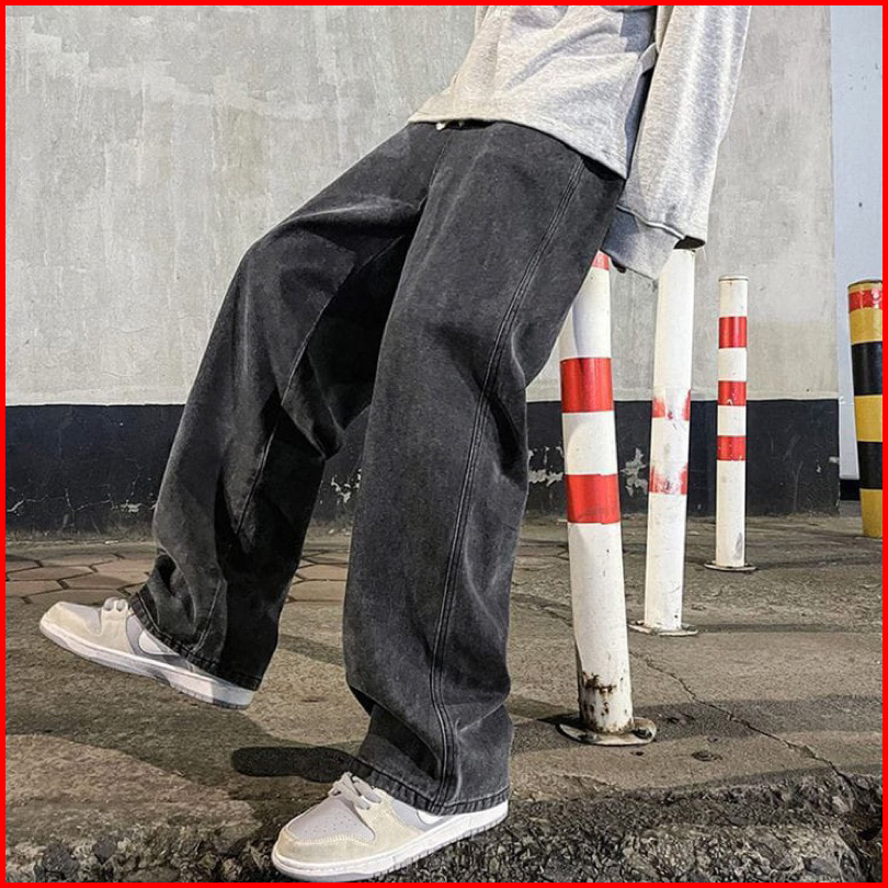 Celana Jeans Panjang Reguler Pria Korean Style Oversize Loose Pants Jeans Longgar