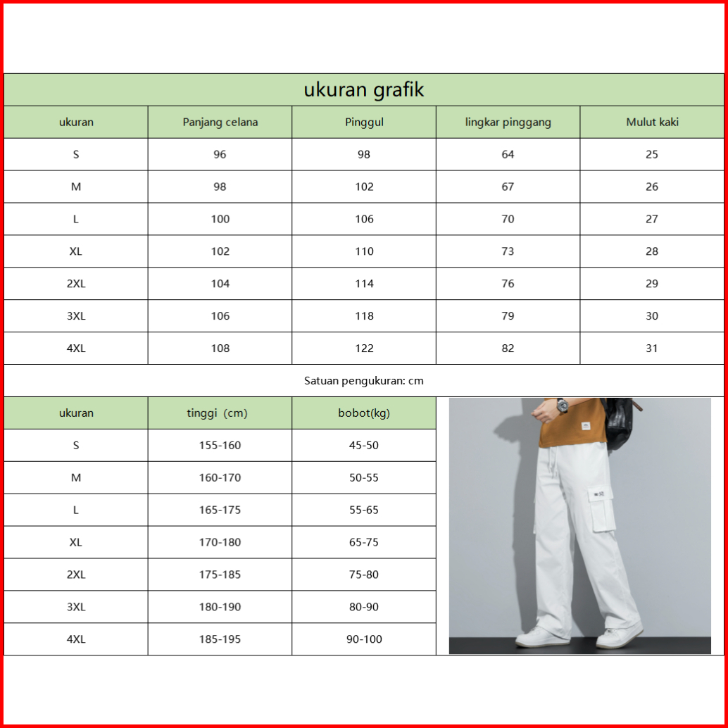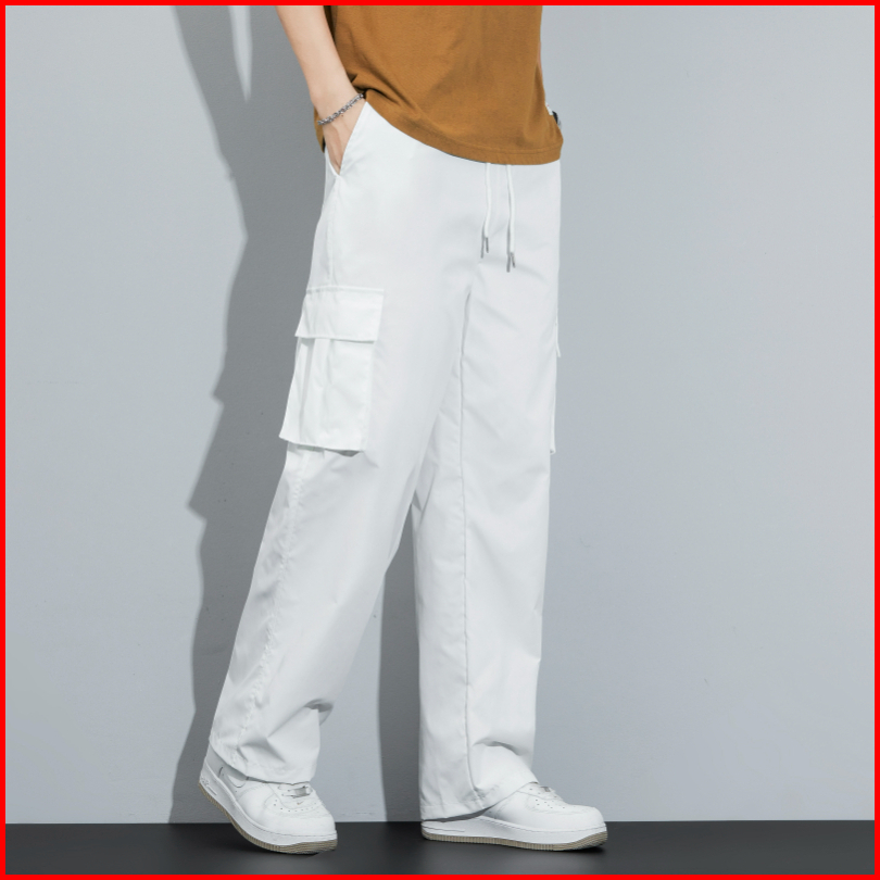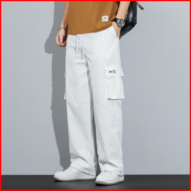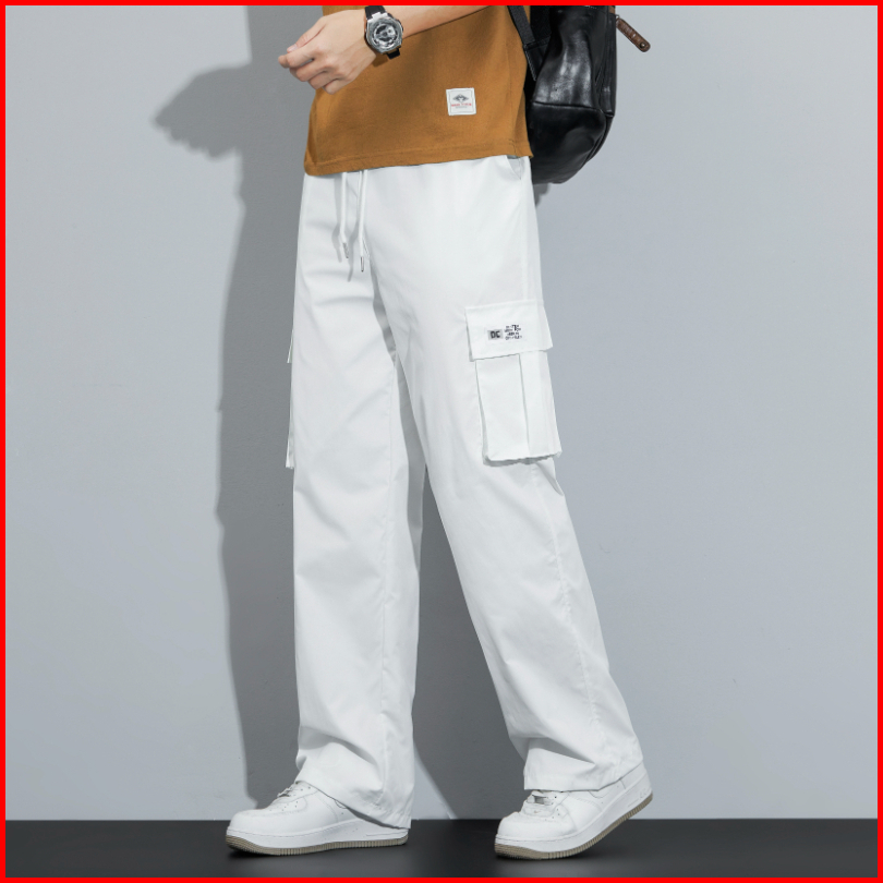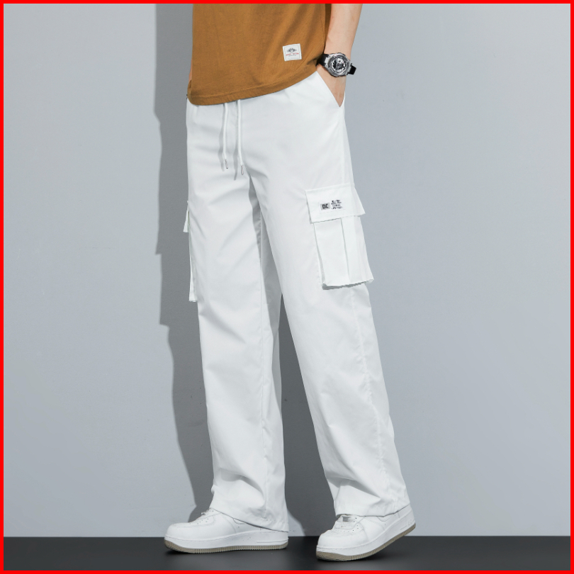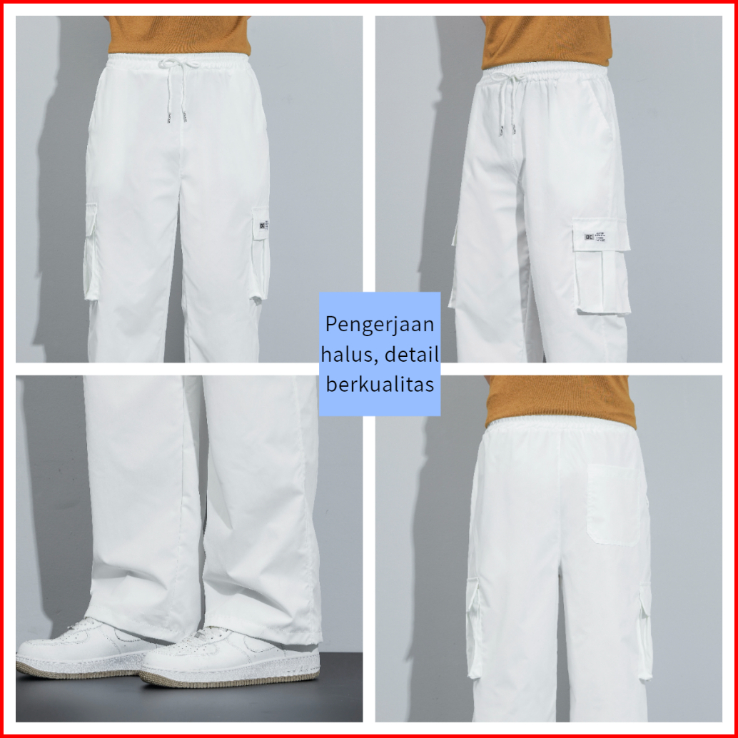 Big Size Celana Cargo Sutra Es Panjang Pria Loose Cargo Pants Putih Korean Style Oversize Jumbo Distro Cowok Kekinian Ce