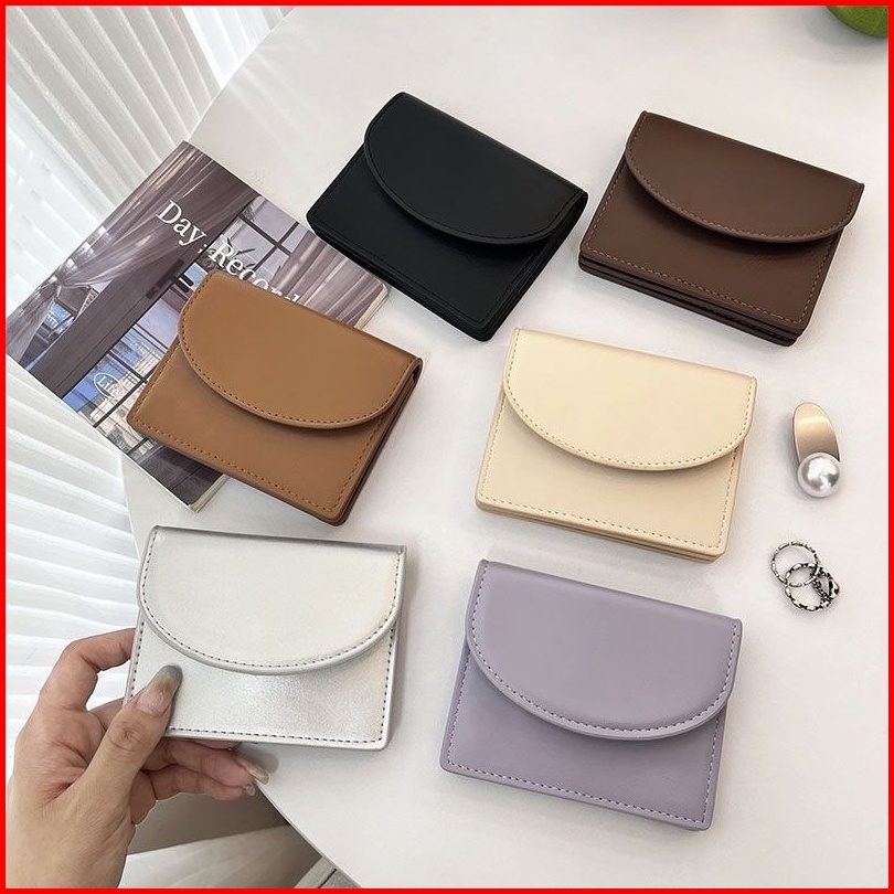 Dompet Kartu Wallet Wanita Lipat Kecil Bahan Kulitpu Leather Dompet Koin Fashion Short Card Wallet