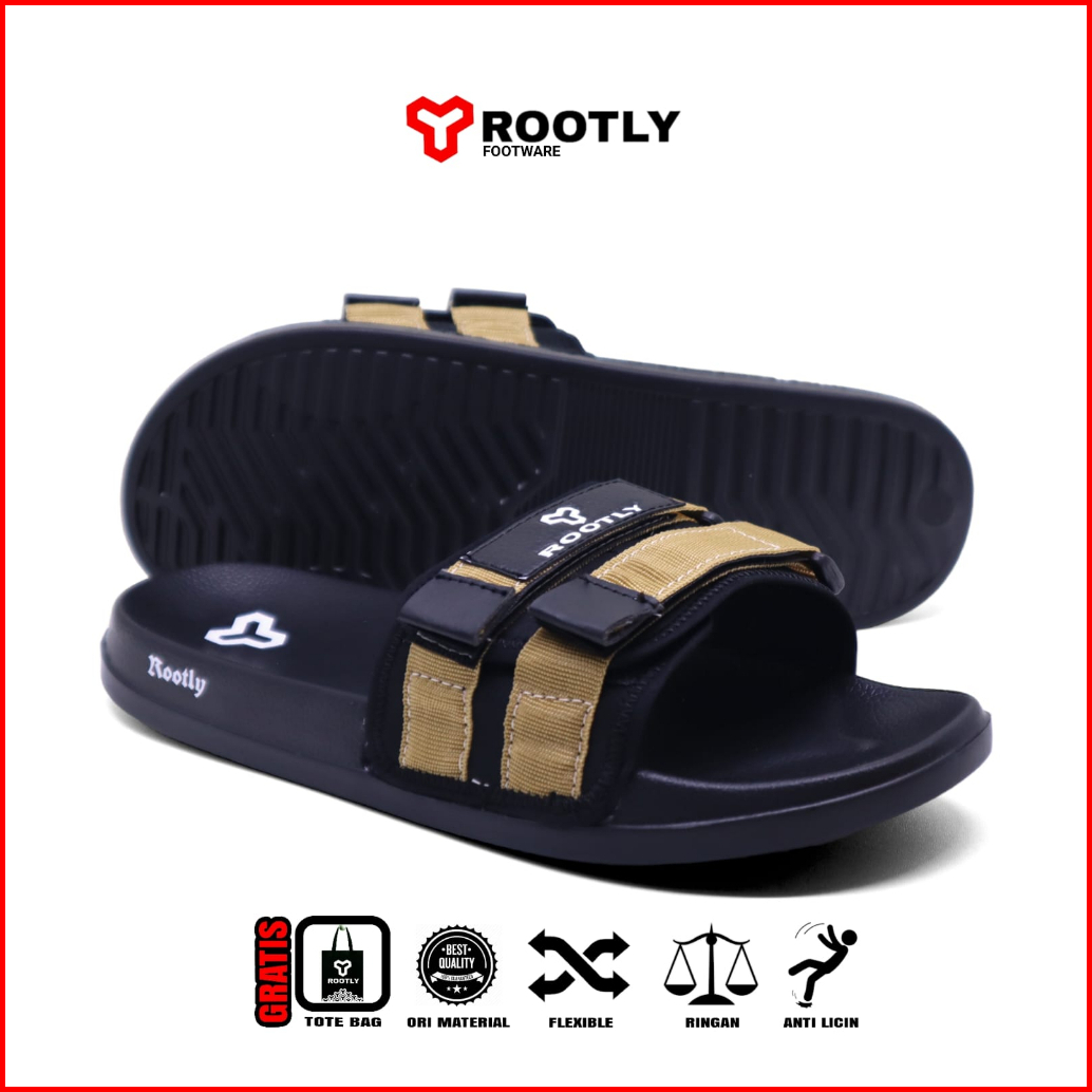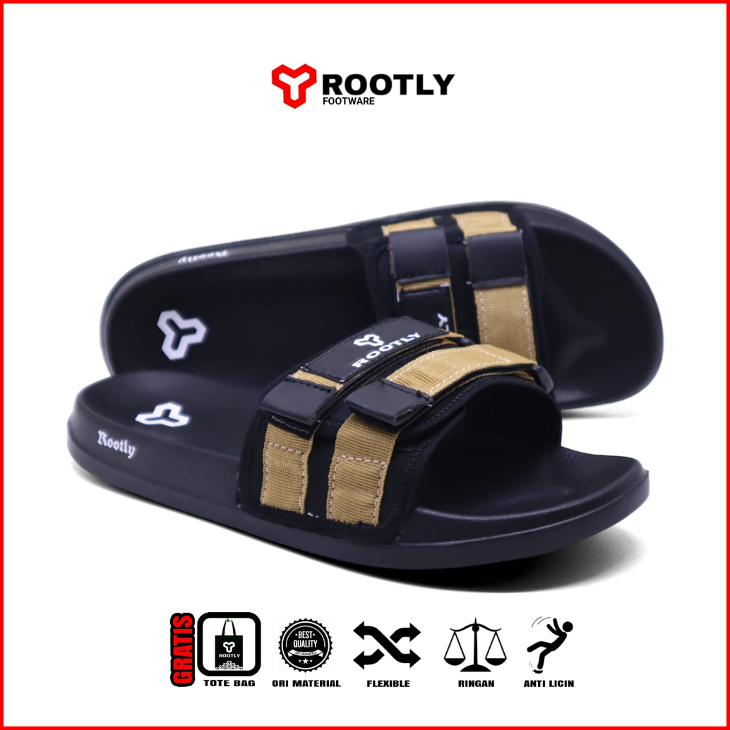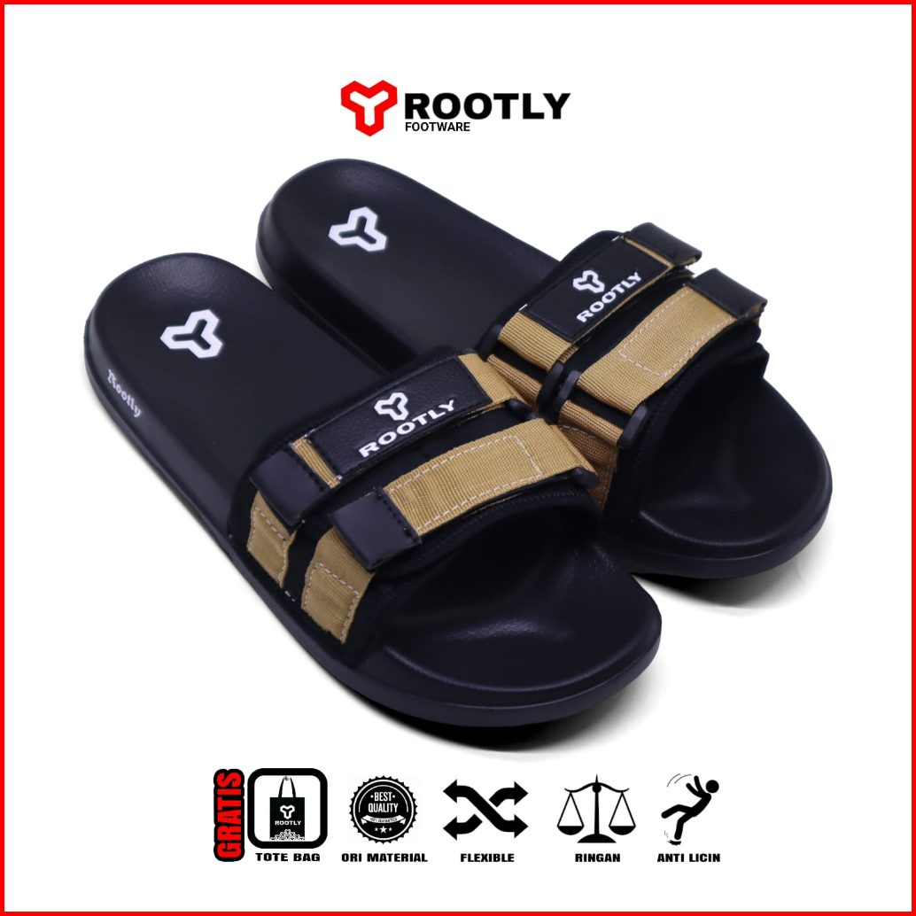 Rootly - Sandal Slide Pria Terbaru Velcro Cokelat Hits Kekinian