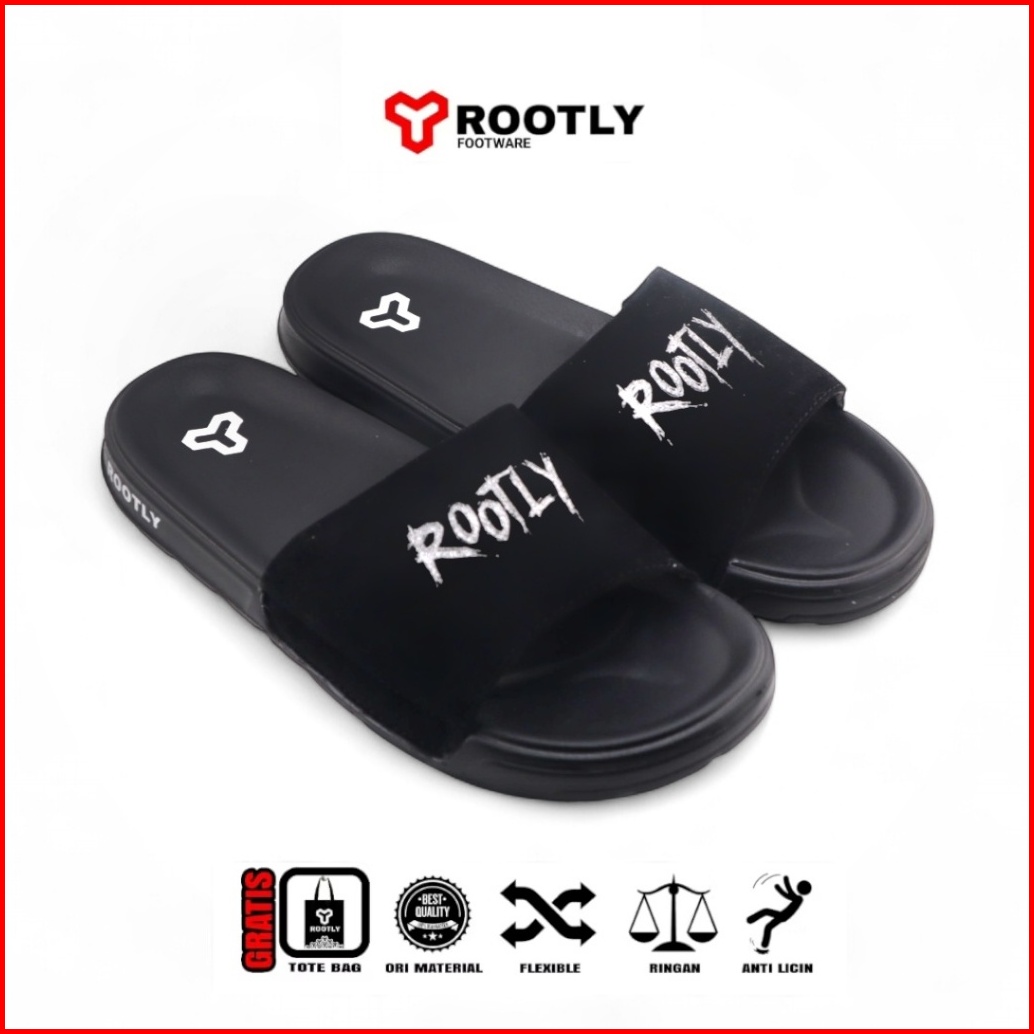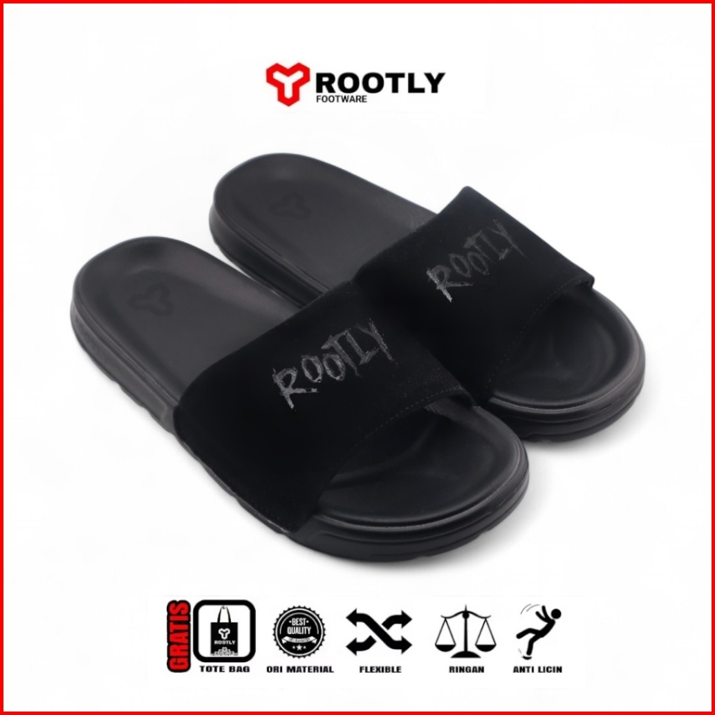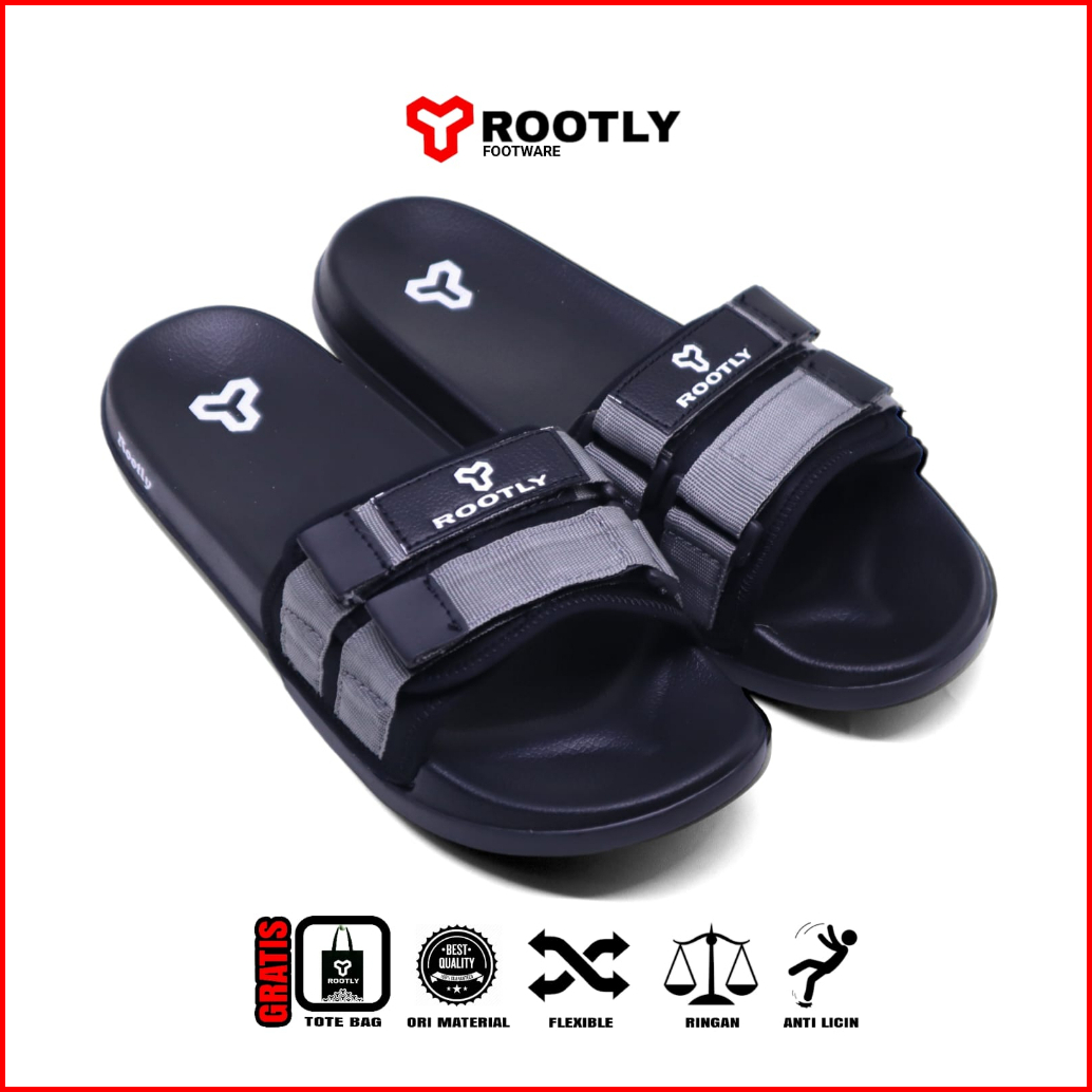 Rootly - Sandal Slide Pria Terbaru Velcro Cokelat Hits Kekinian