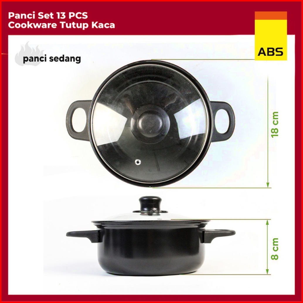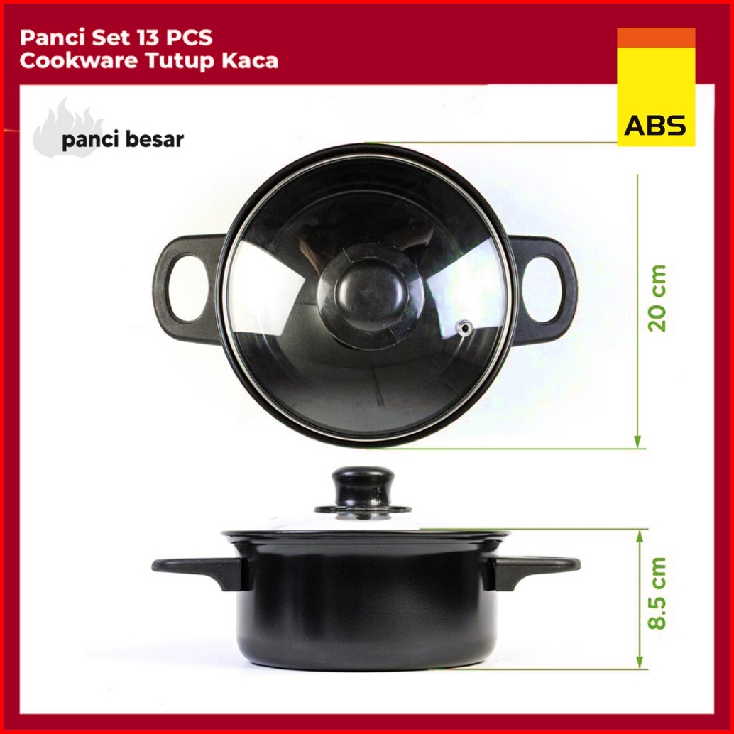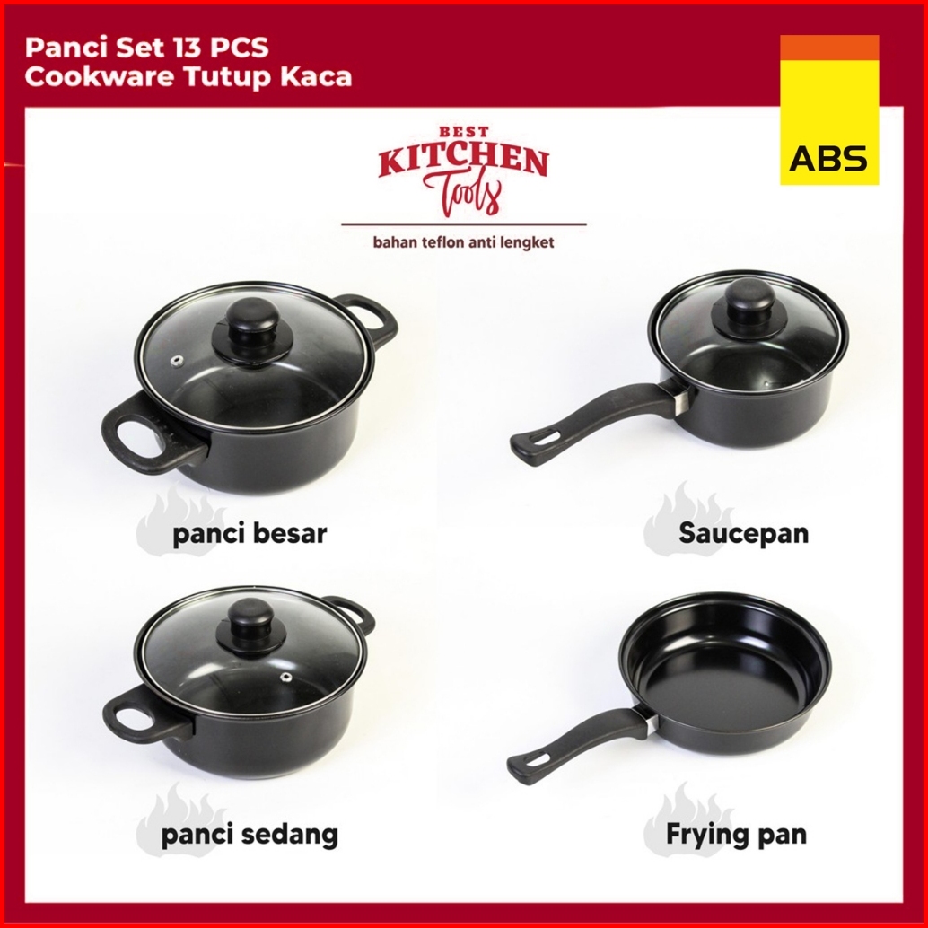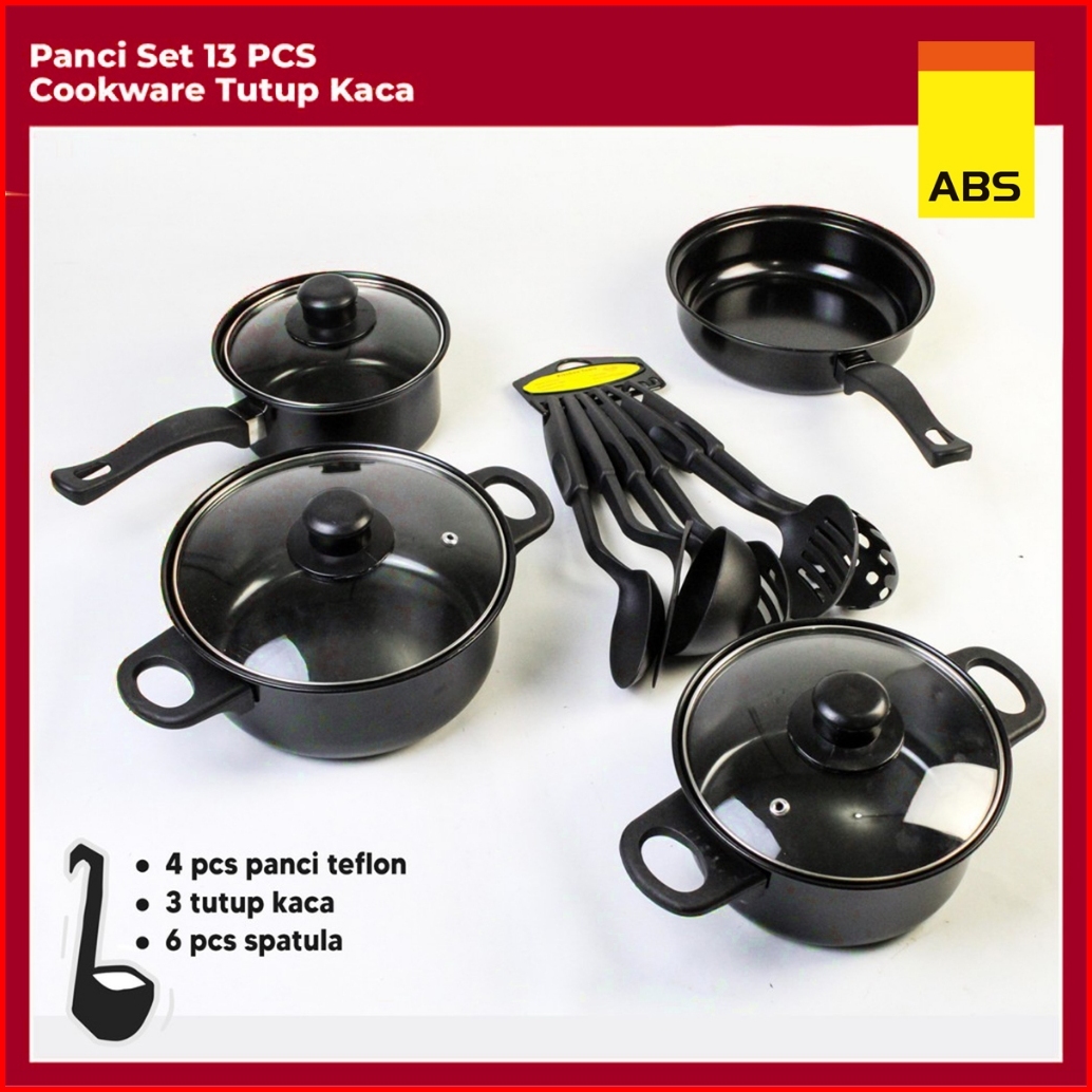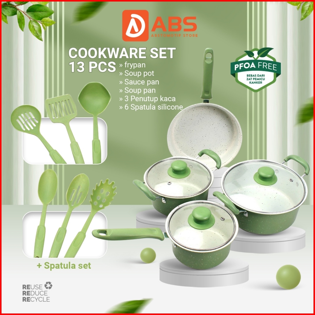 Hongzhuo By Abs Panci Teflon Marble - 13 Pcs Cookware Set Tutup Kaca Cookware Panci Set Wajan Penggorengan Spatula Set I