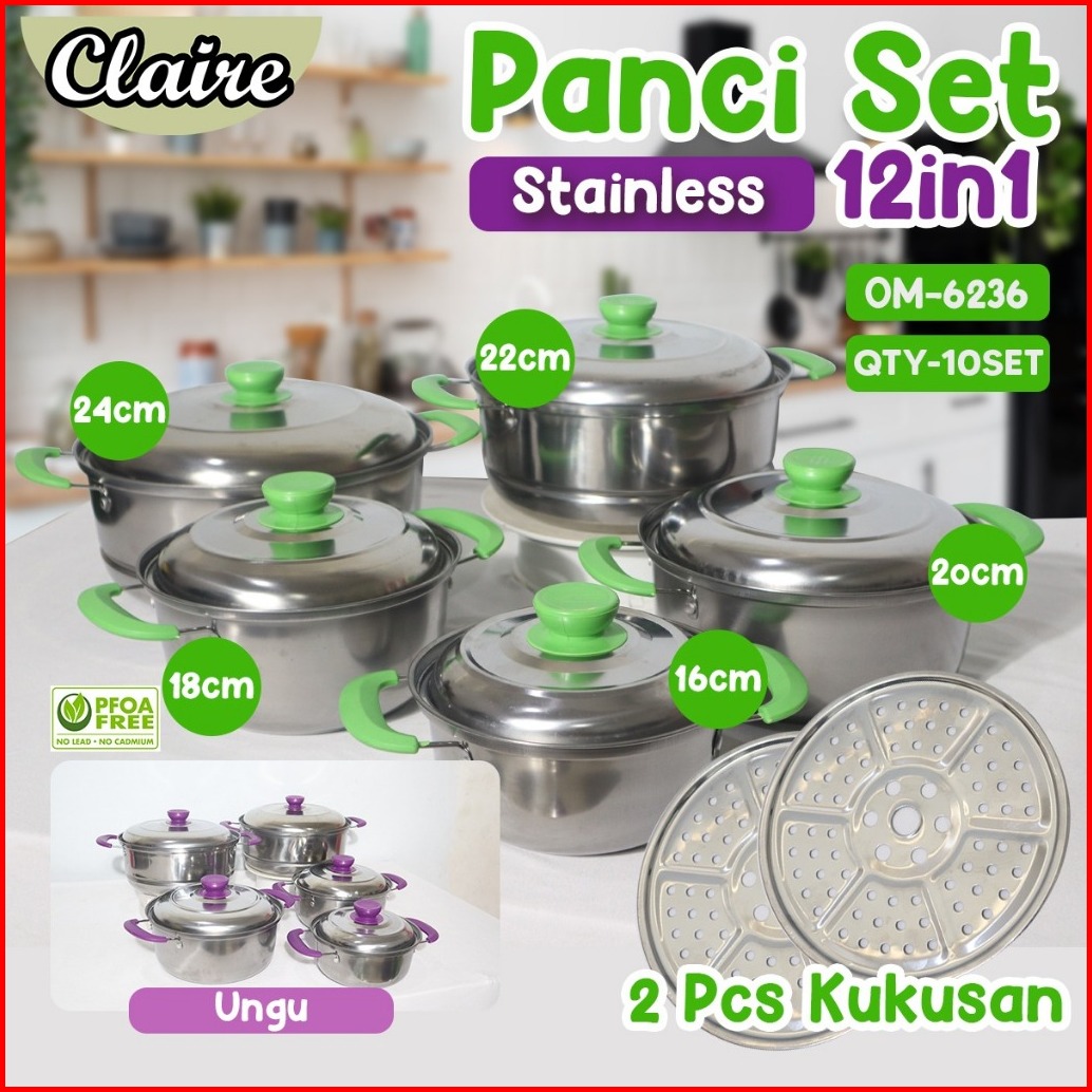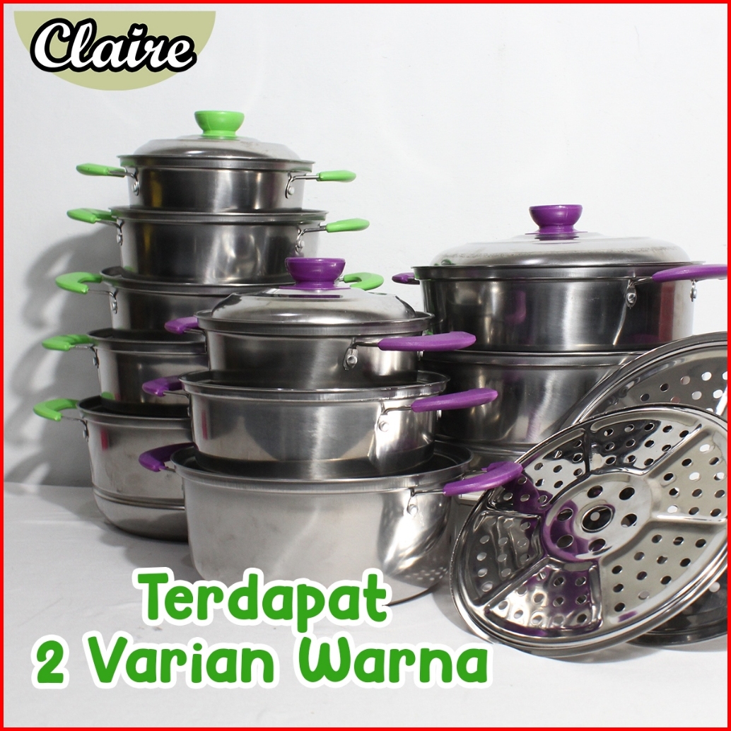 Panci Set Warna 12pcs Panci Stainless Steel Free Kukusan Panci Set Stainless Steel 12pcs Soup Pan