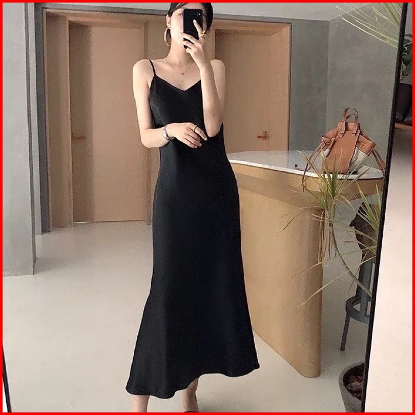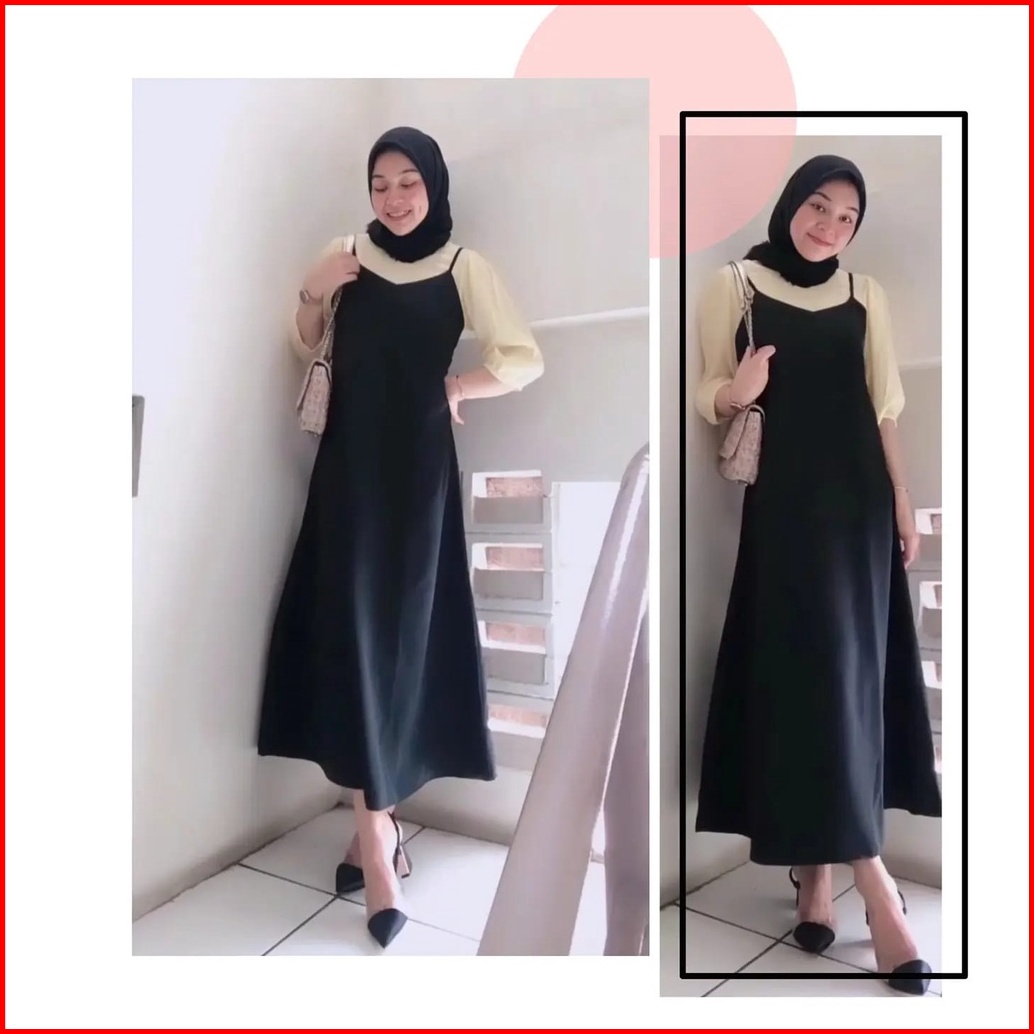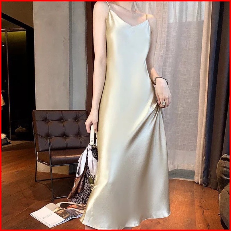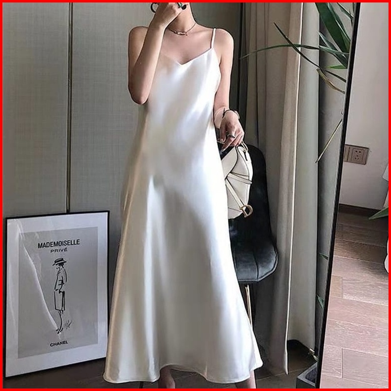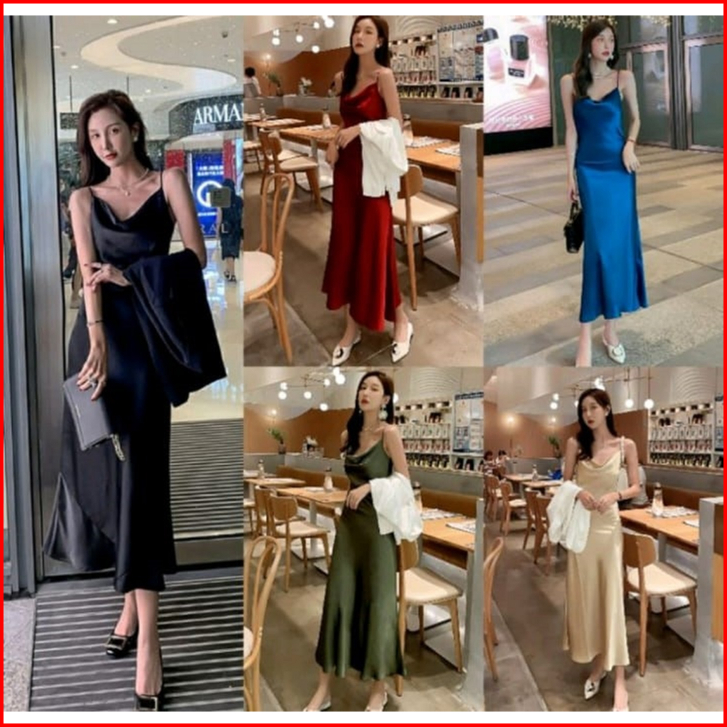 Arabel Long Dress Satin Wanita Bahan Saten Tali Kecil Gaya Korea - Gwynne88