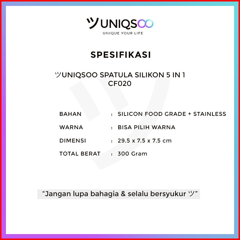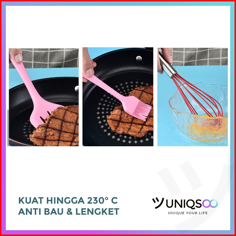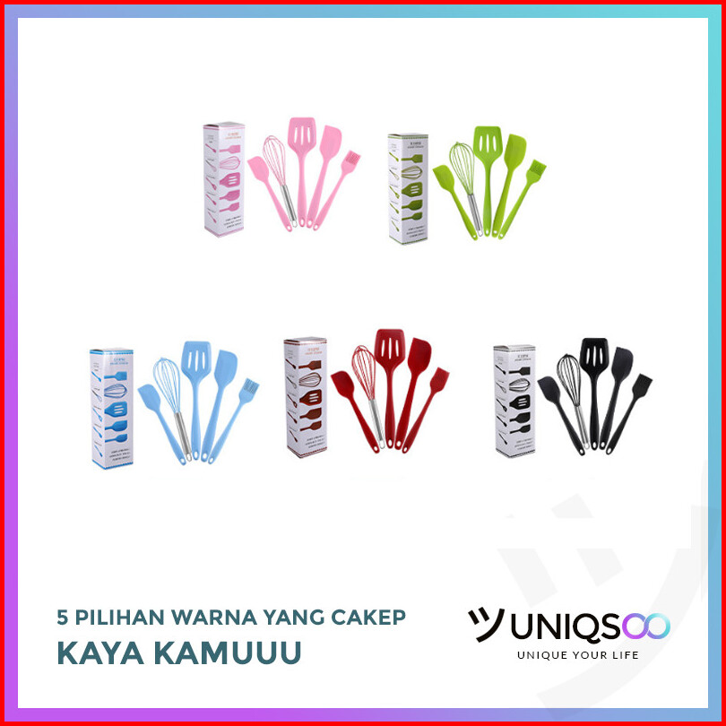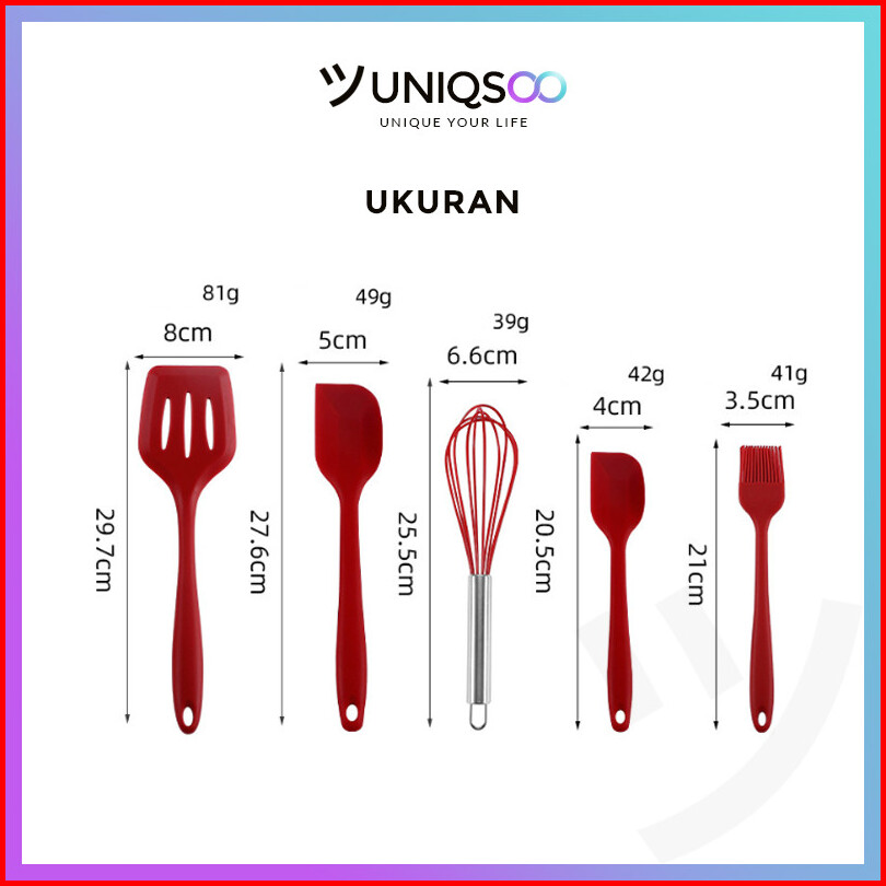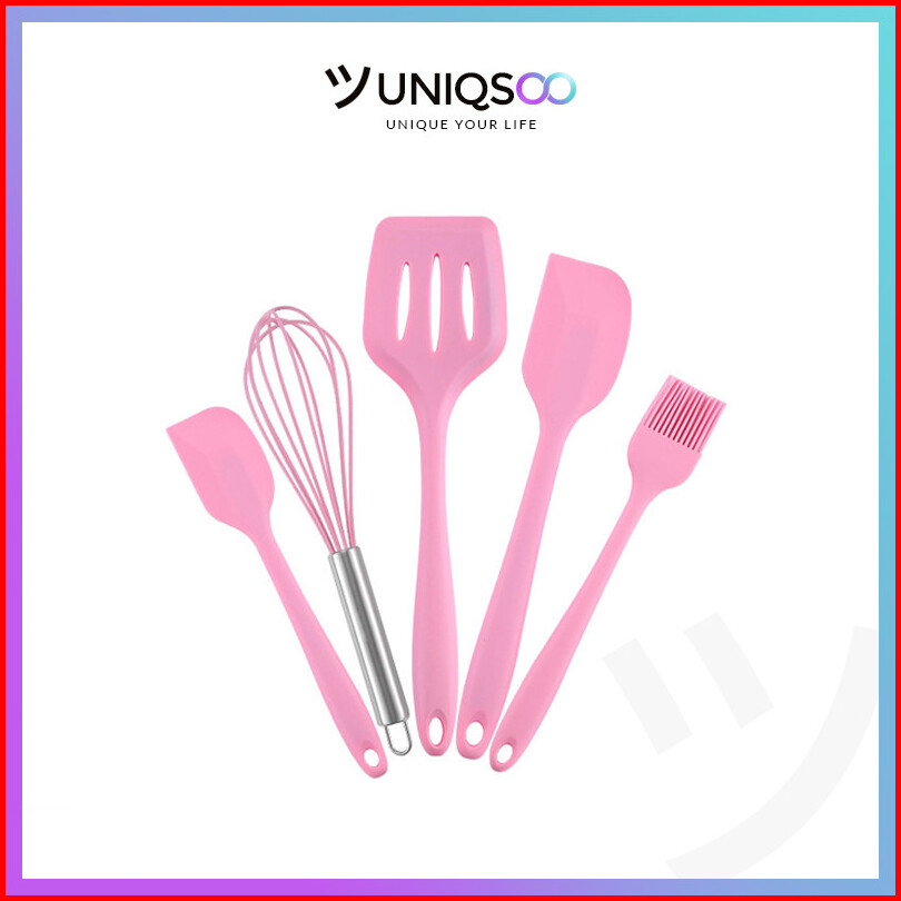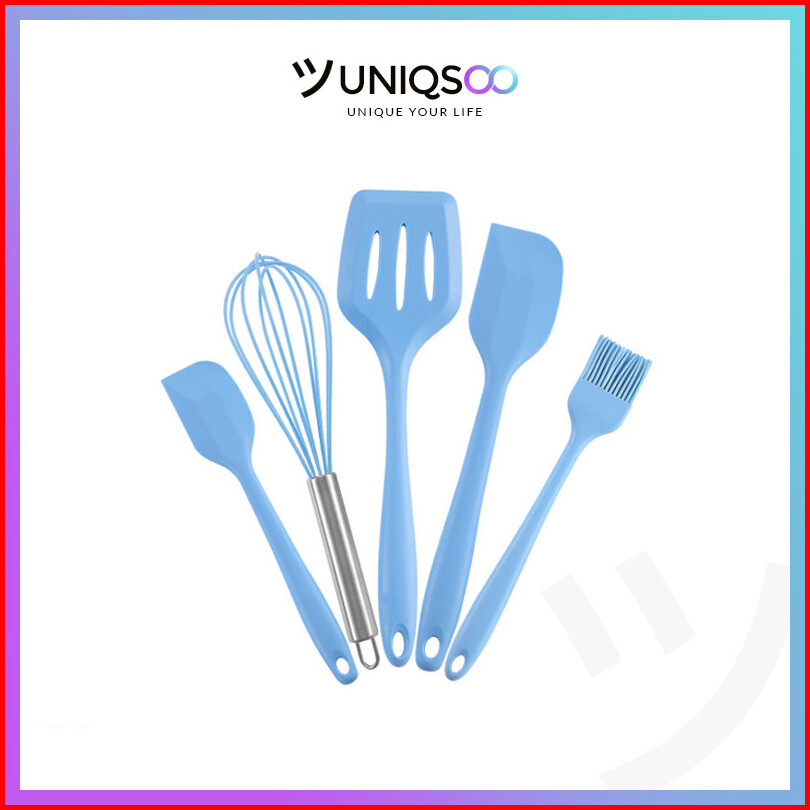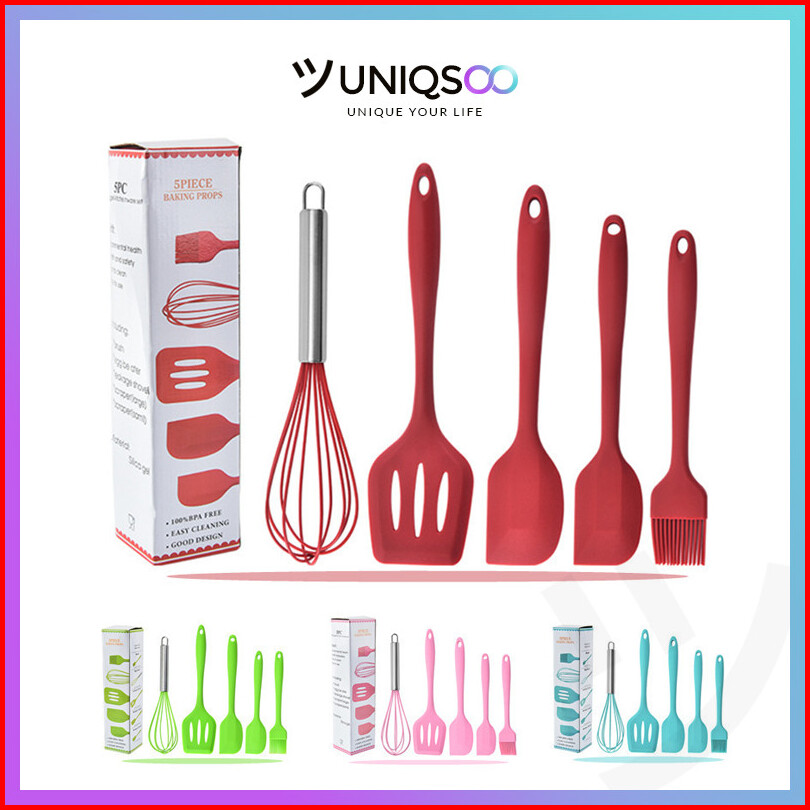 Uniqsoo Spatula Silikon 5 In 1 Set Alat Masak Sutil Scrap Kocokan Silicone Anti Lengket Tahan Panas Serbaguna Cf020