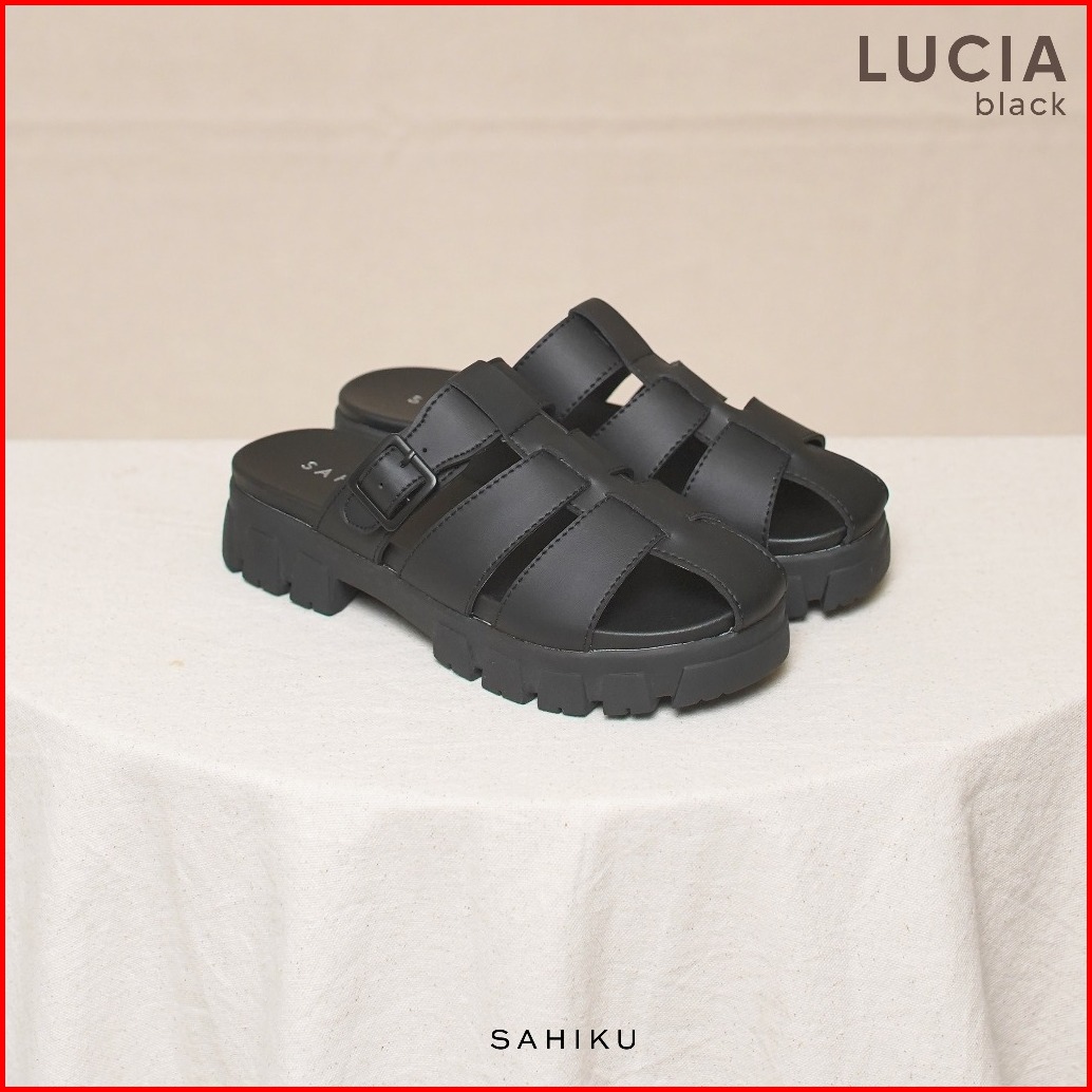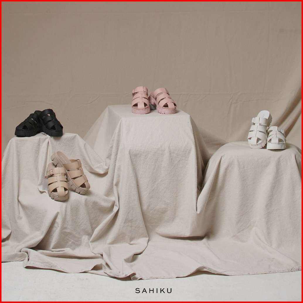 Sahiku - Lucia Sandal Wedges 3cm Wanita Platform Chunky Sporty Casual Ringan Slip On Selop Anti Slip