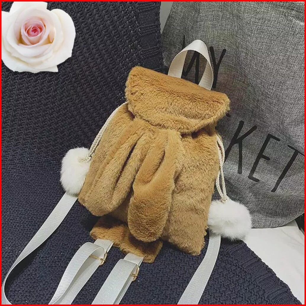 Tas Backpack Bulu Boneka Lucu Model Kelinci Serut
