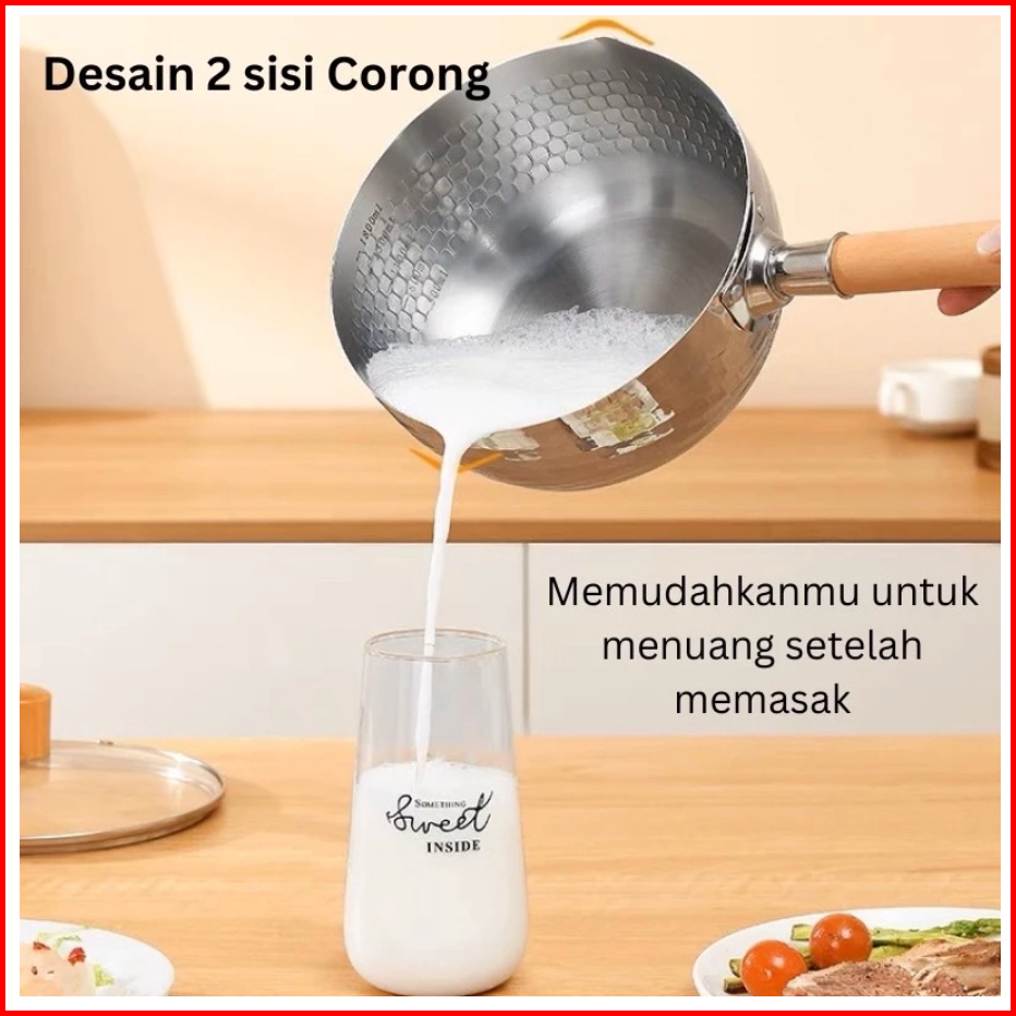 Gb - Panci Susu Ukuran 22 20 18 Cm Panci Mie Stainless Steel Gagang Kayu Jamin Tebal - Warna Panci Rebus Panci Susu Rebu