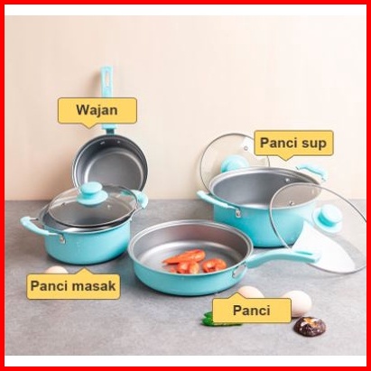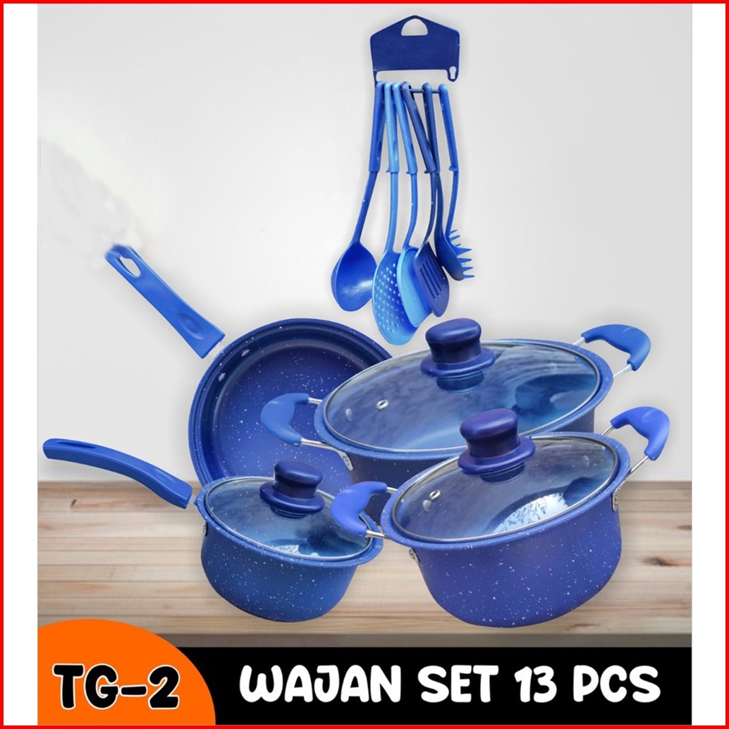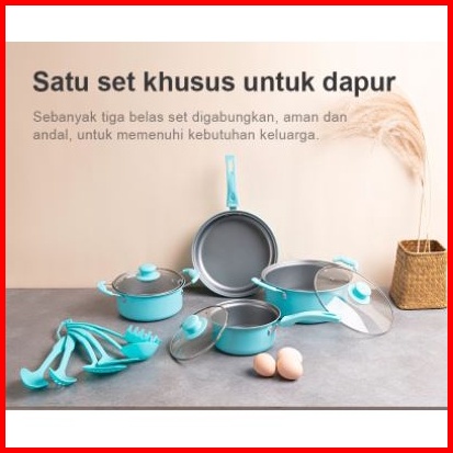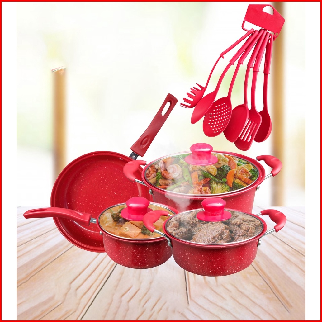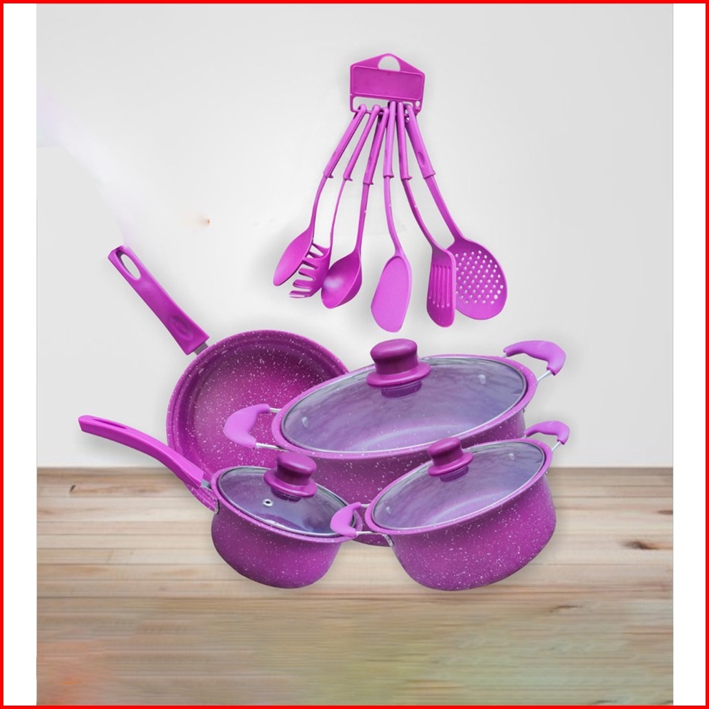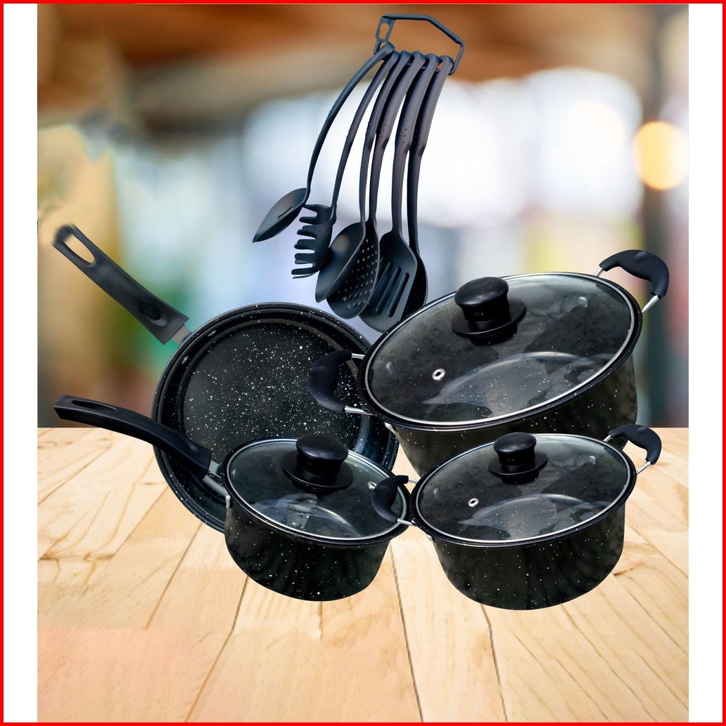 Panci Set Teflon Marble 13 Pcs Cookware Set Tutup Kaca Free Spatula 6 Pcs Lp