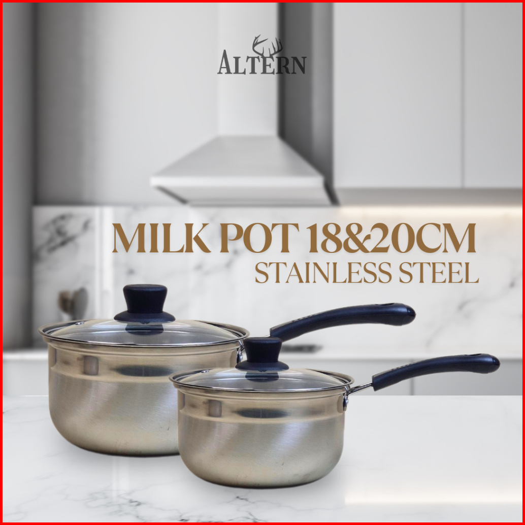 Calypso Panci Susu Rebus Masak Mie Stainless Steel 18cm - 20cm Tutup Kaca