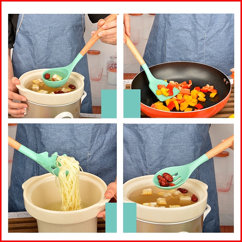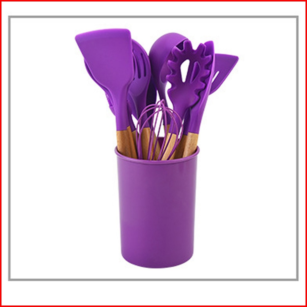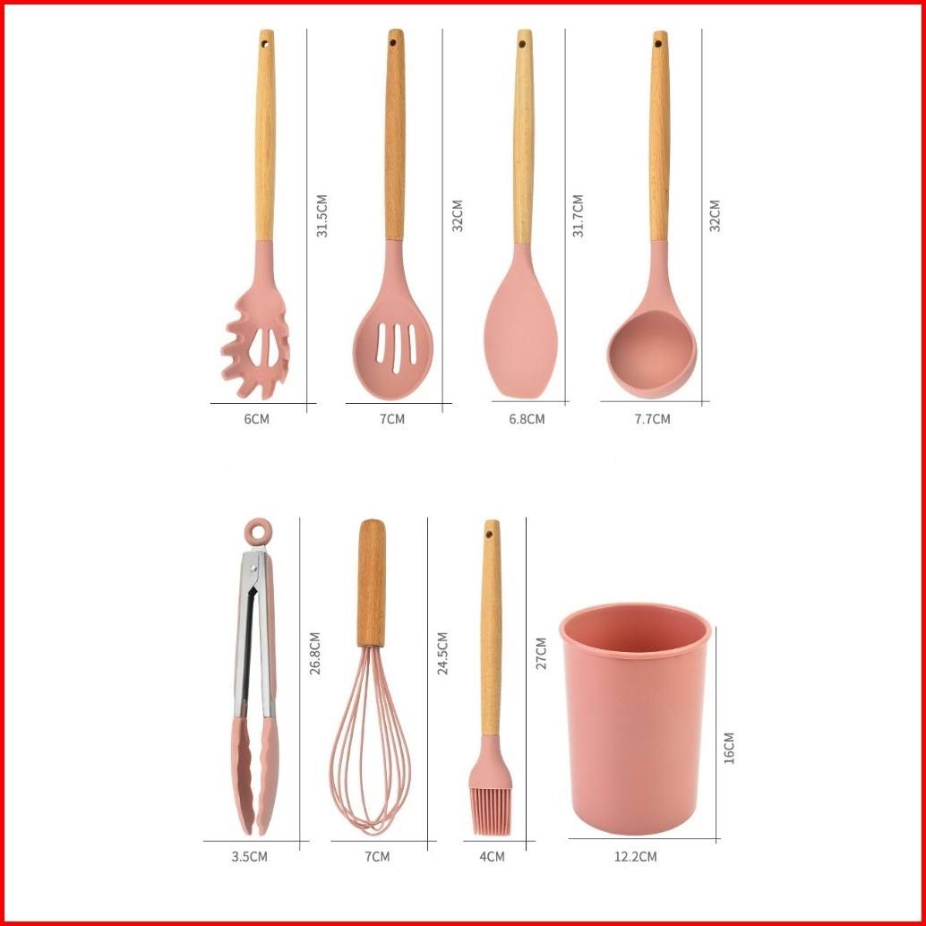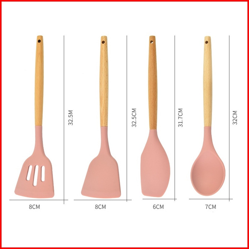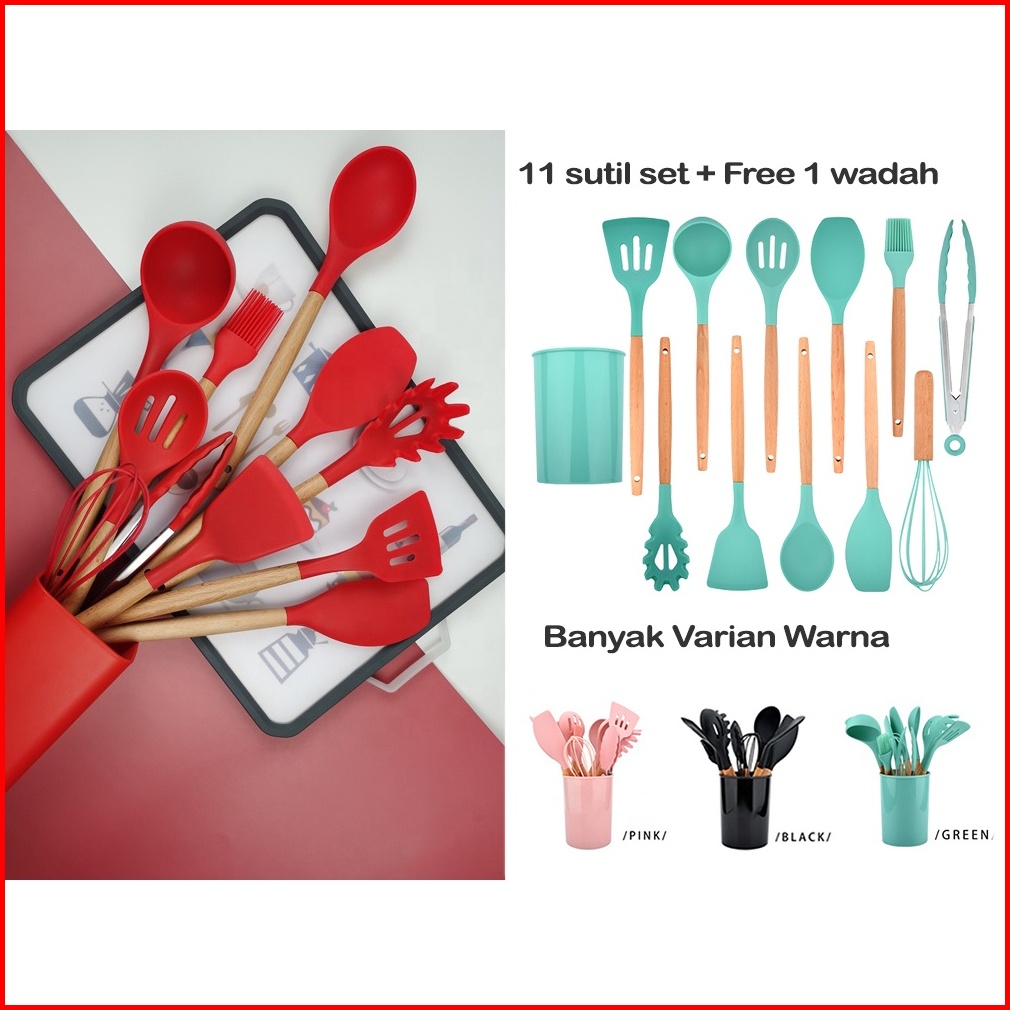 Serbaserbi Silicone Utensil 11pcs Wadah Spatula Peralatan Masak Sutil Pegangan Kayu Baking Set Alat Masak